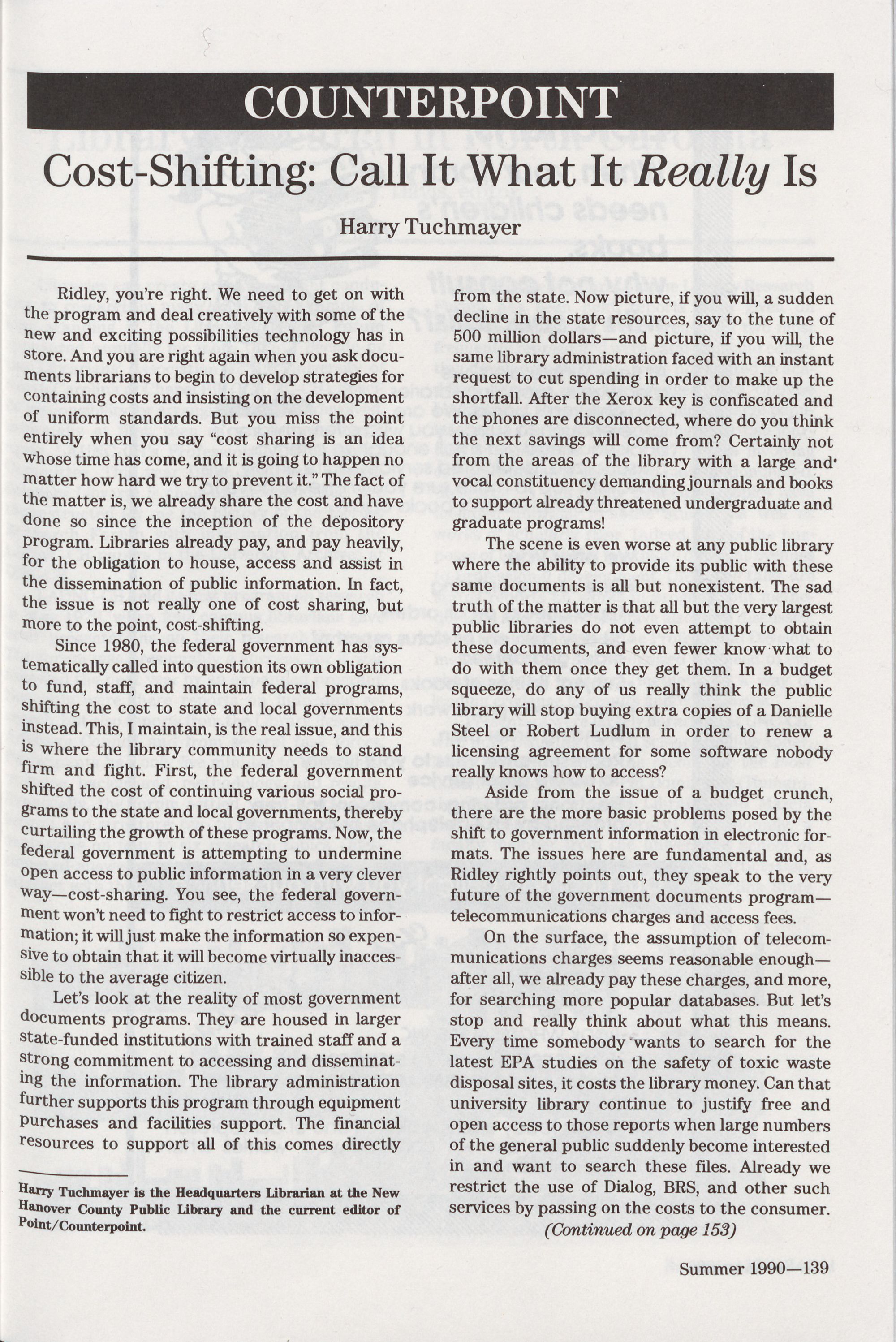139 COUNTERPOINT: Cost-Shifting: Call It What It Really Is,