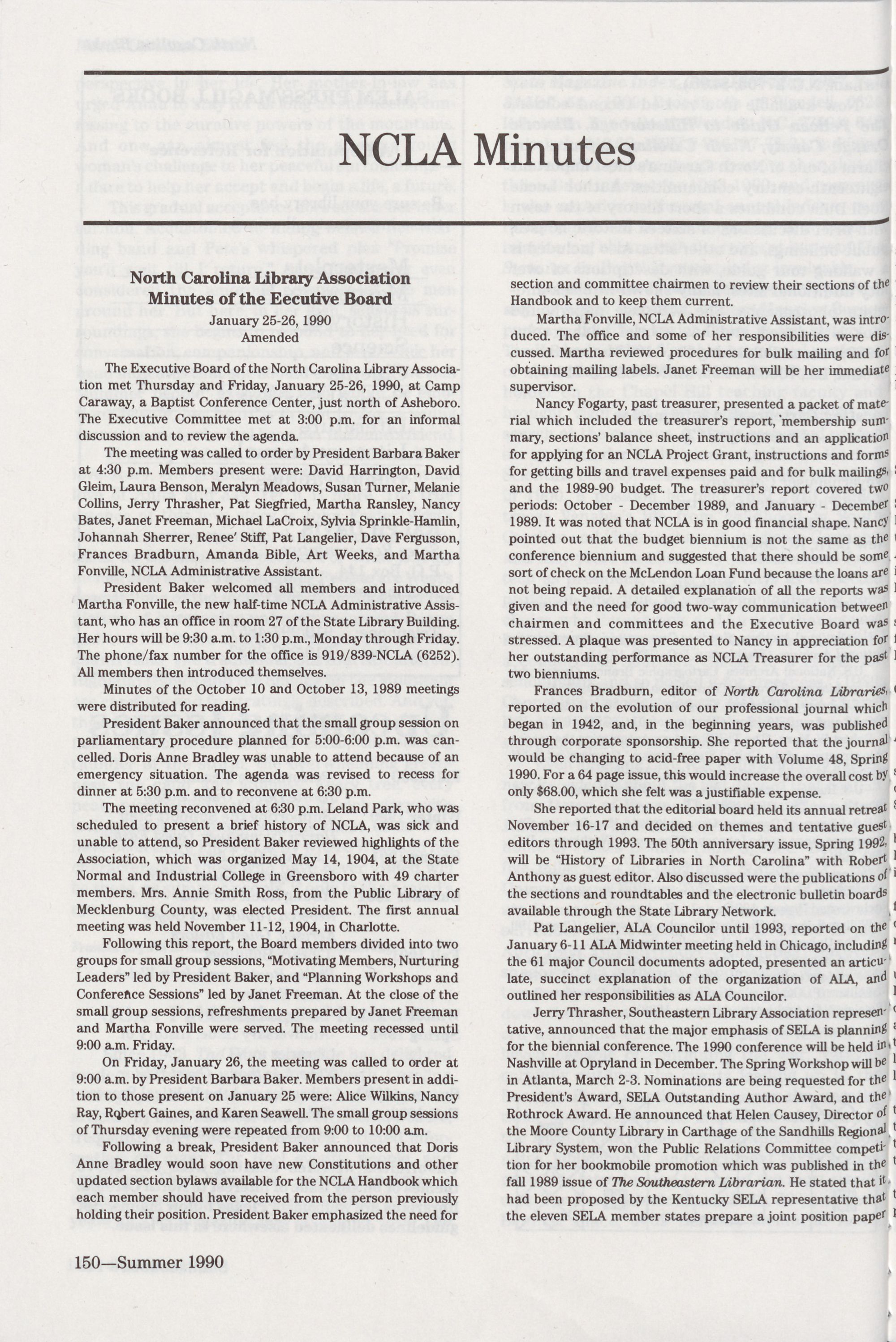 Library Association. Membership dues include a subscription to North Carolina Libraries. Membership