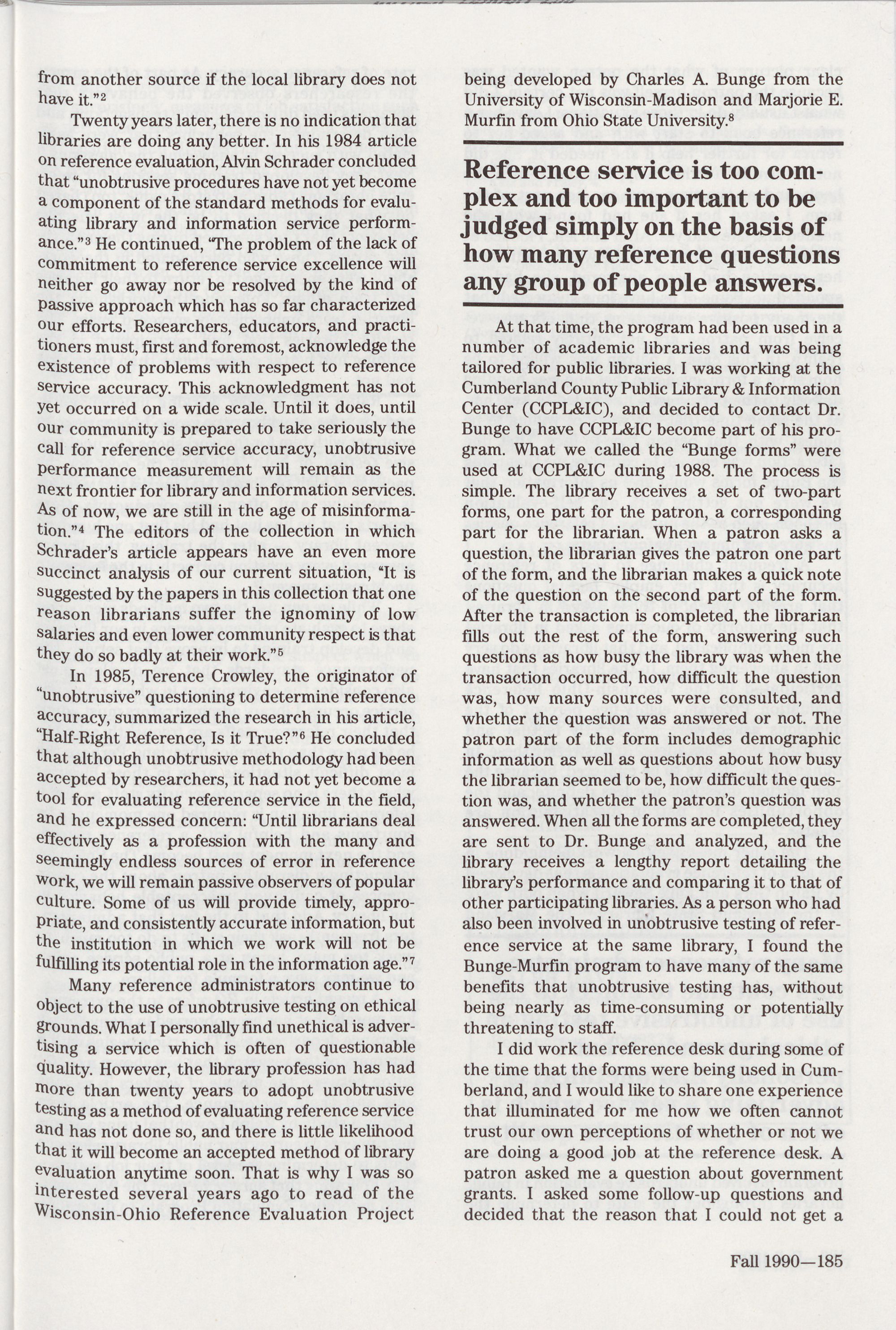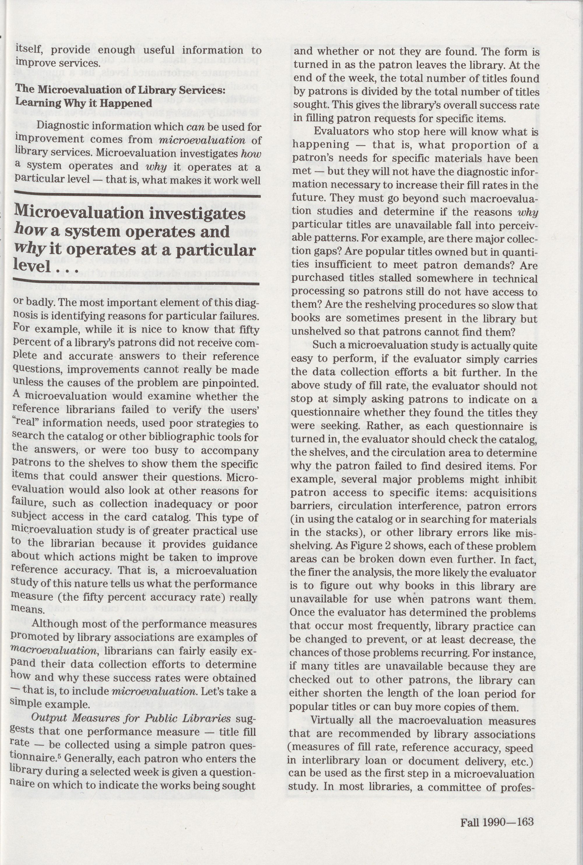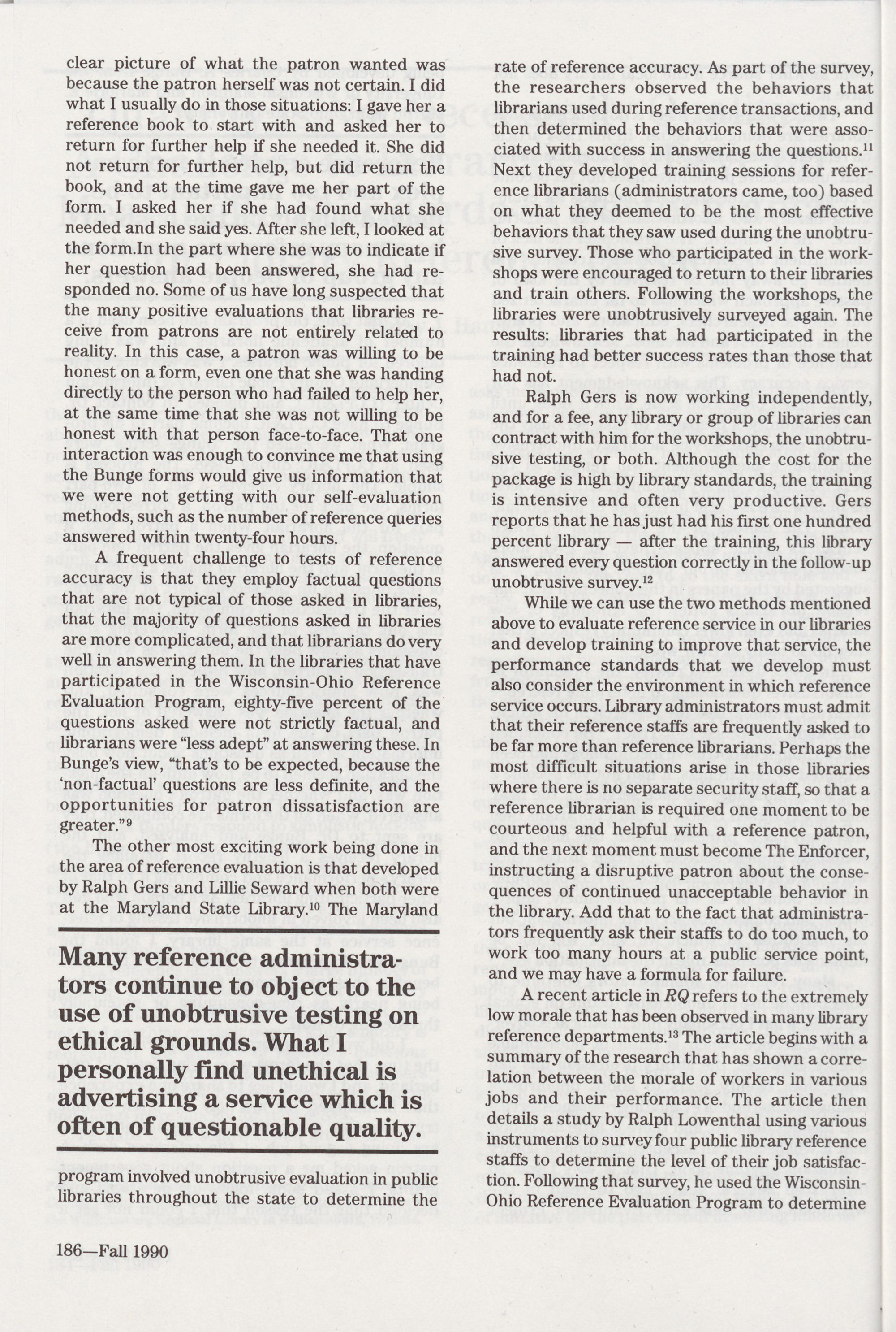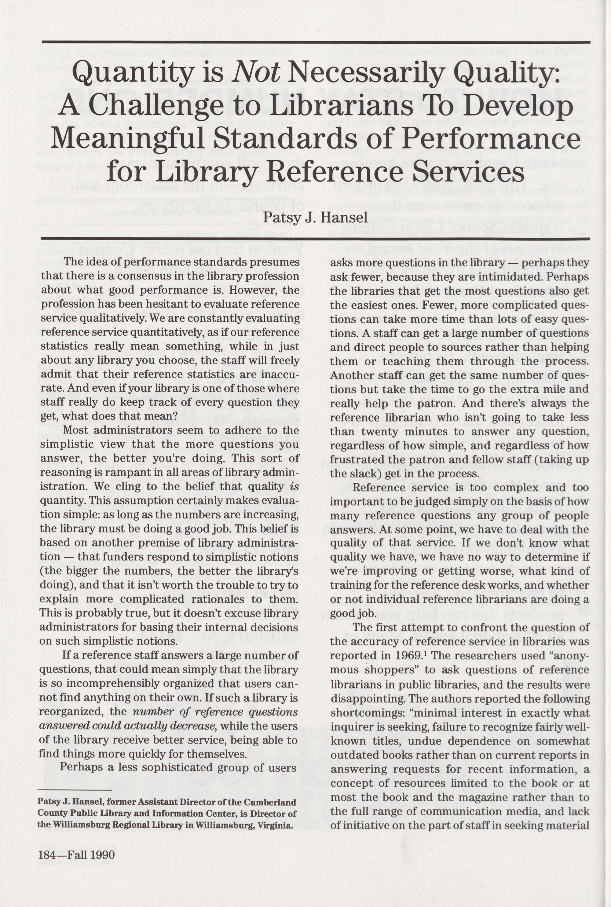 Performance for Library Reference Services,