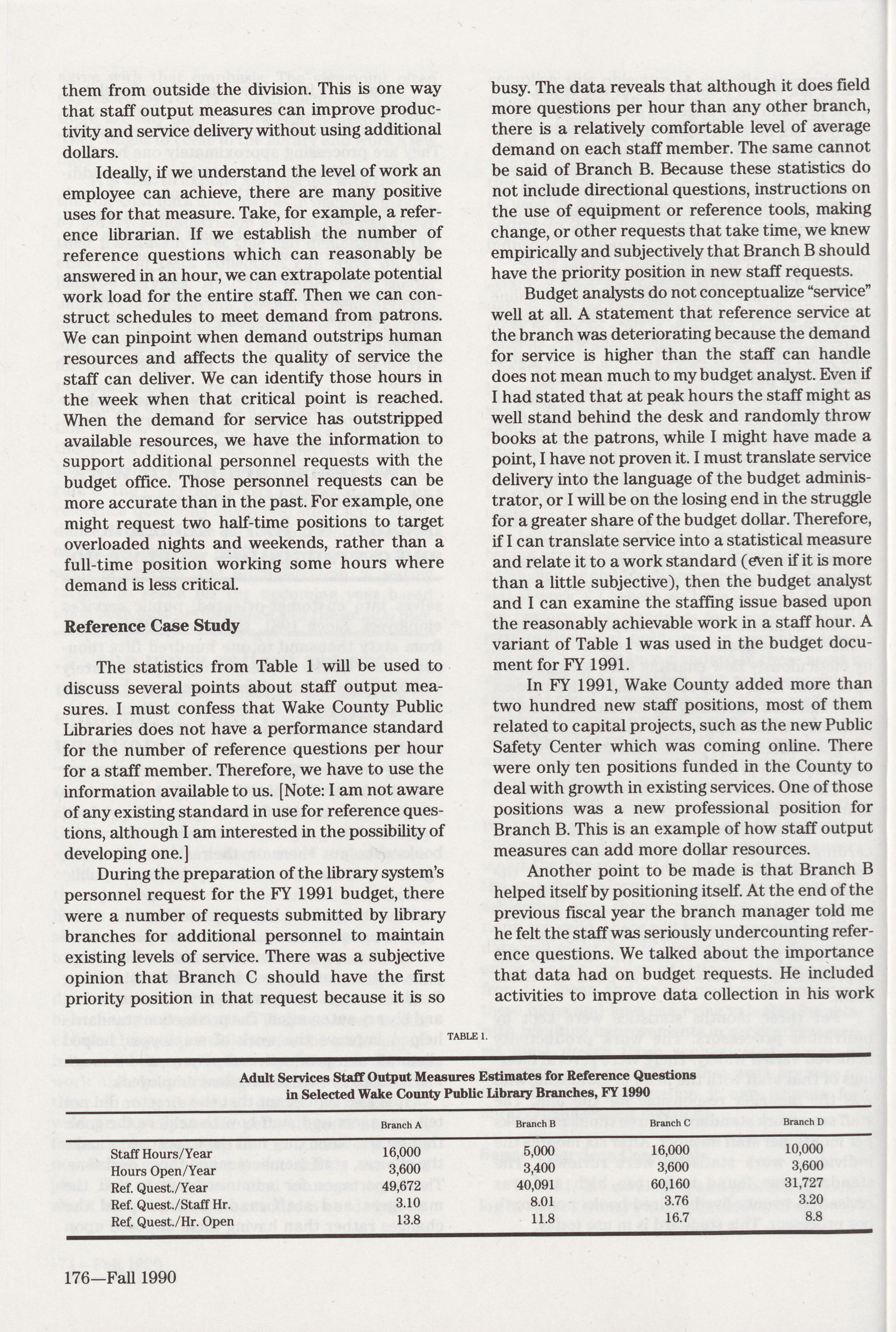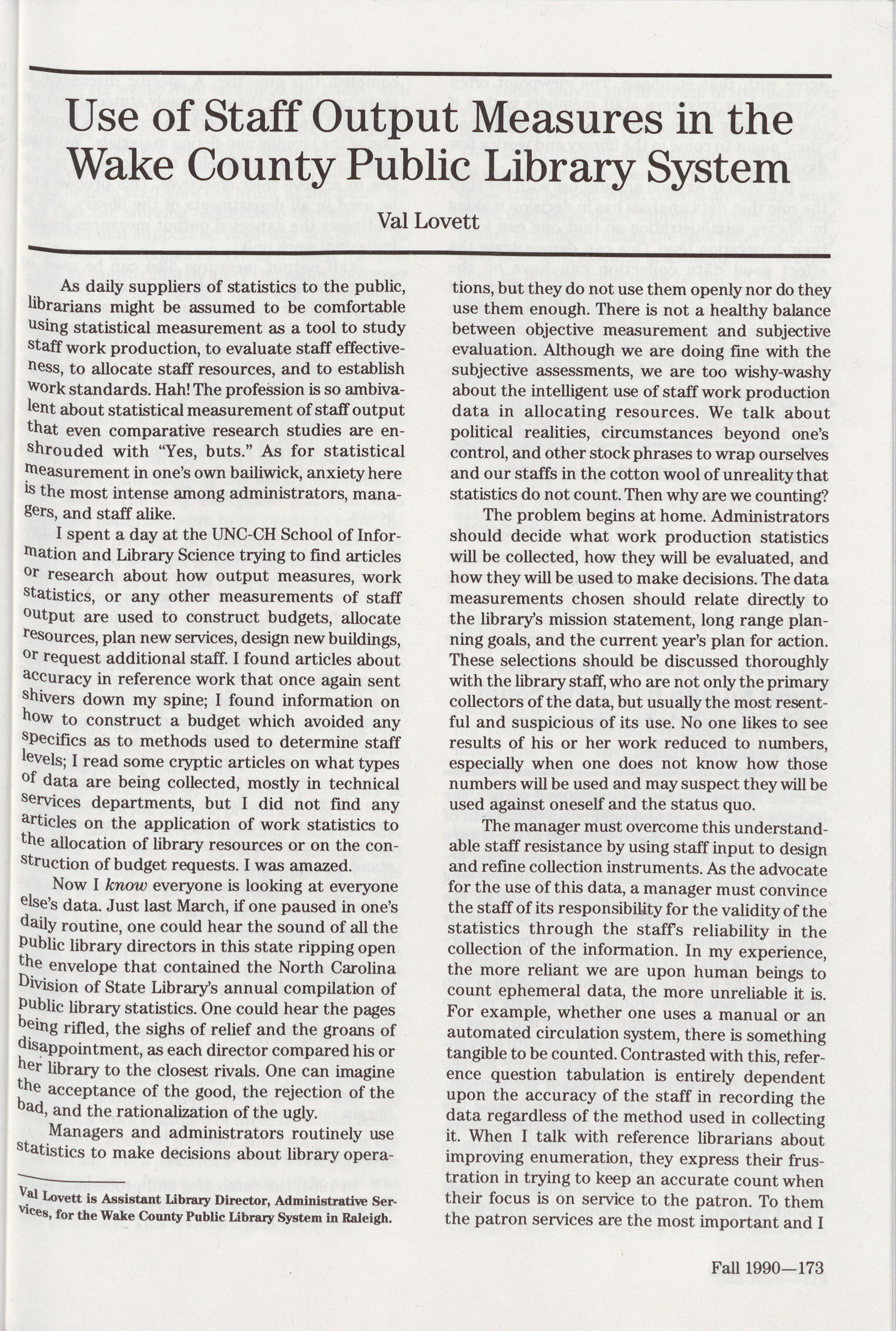 173 Use of Staff Output Measures in the Wake County