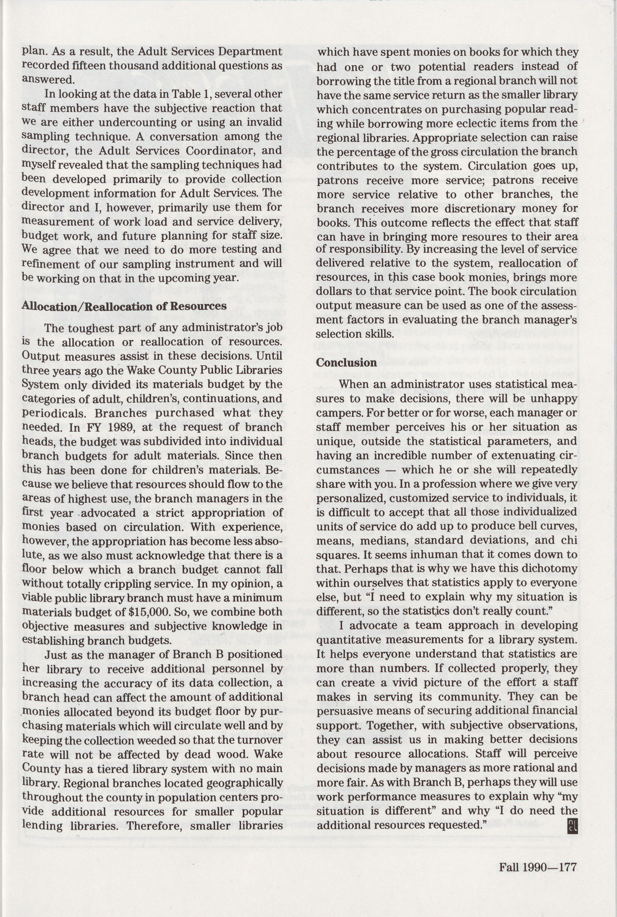 Cover: Valerie Lovett, oUse of Staff Output Measures in the Wake Checkpoint, 212; Ebsco, 161; Encyclopedia Britanica, 183;