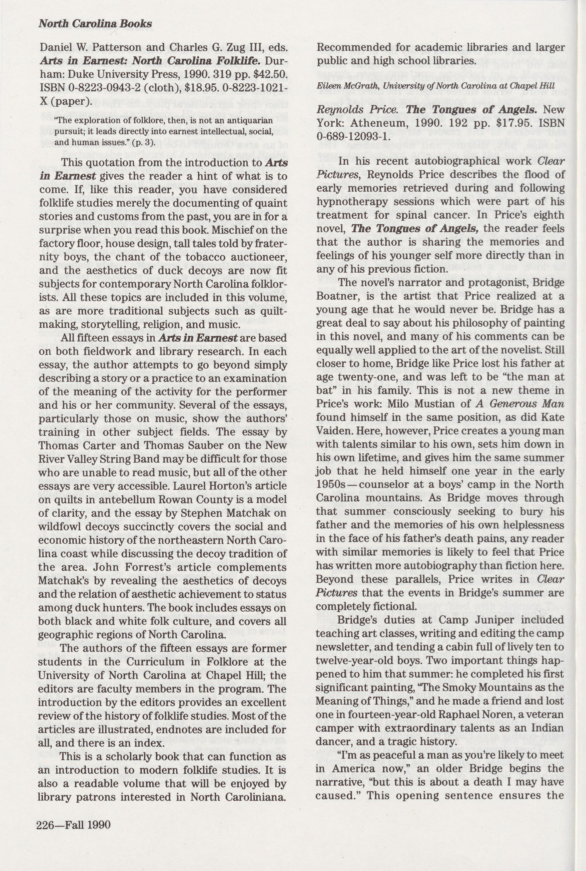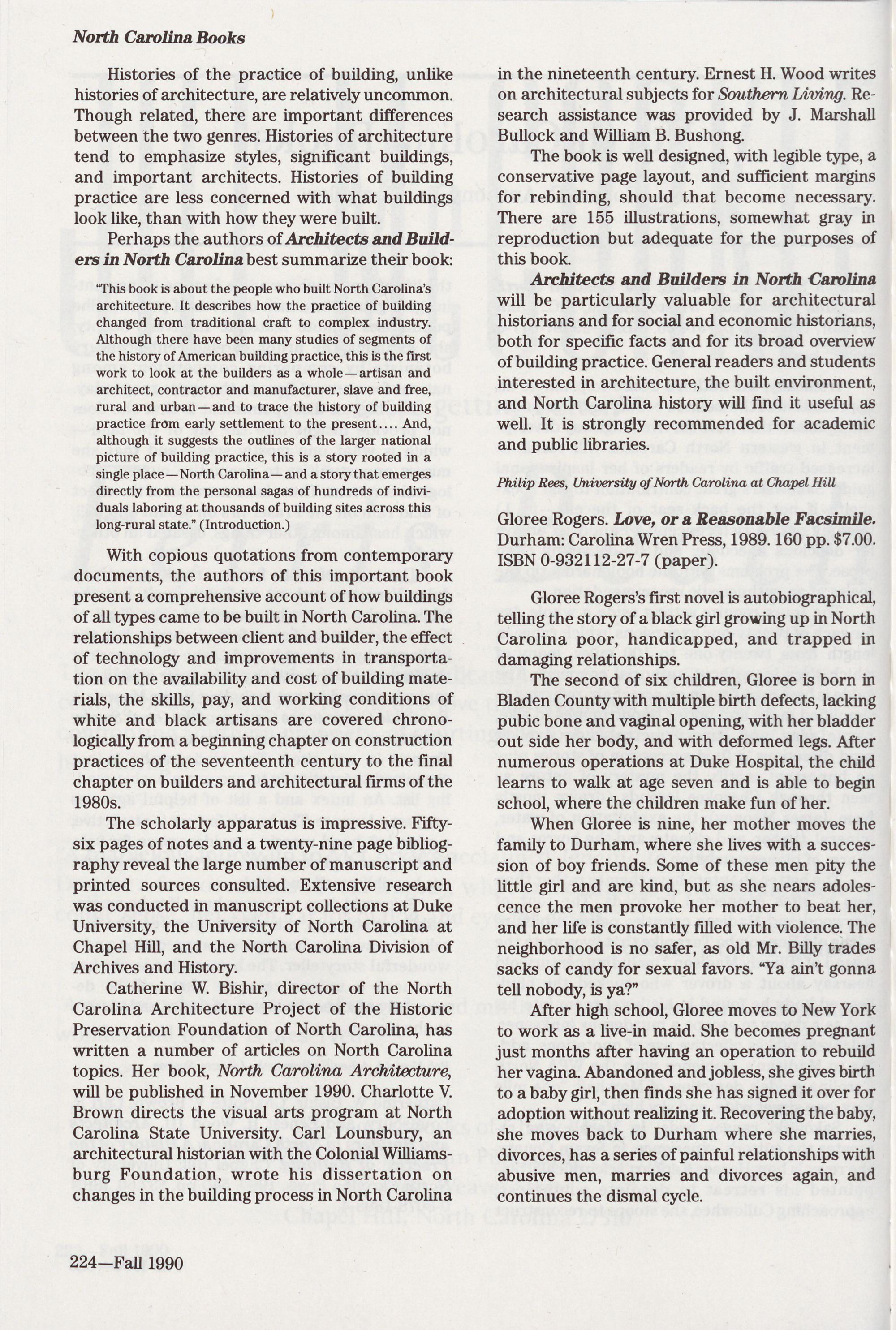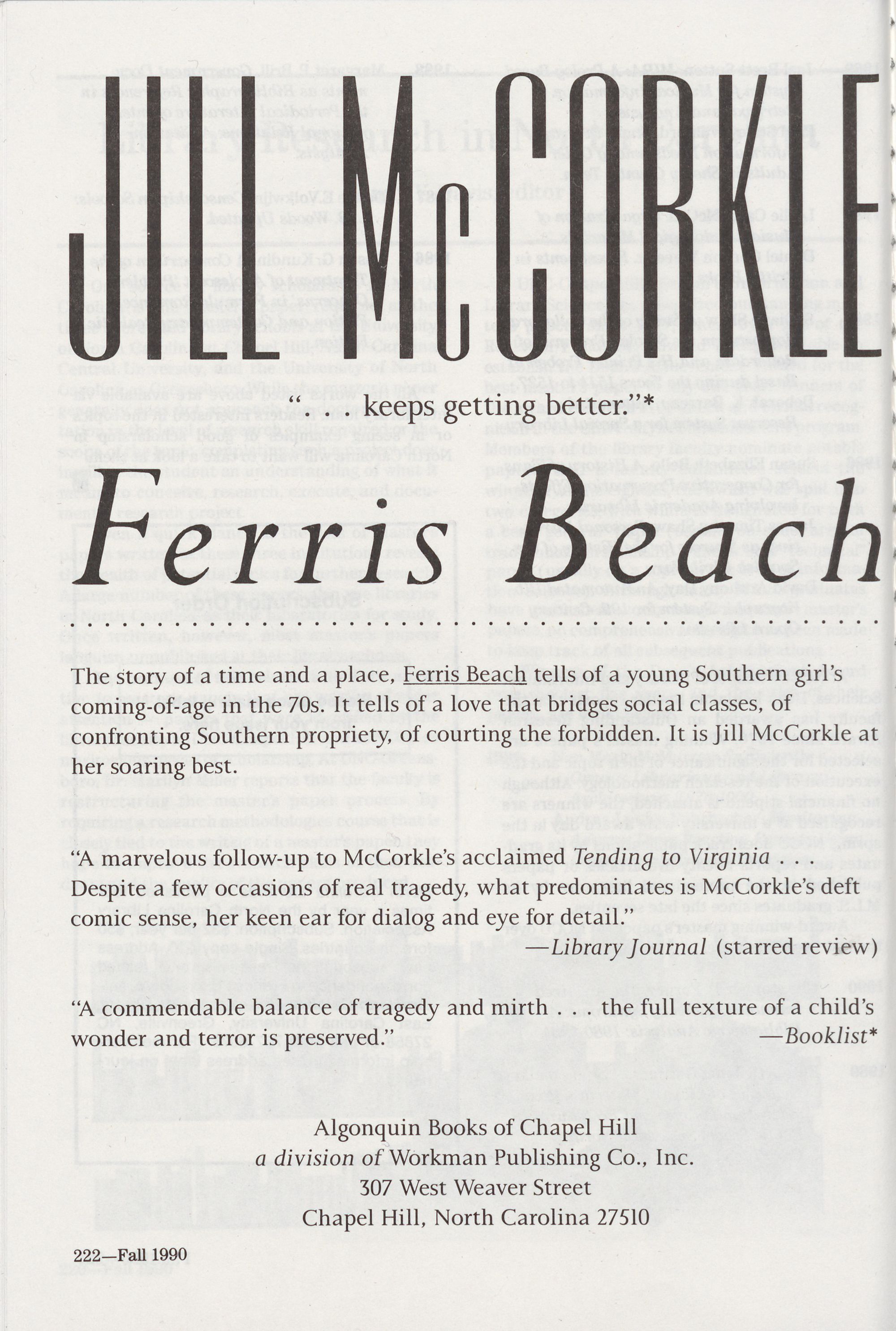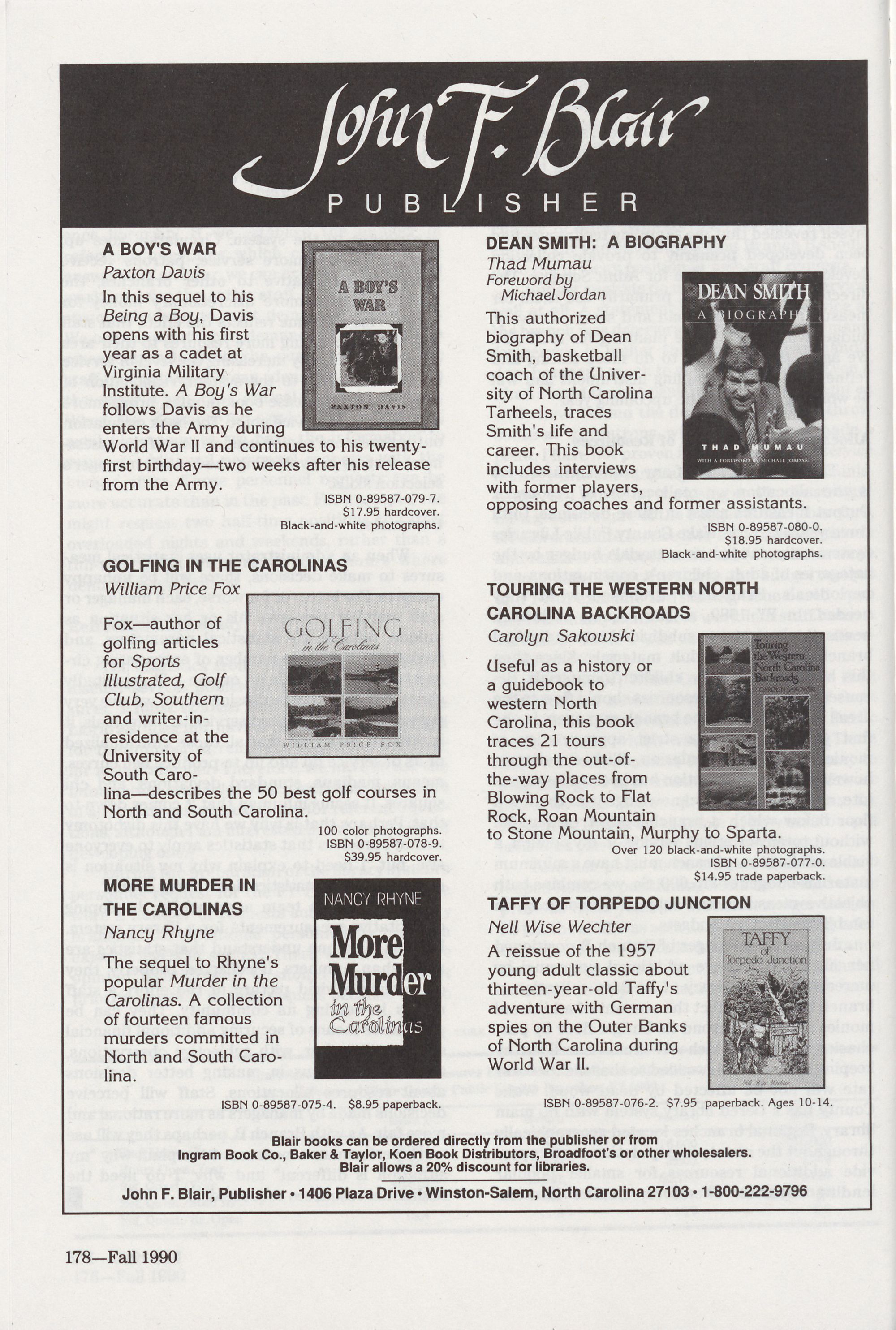 Advertisers: Algonquin Books, 222; Blair Publishing, 178; Book eastern Book Company, 208; Southeastern Microfilm, 165; UNC