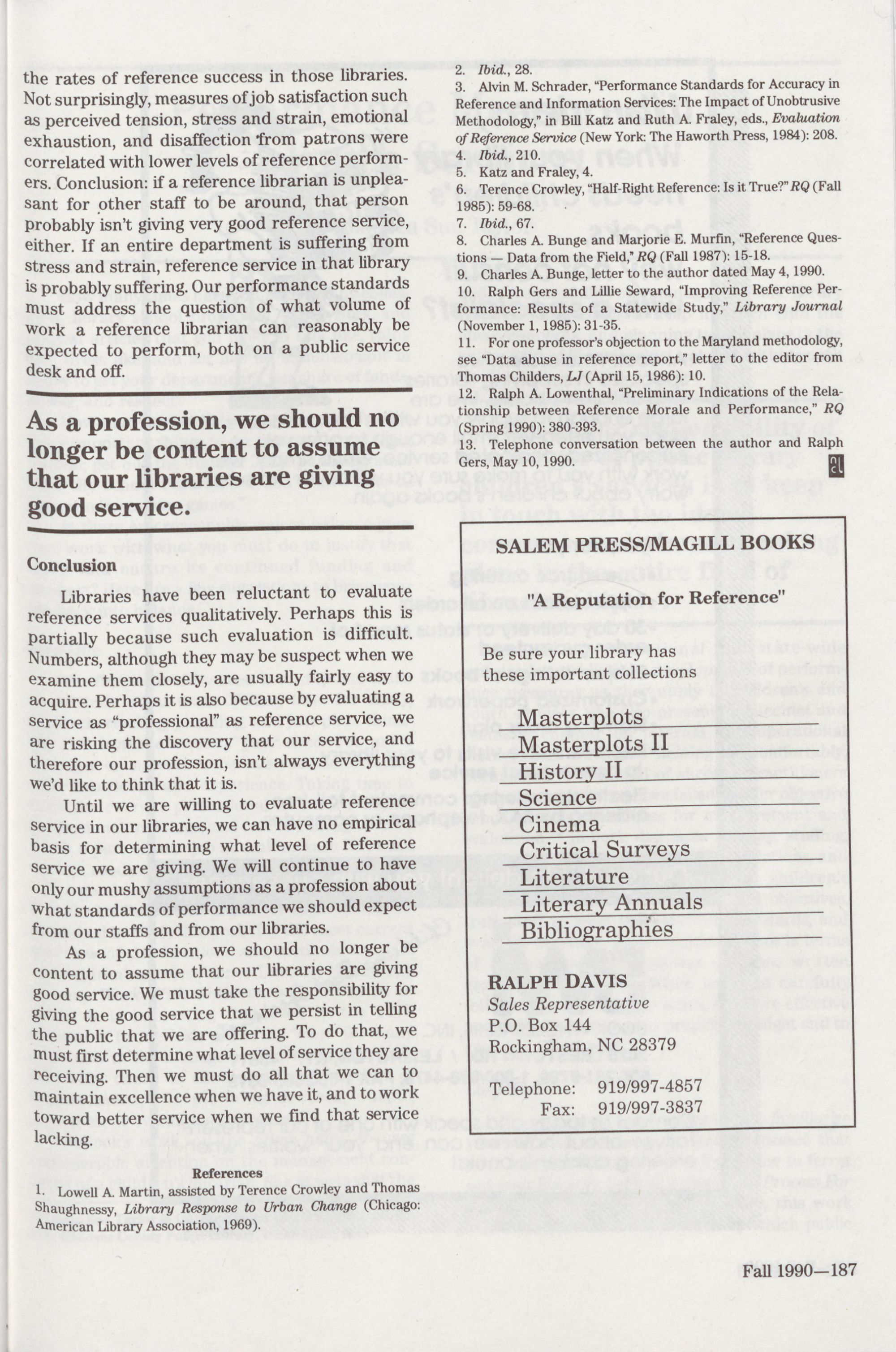 (Fall 1990): 173. Books, 192; Salem Press, 187; SIRS, inside front cover; South-