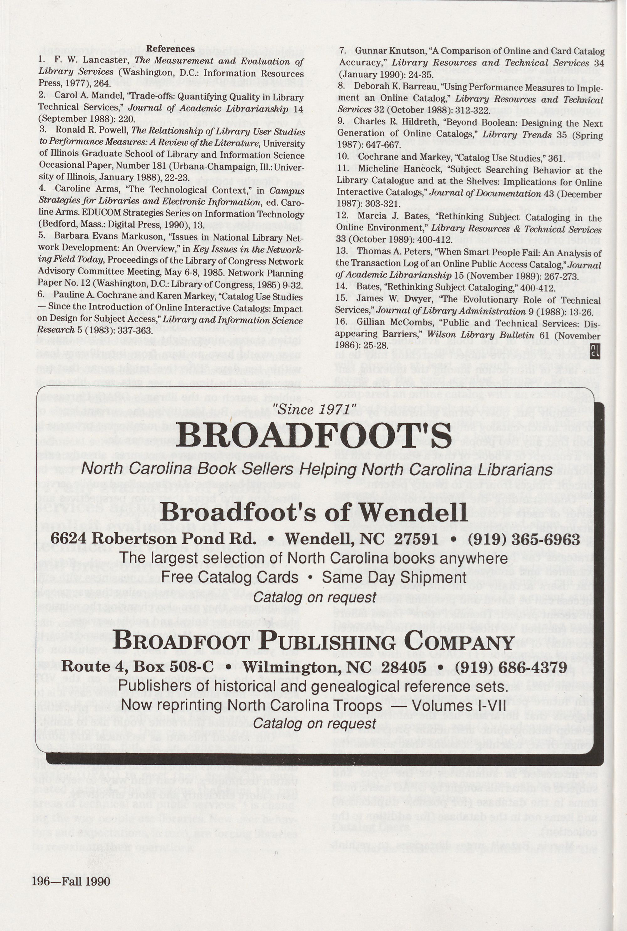 County Public Library System,� North Carolina Libraries 48 Faxon, 172; H. W. Wilson, 166; Mumford Books, 159; Quality