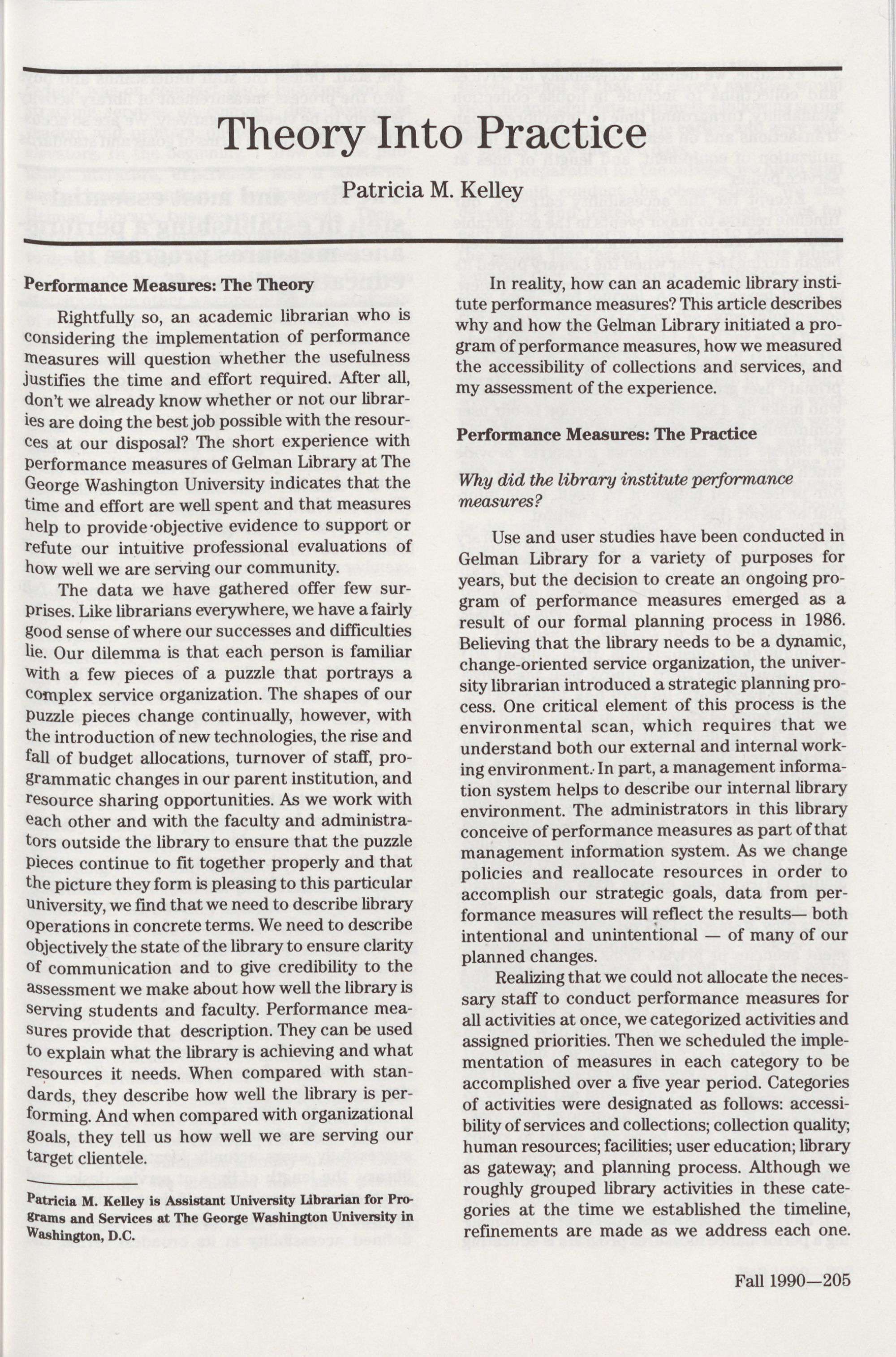 205 Theory into Practice, Patricia M. Kelley