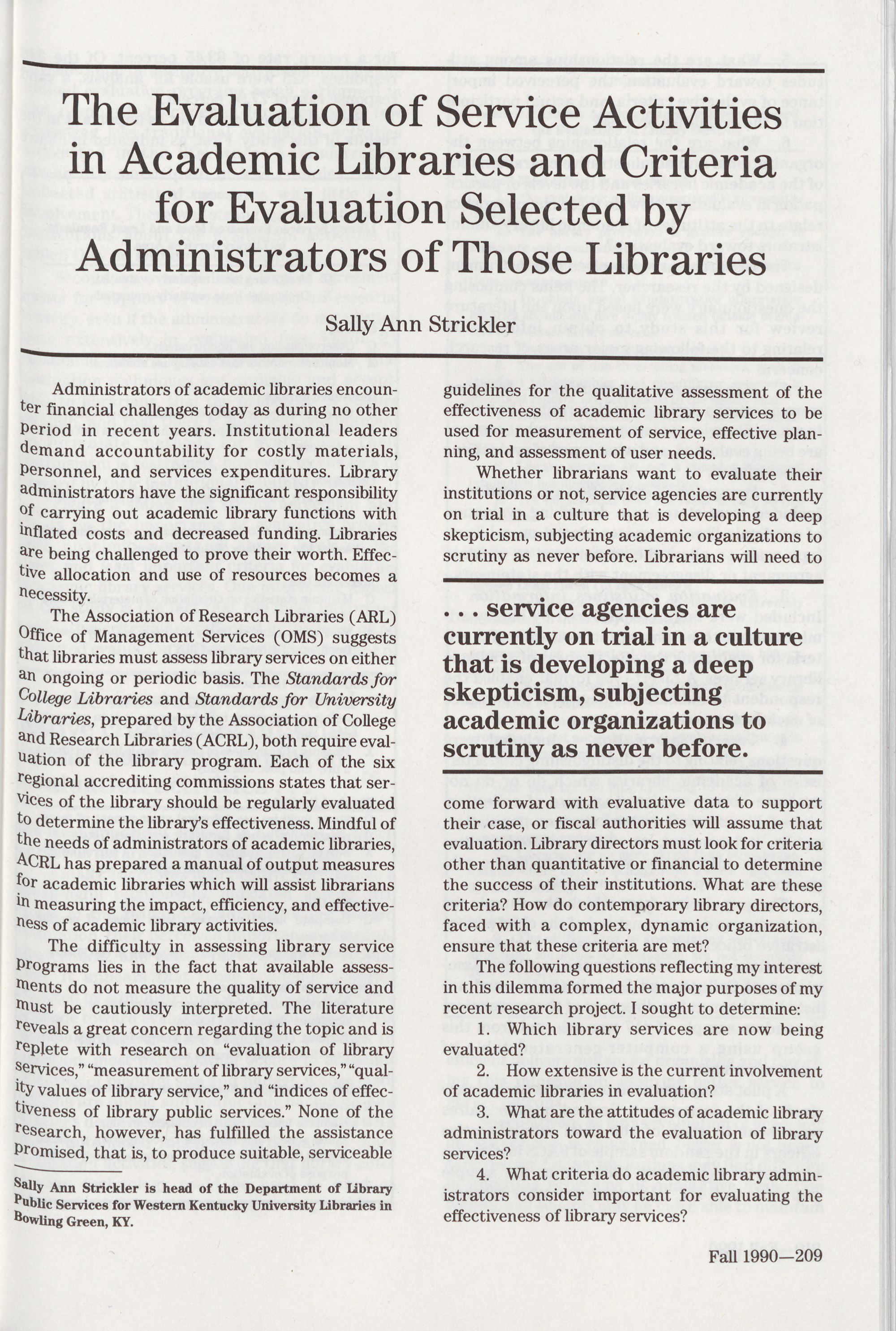 Administrators of Those Libraries, Sally Ann Stickler