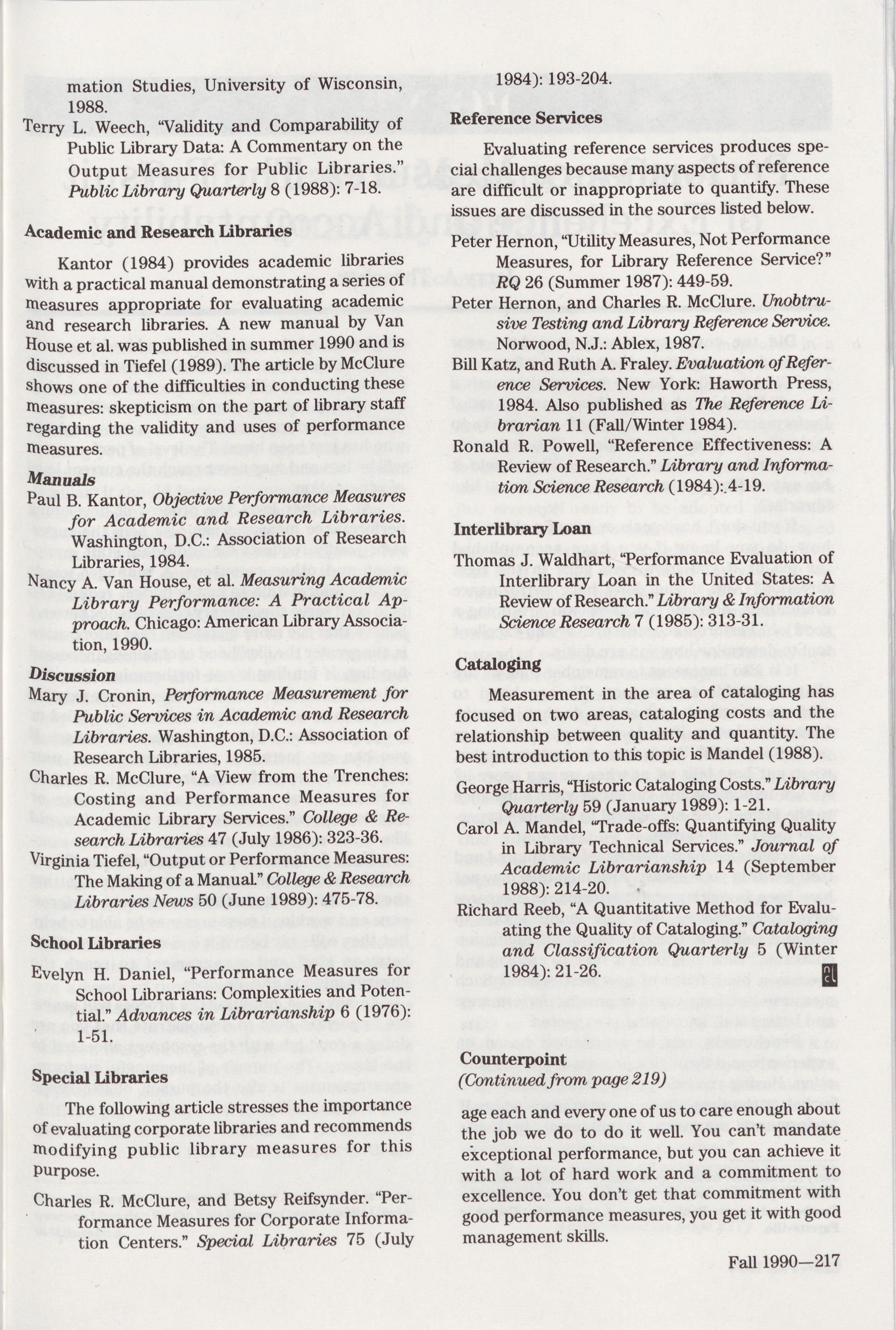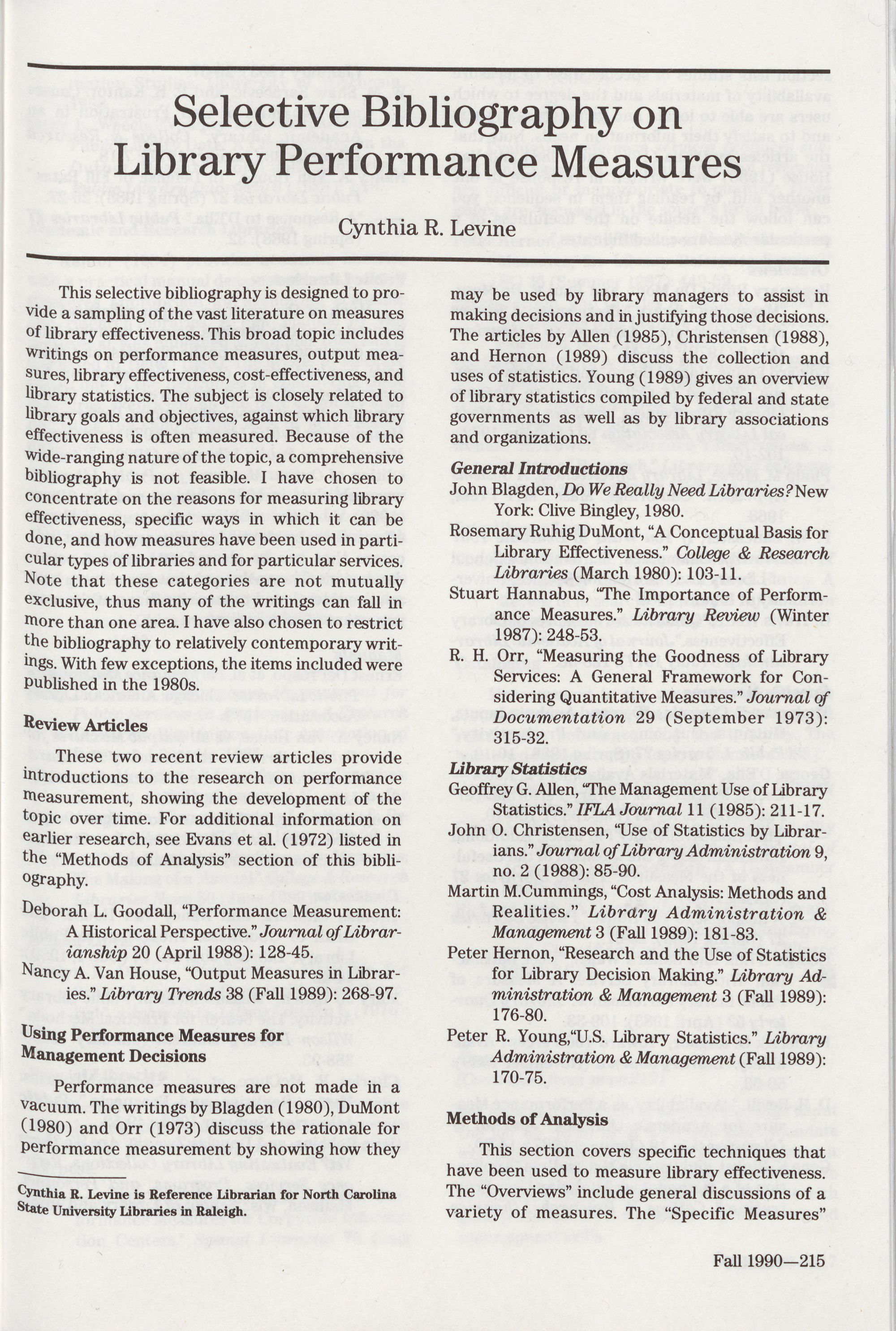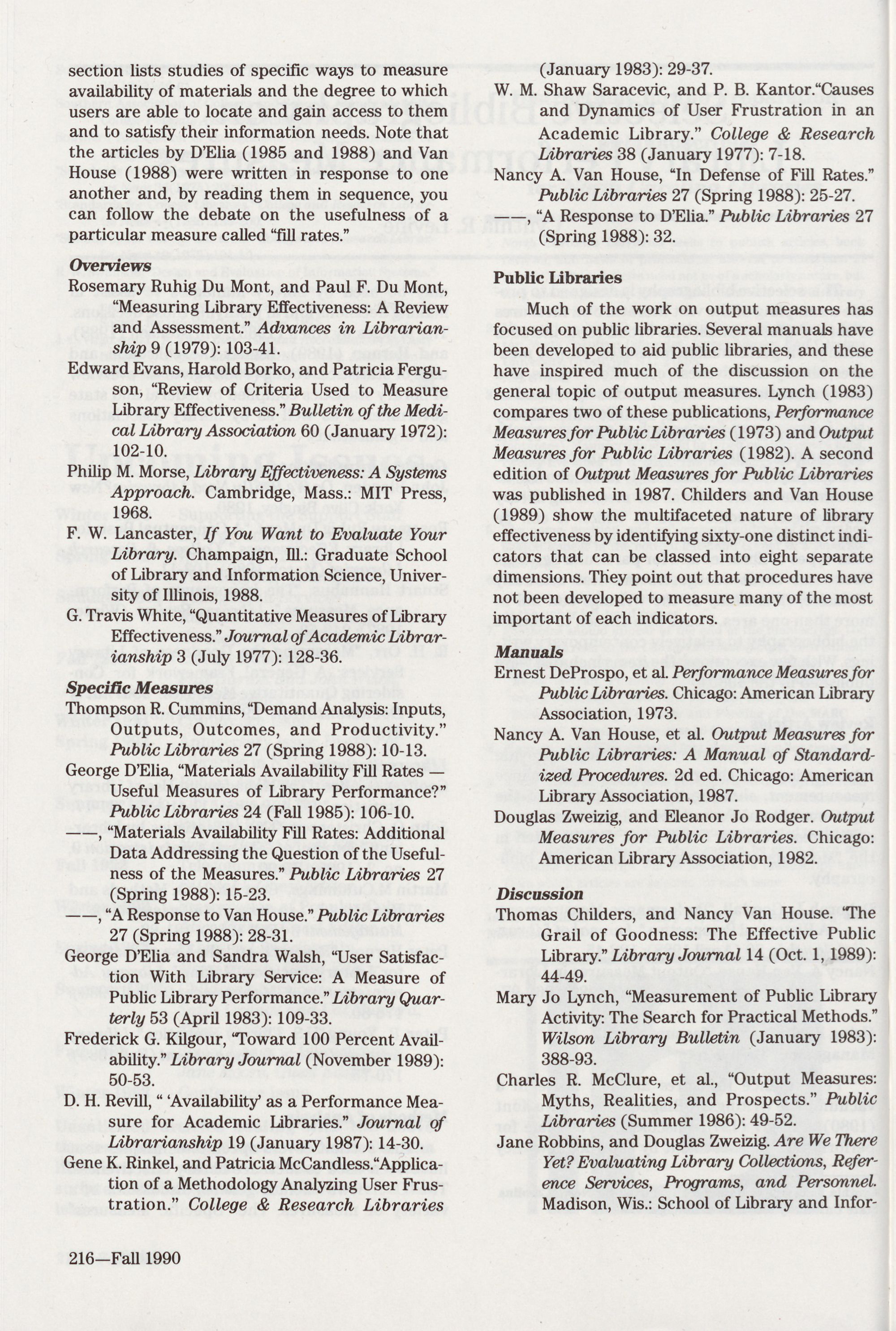 215 Selective Bibliography on Library Performance Measures,