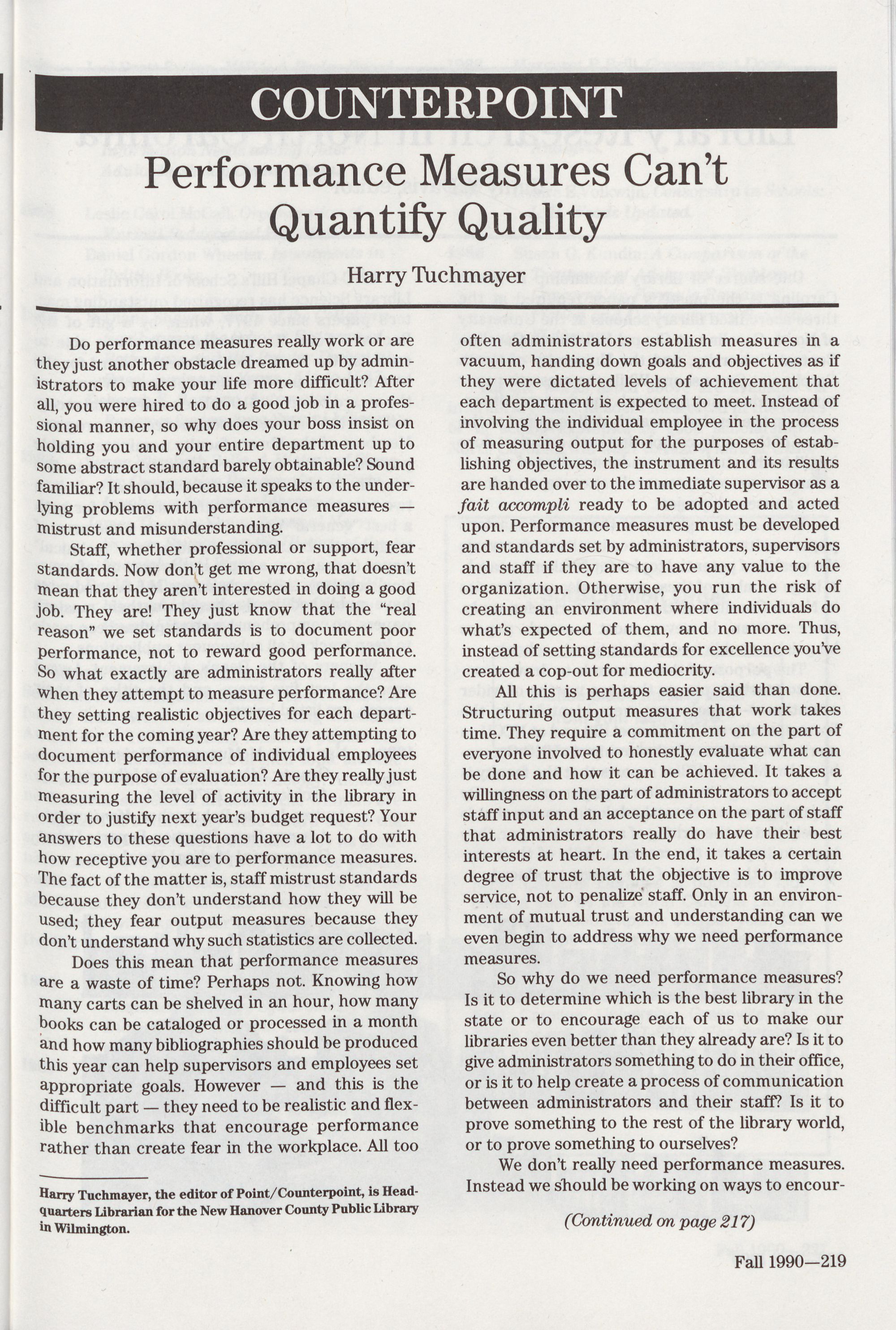 219 COUNTERPOINT: Performance Measures CanTt Quantify