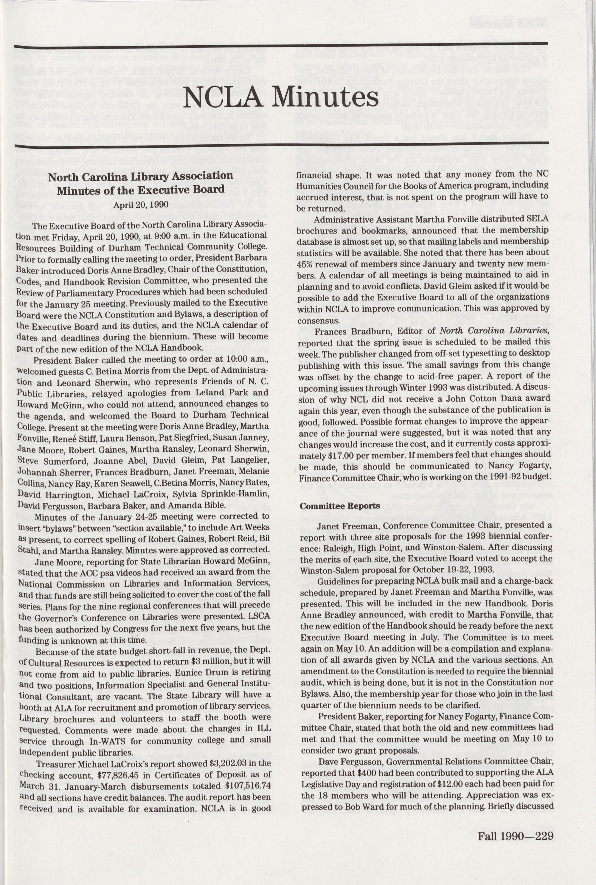 229 NCLA Minutes