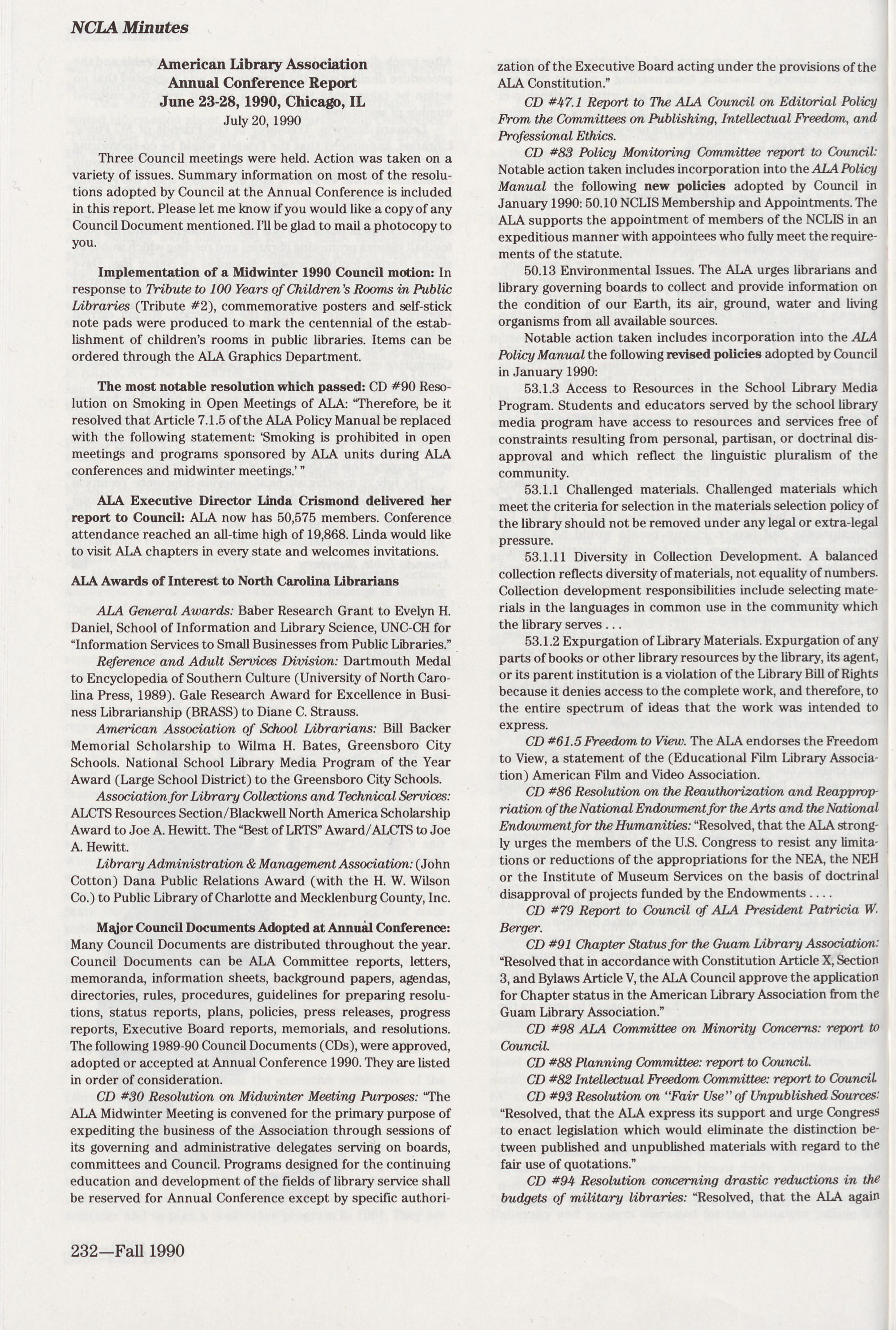 232 ALA CouncilorTs Report