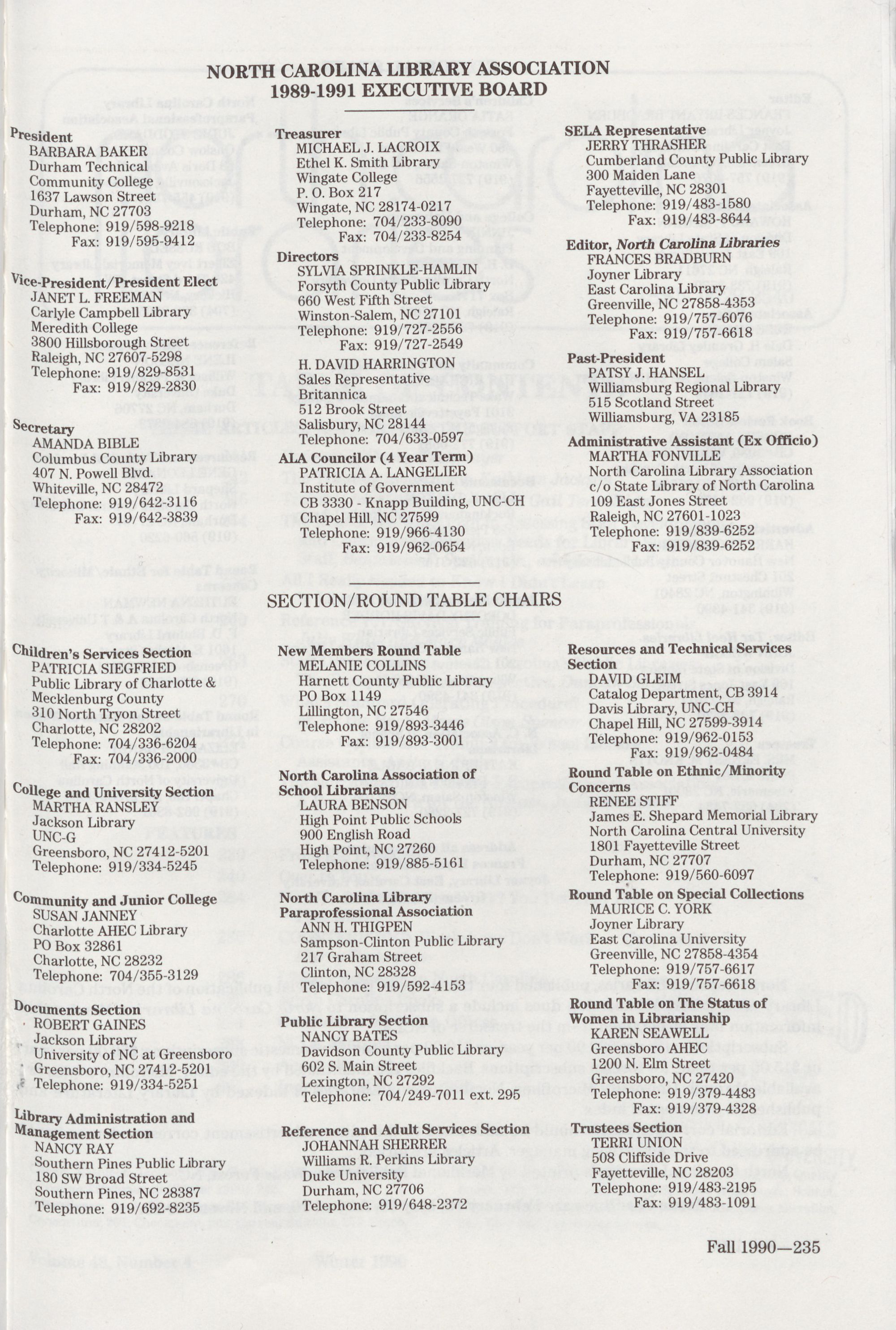 North Carolina Libraries, published four times a year, is the official publication of the North Carolin~