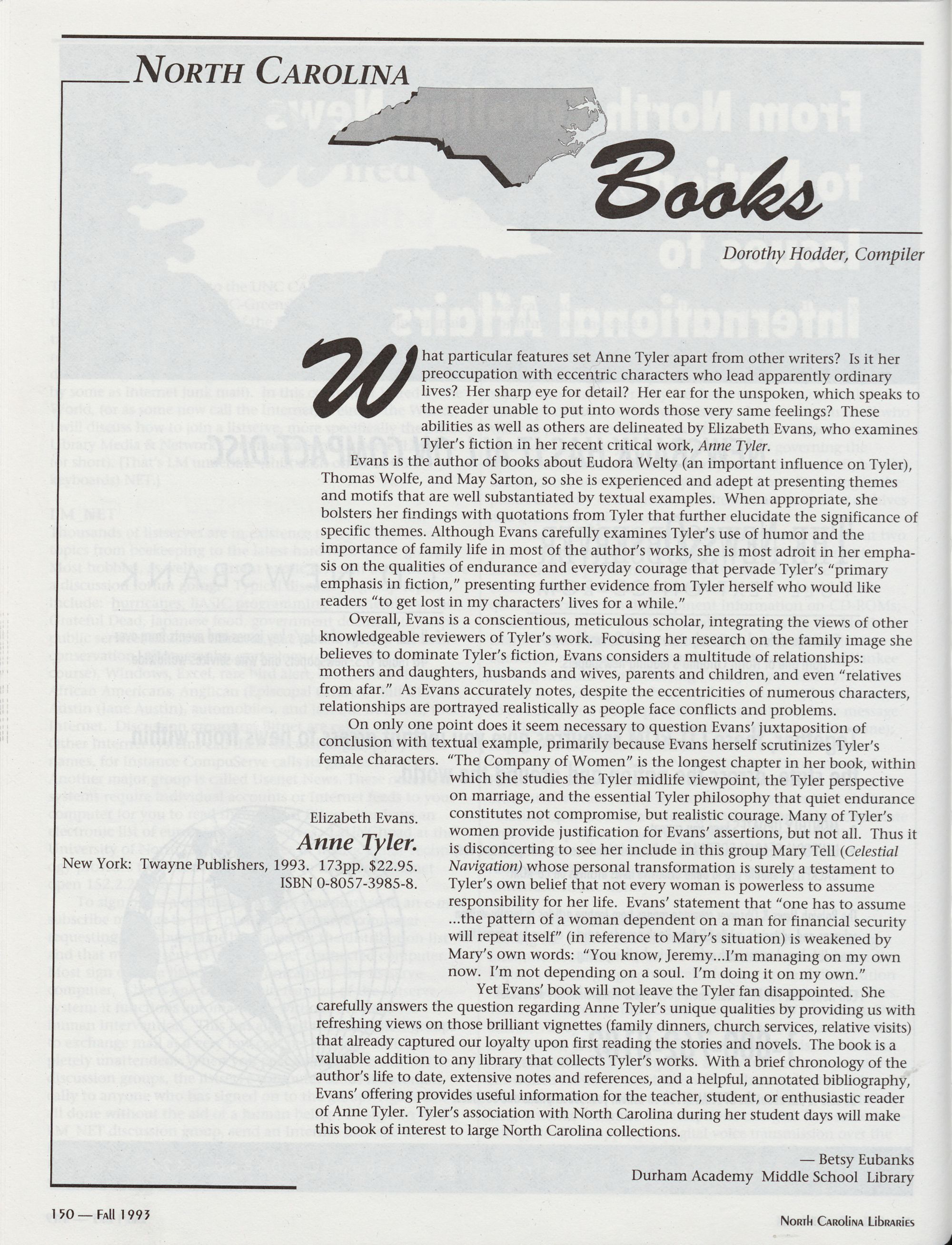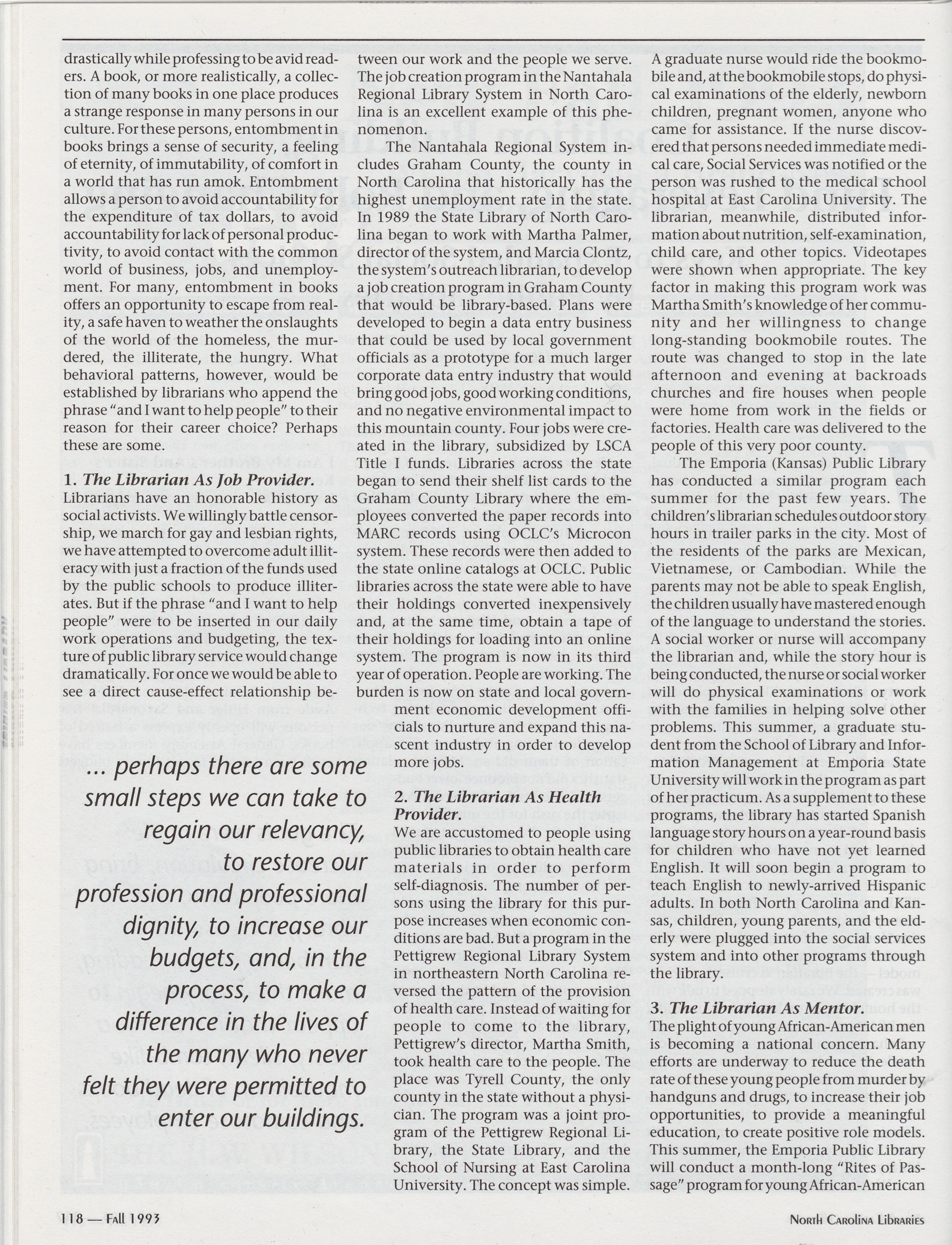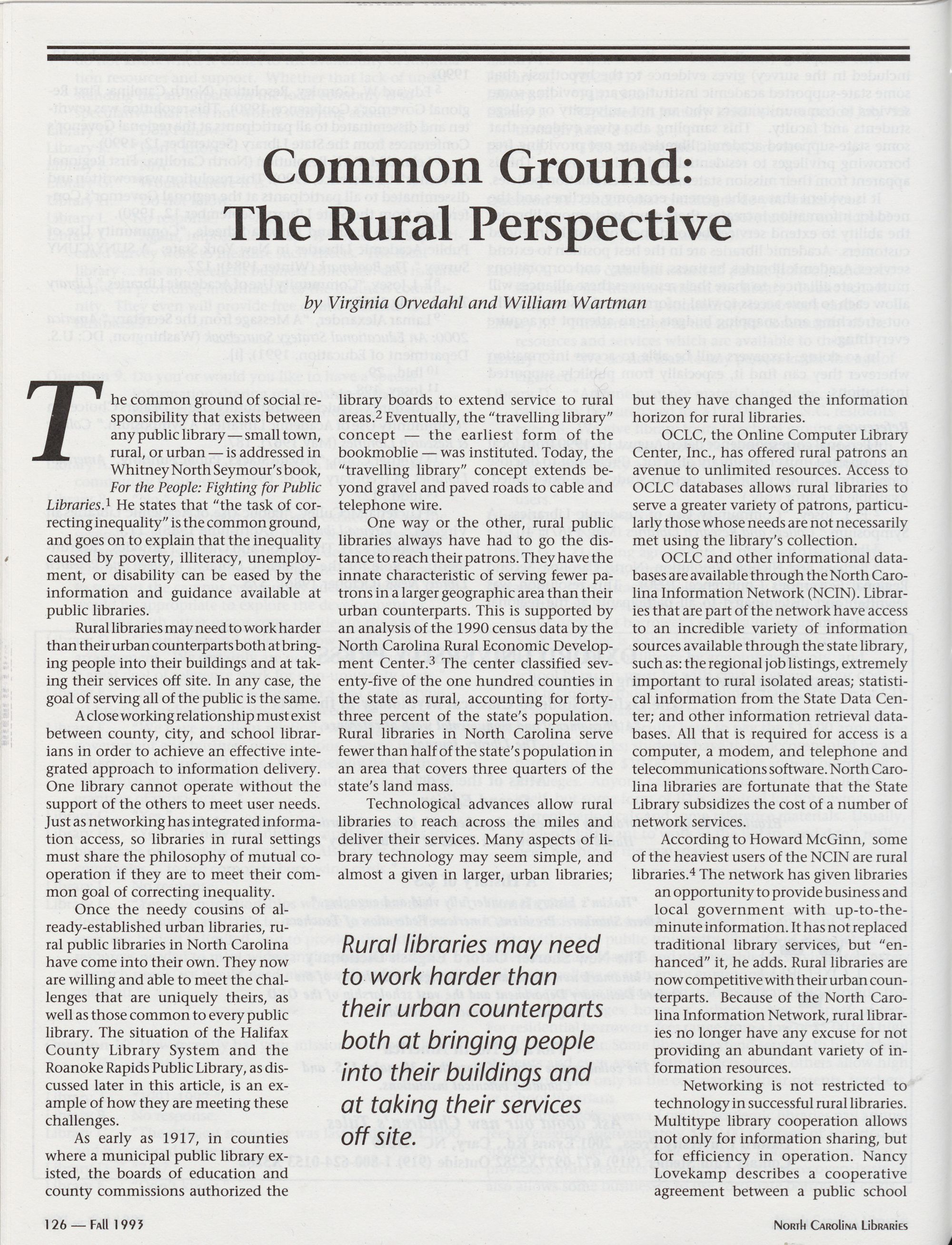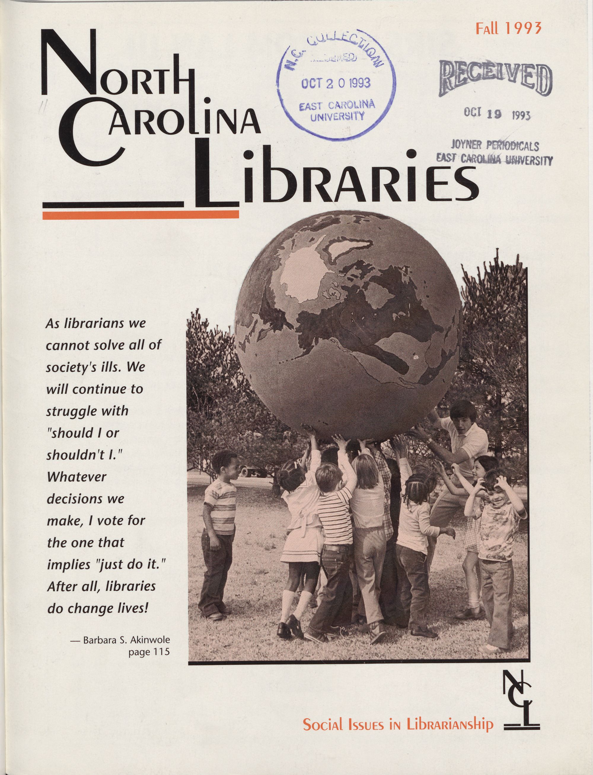 So a ee North Carolina Libraries is electronically produced. Art direction and design by Pat Weathersbee of TeamMedia, Greenville, NC.