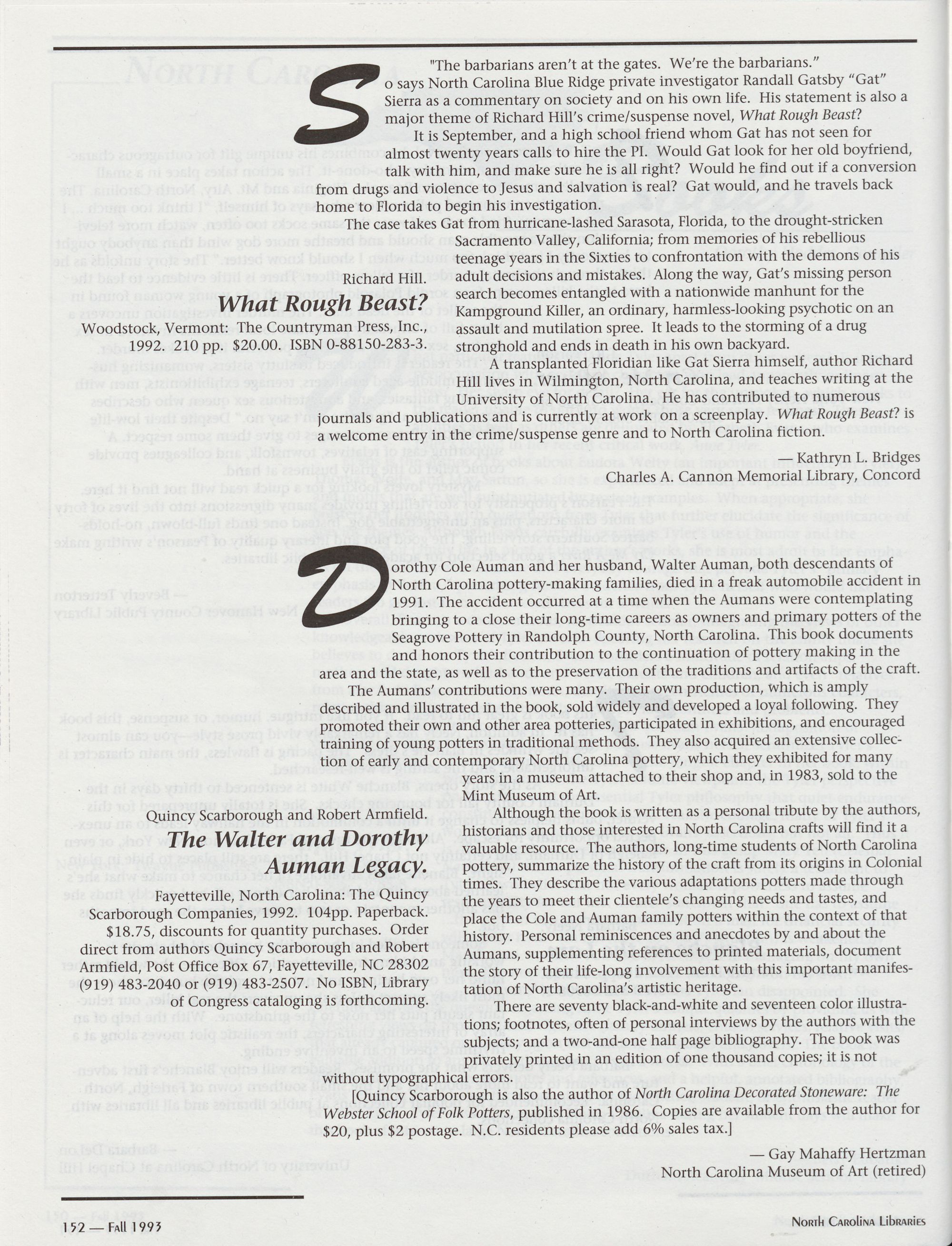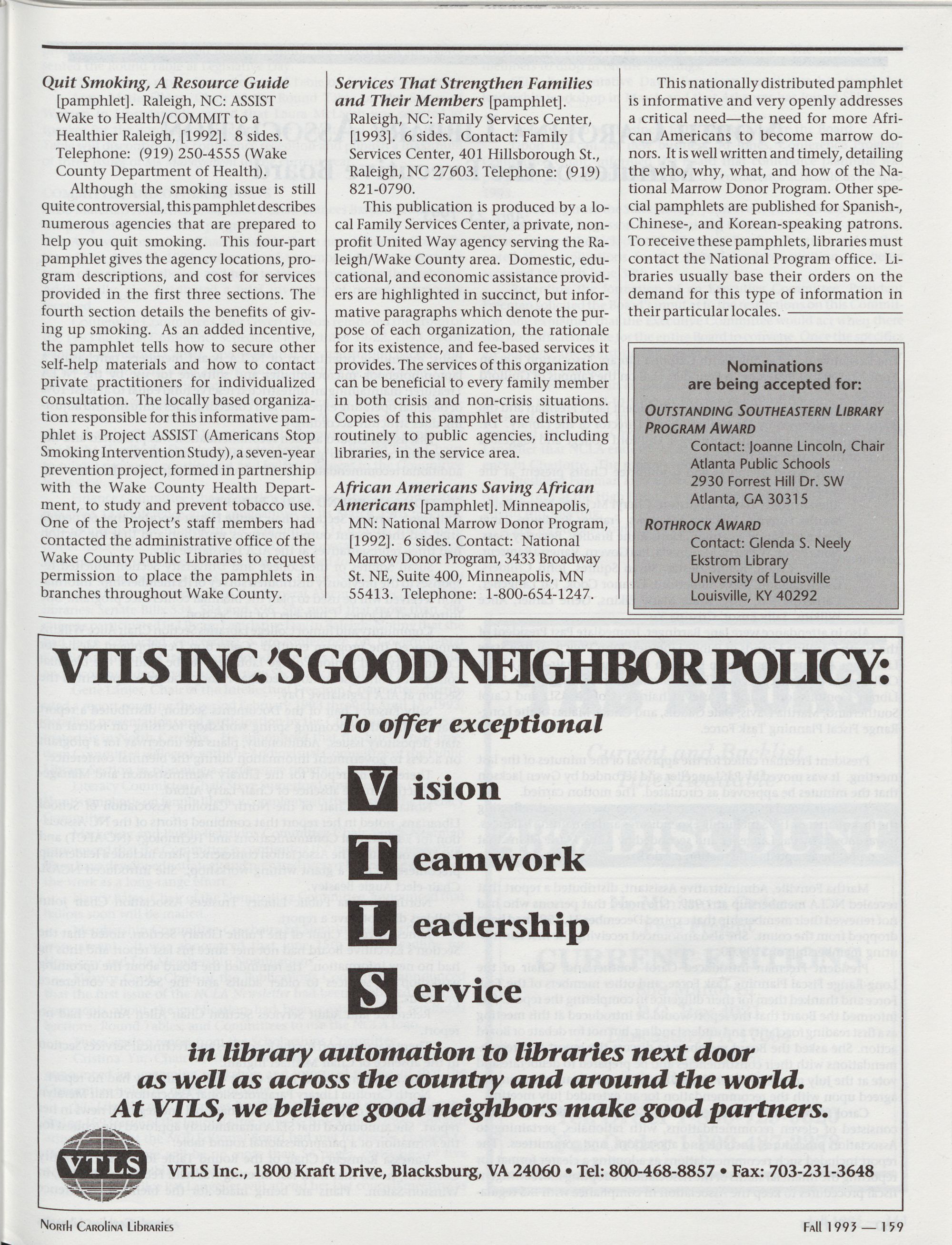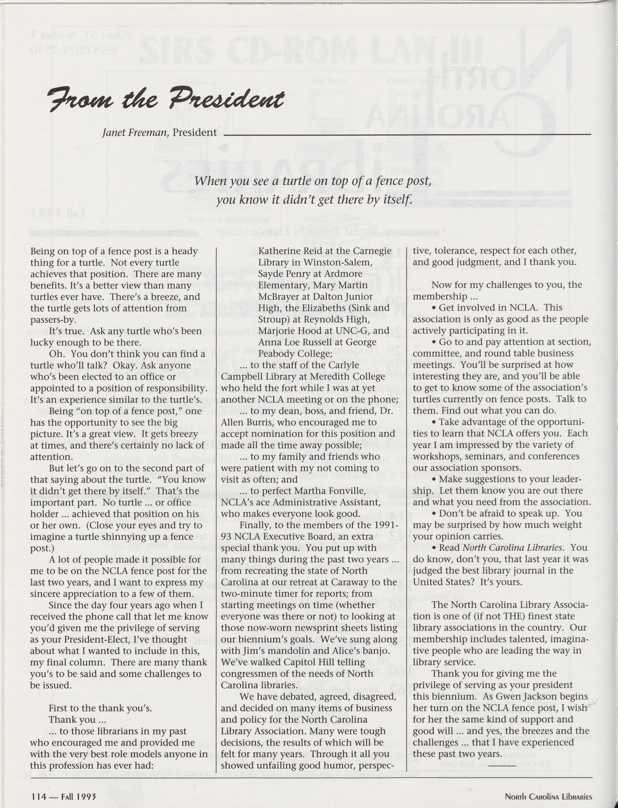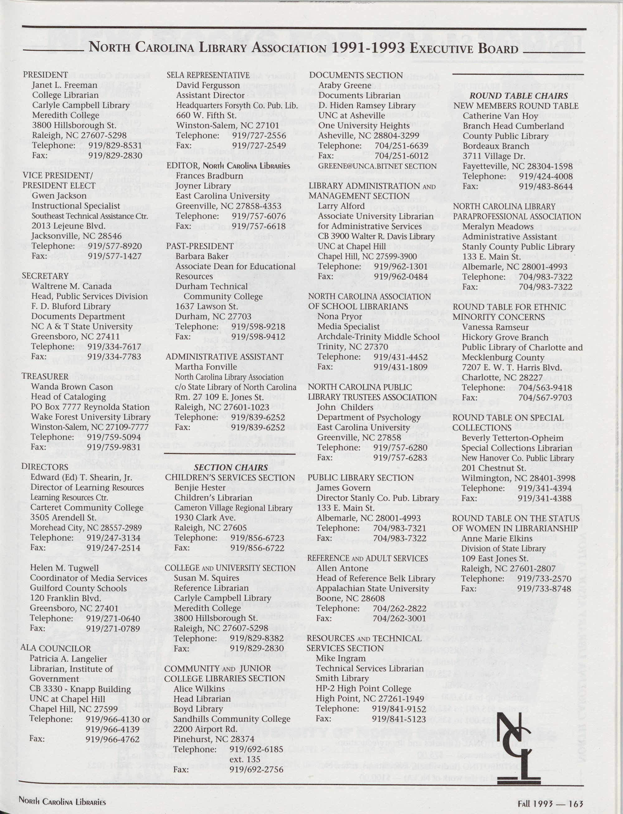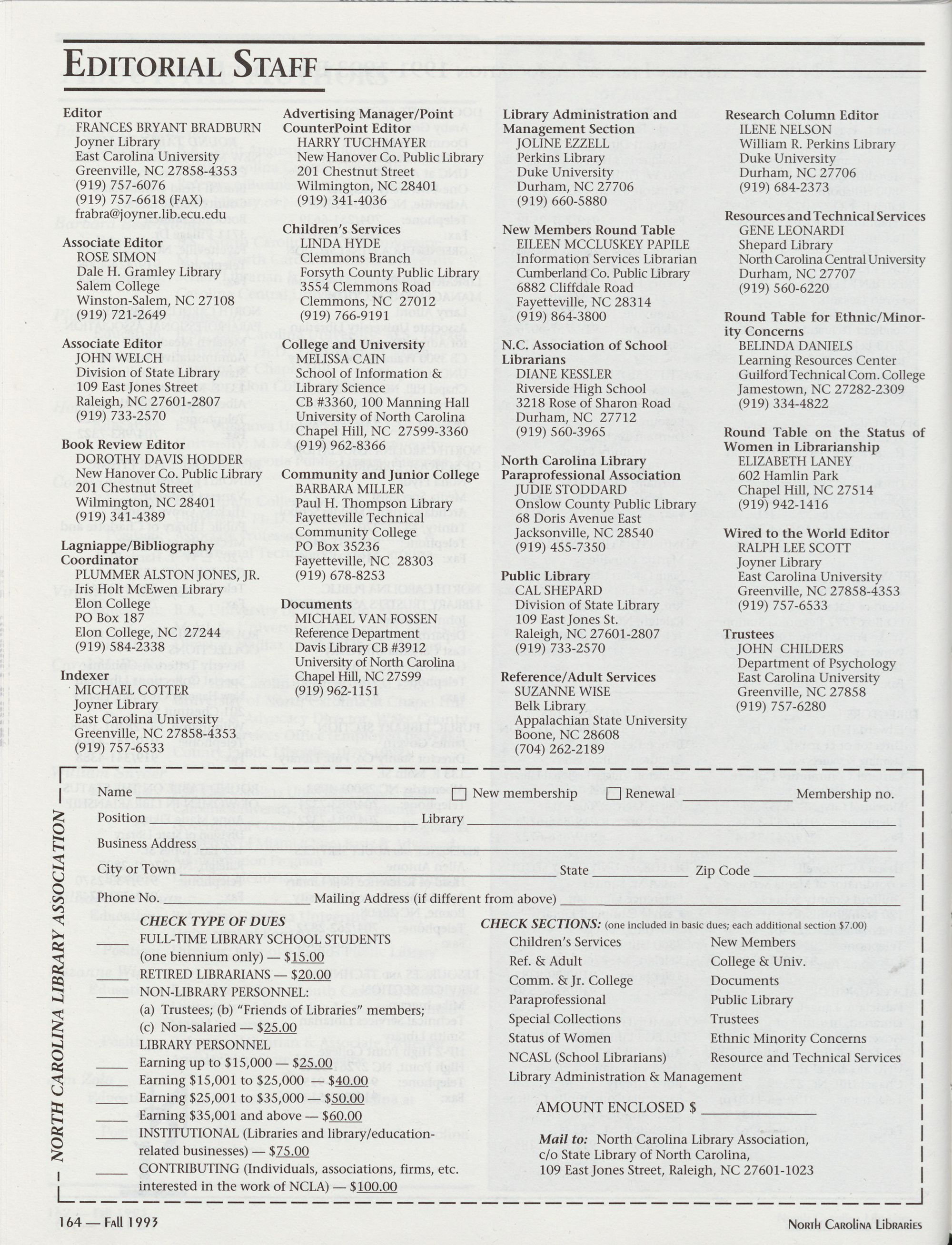 Carolina Library Association. Membership dues include a subscription to North Carolina o So) i