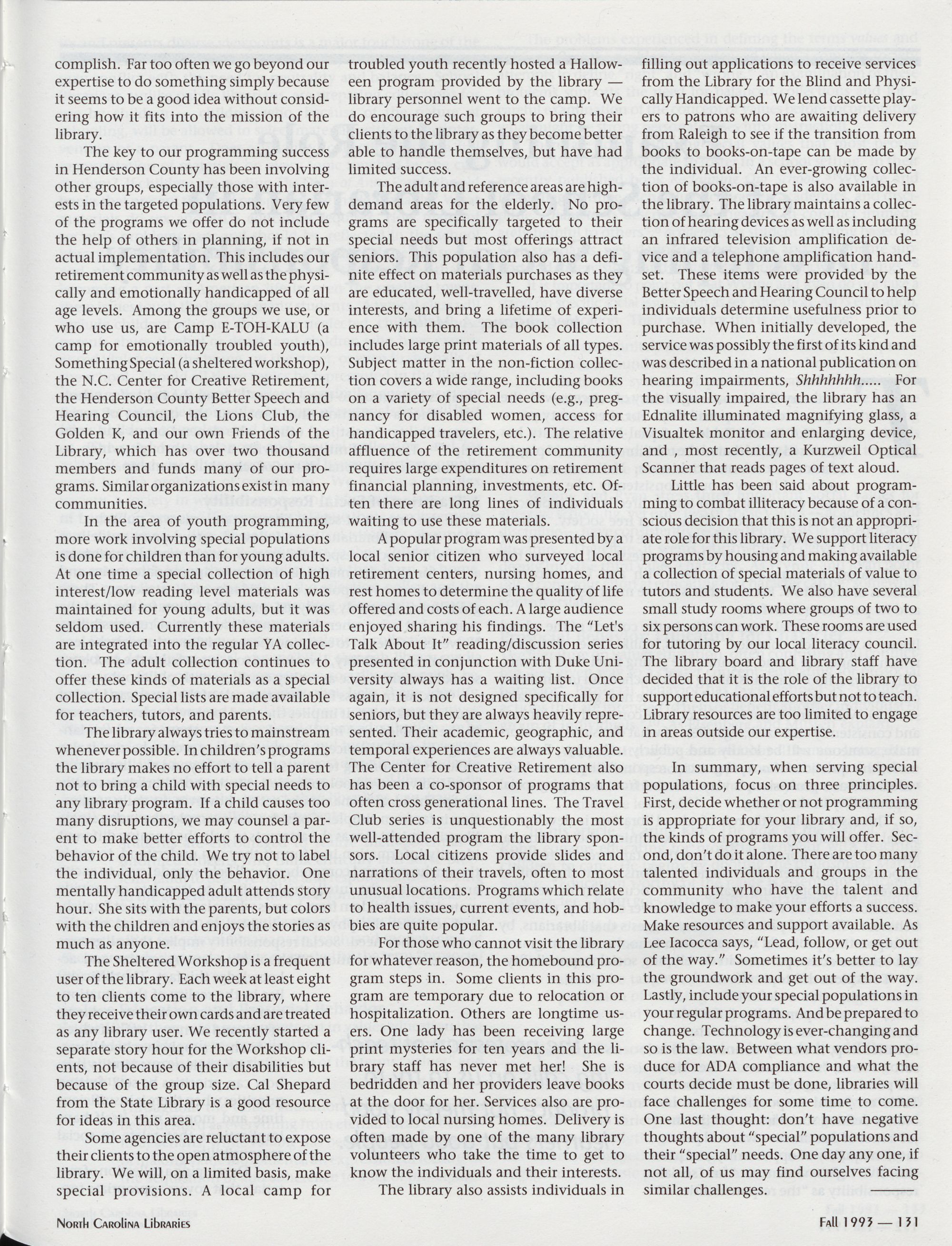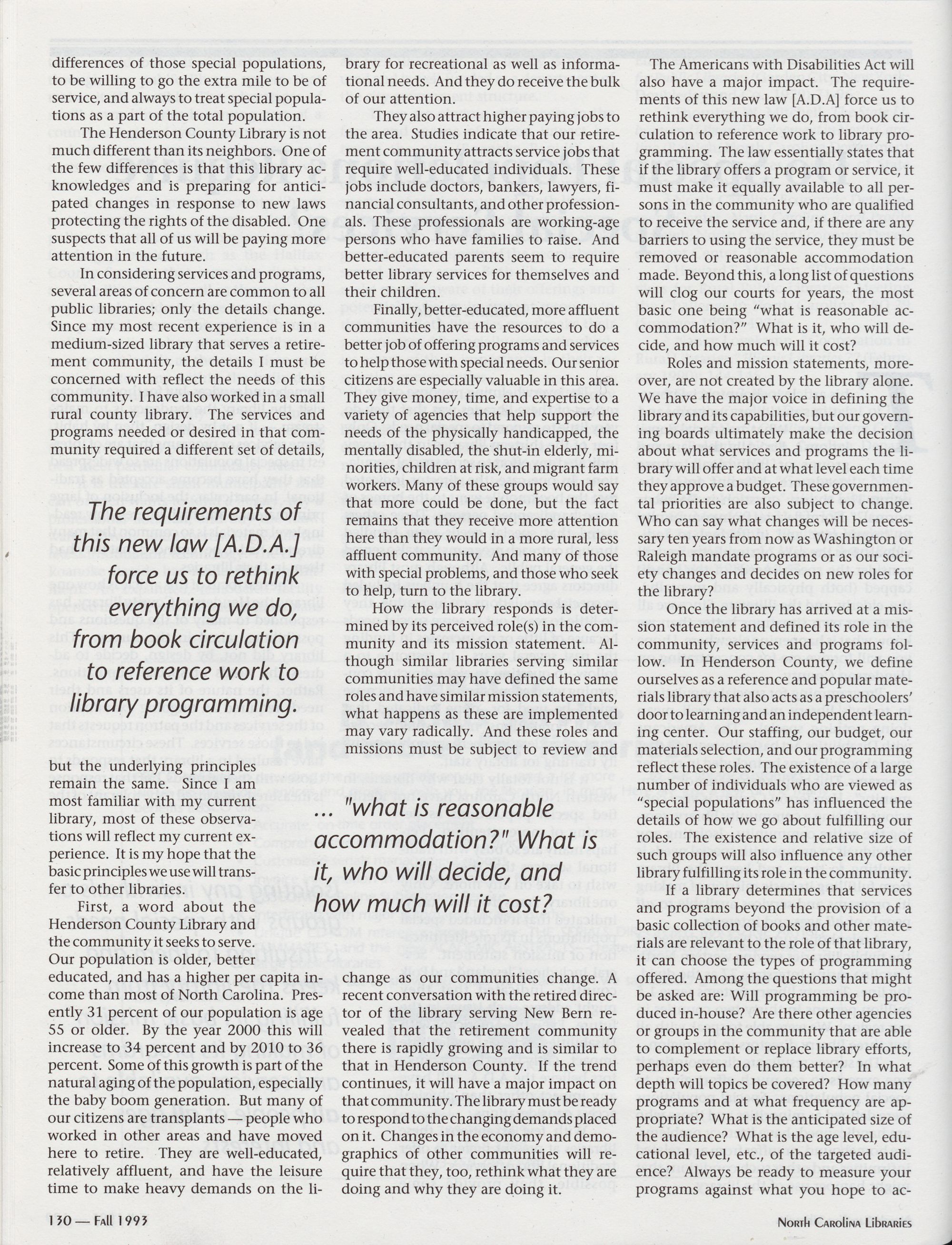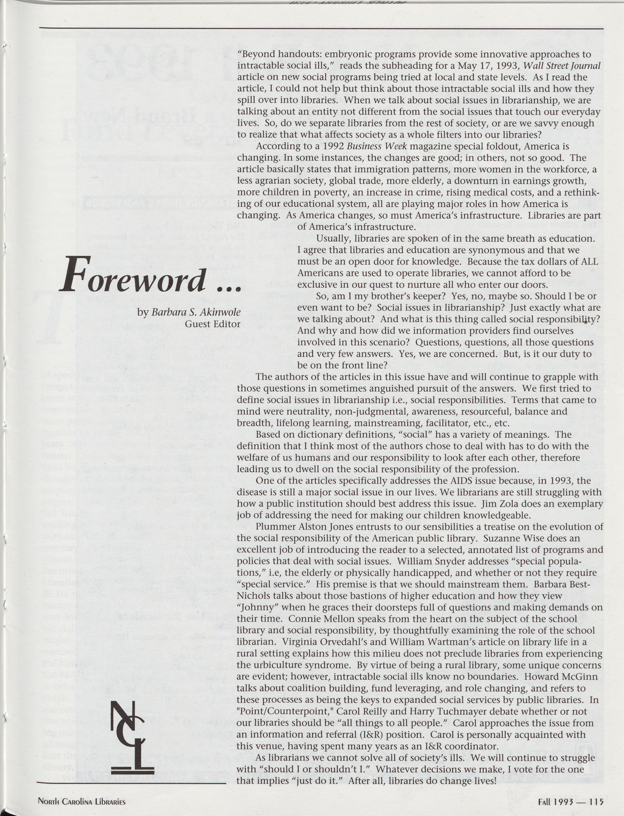 Unsolicited articles dealing with the above themes or any issue of interest to North Carolina librarians age