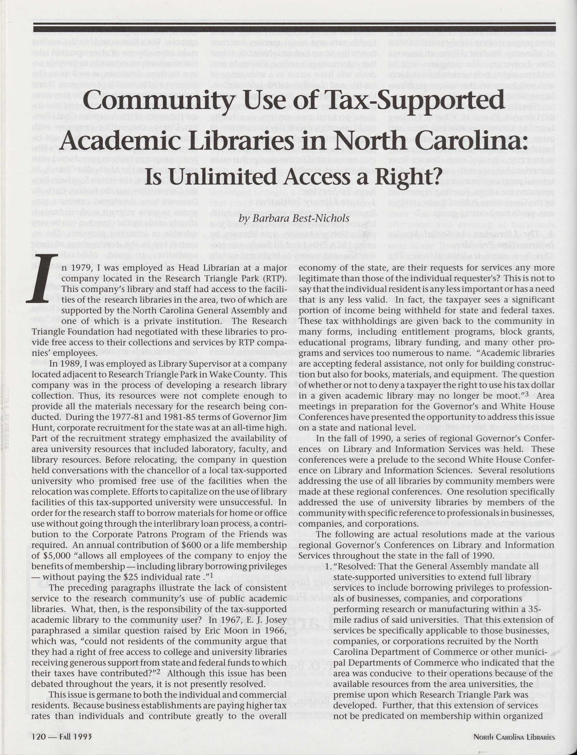 120 Community Use of Tax-Supported Academic Libraries in North Carolina: Is