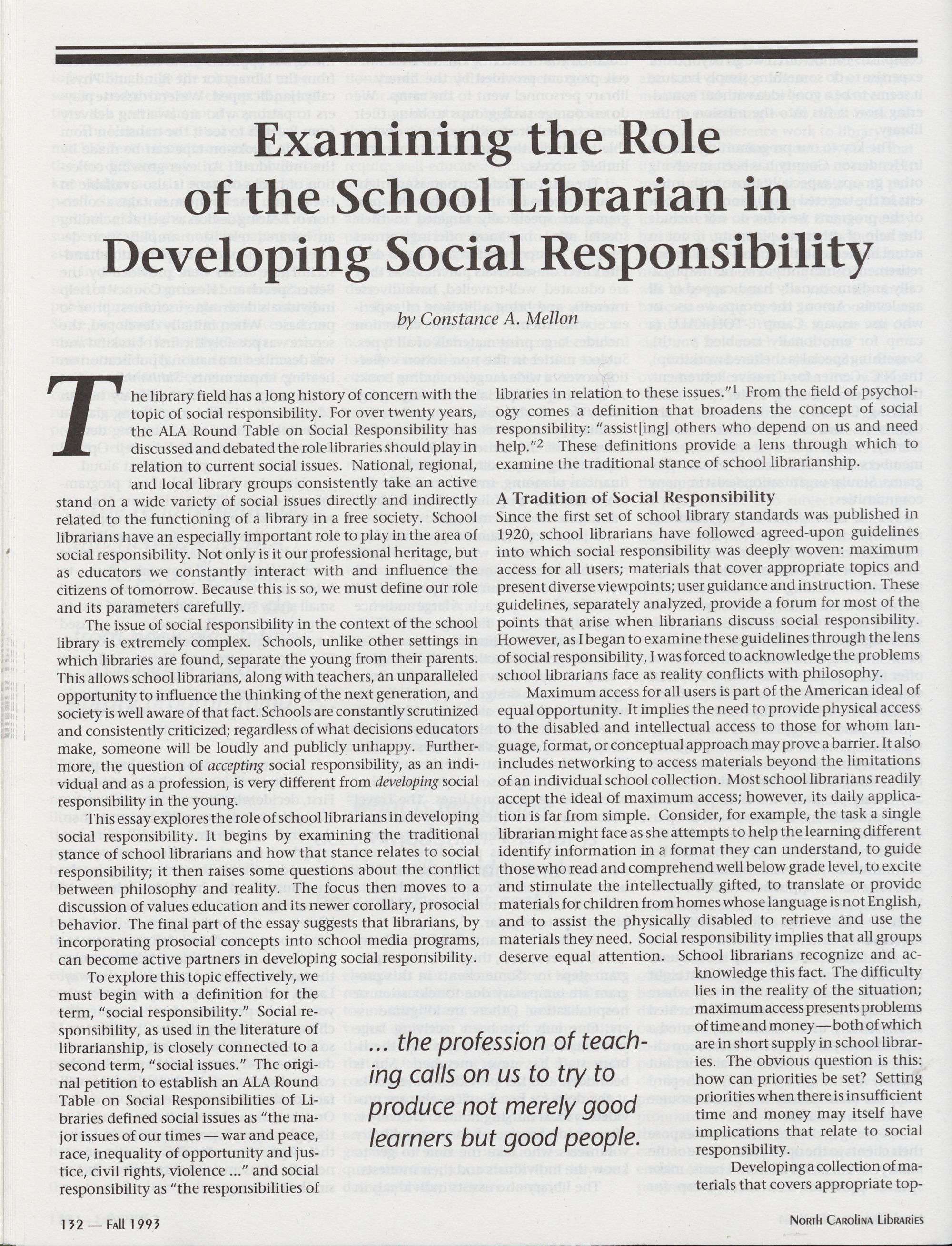 132 Examining the Role of the School Librarian in Developing Social Responsibility,