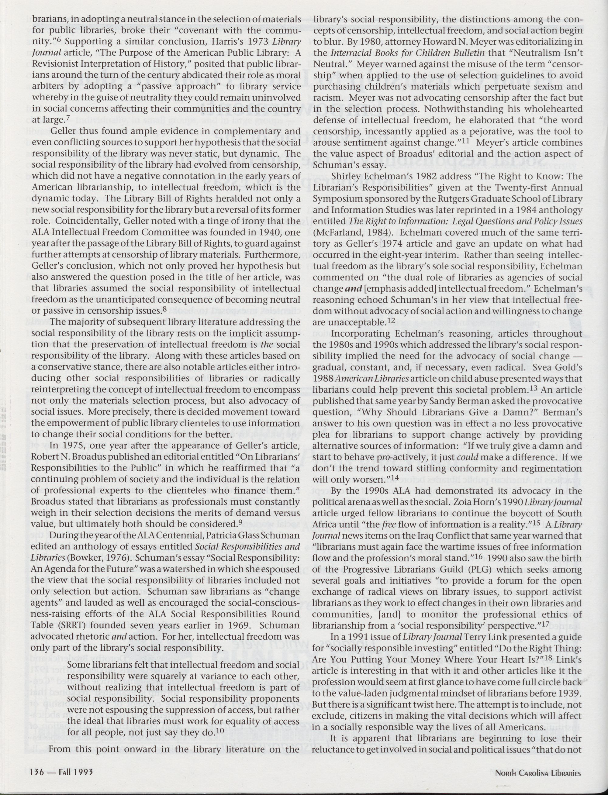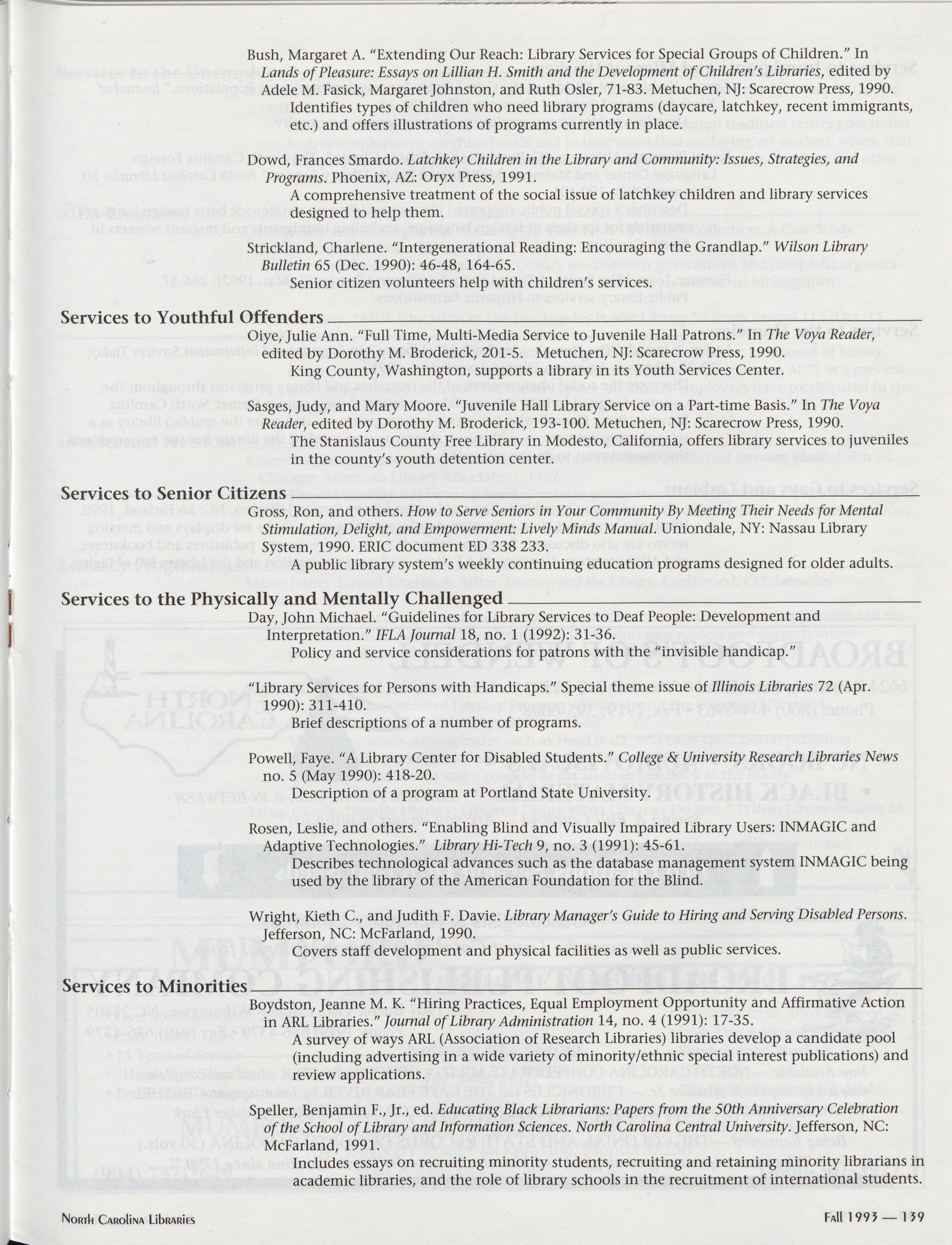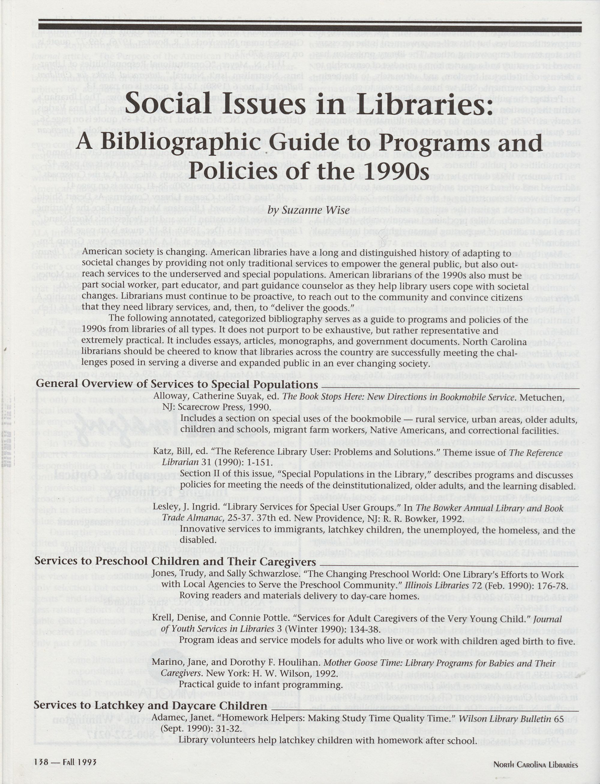 138 Social Issues in Libraries: A Bibliographic Guide to Programs and Policies of the