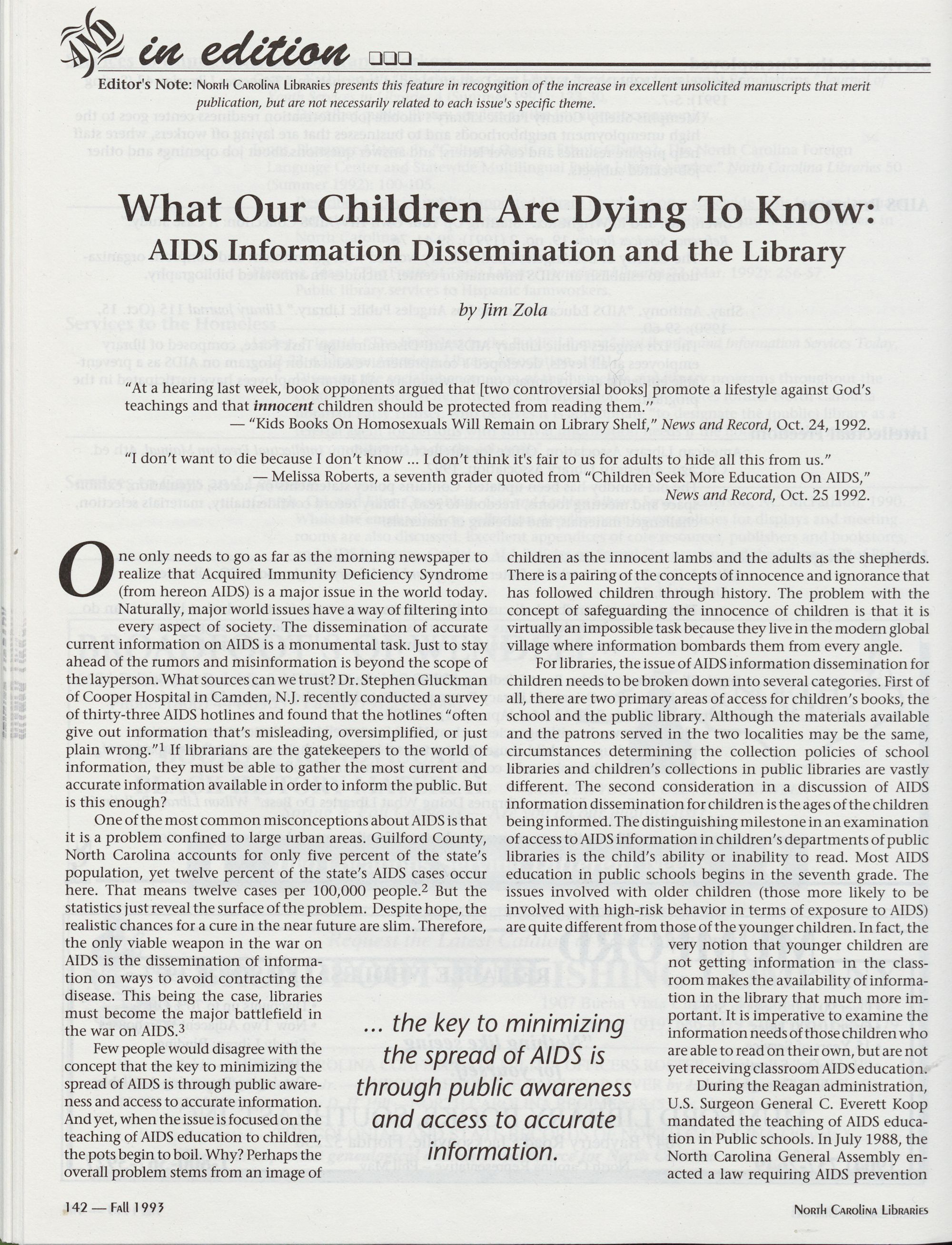 142 And In Edition ... : What Our Children Are Dying to Know: AIDS Information
