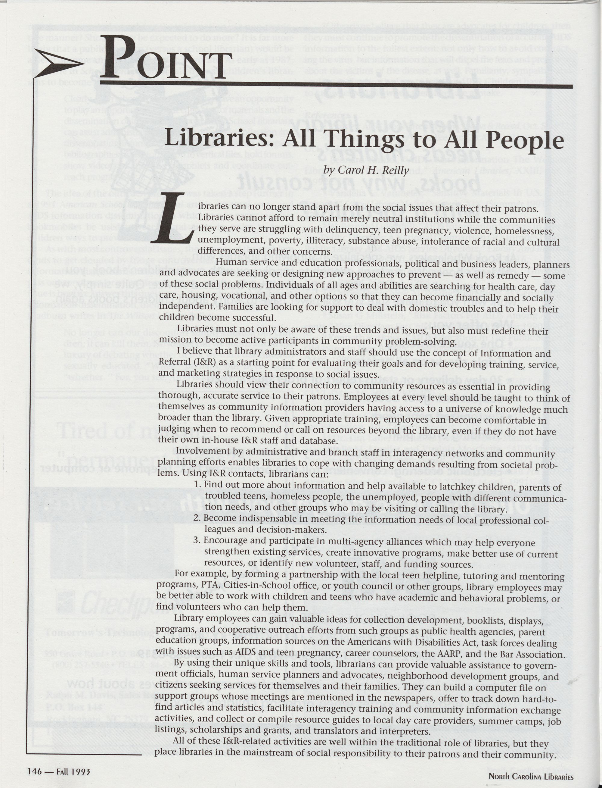 146 Point: Libraries: All Things to All People, Carol H. Reilly