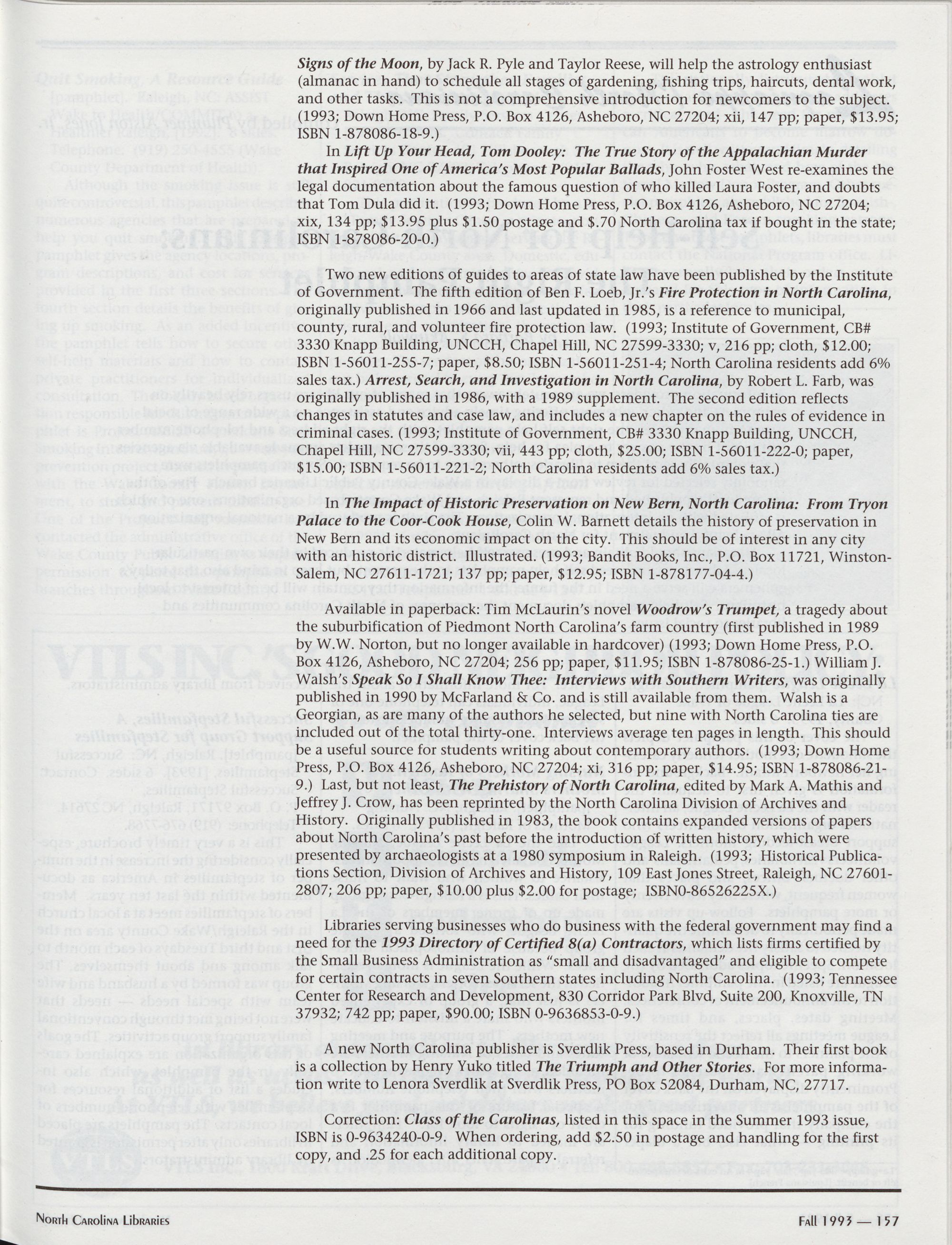 VTLS 159; UNC Press, back cover.