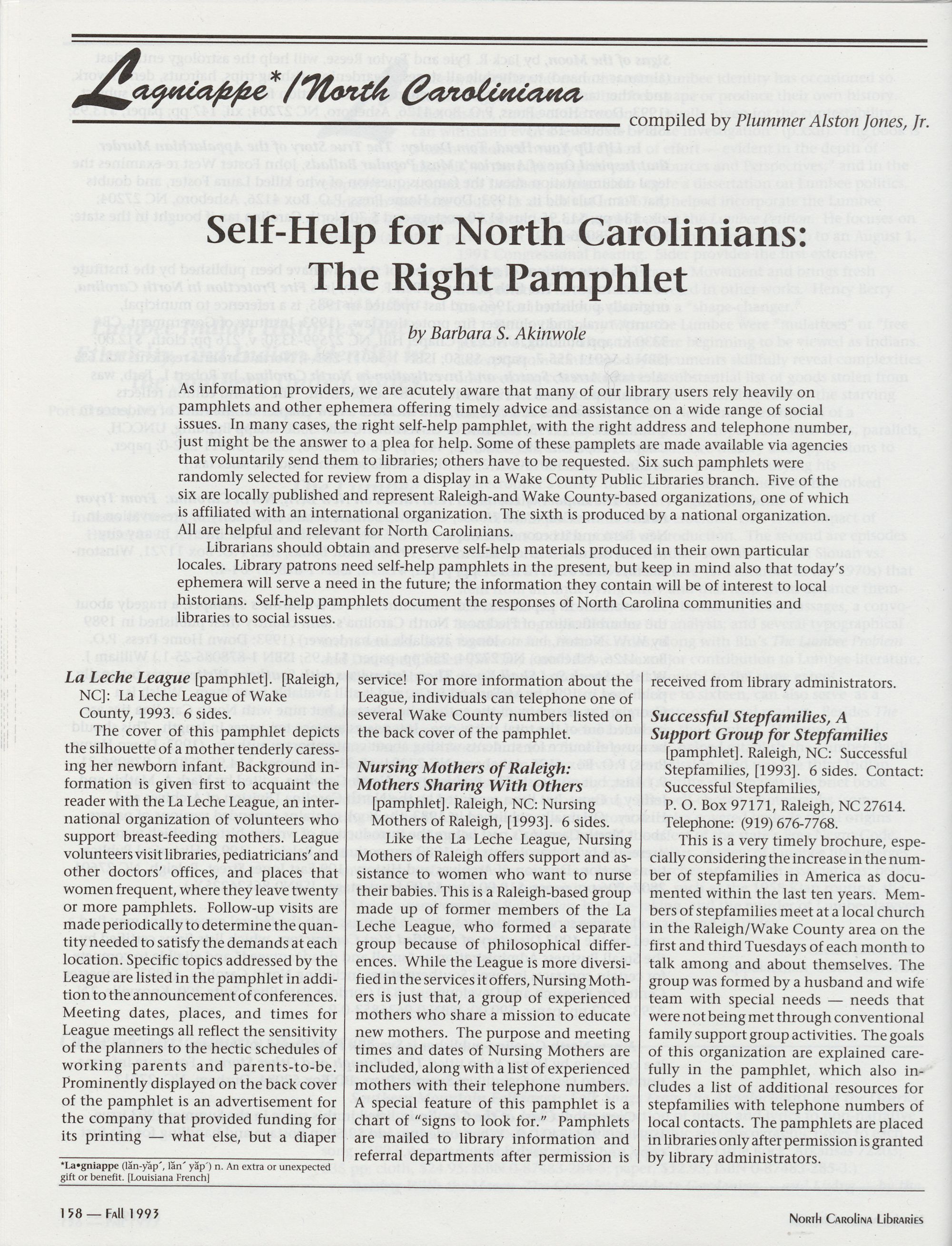 158 Lagniappe: Self-Help for North Carolinians: The Right Pamphlet,