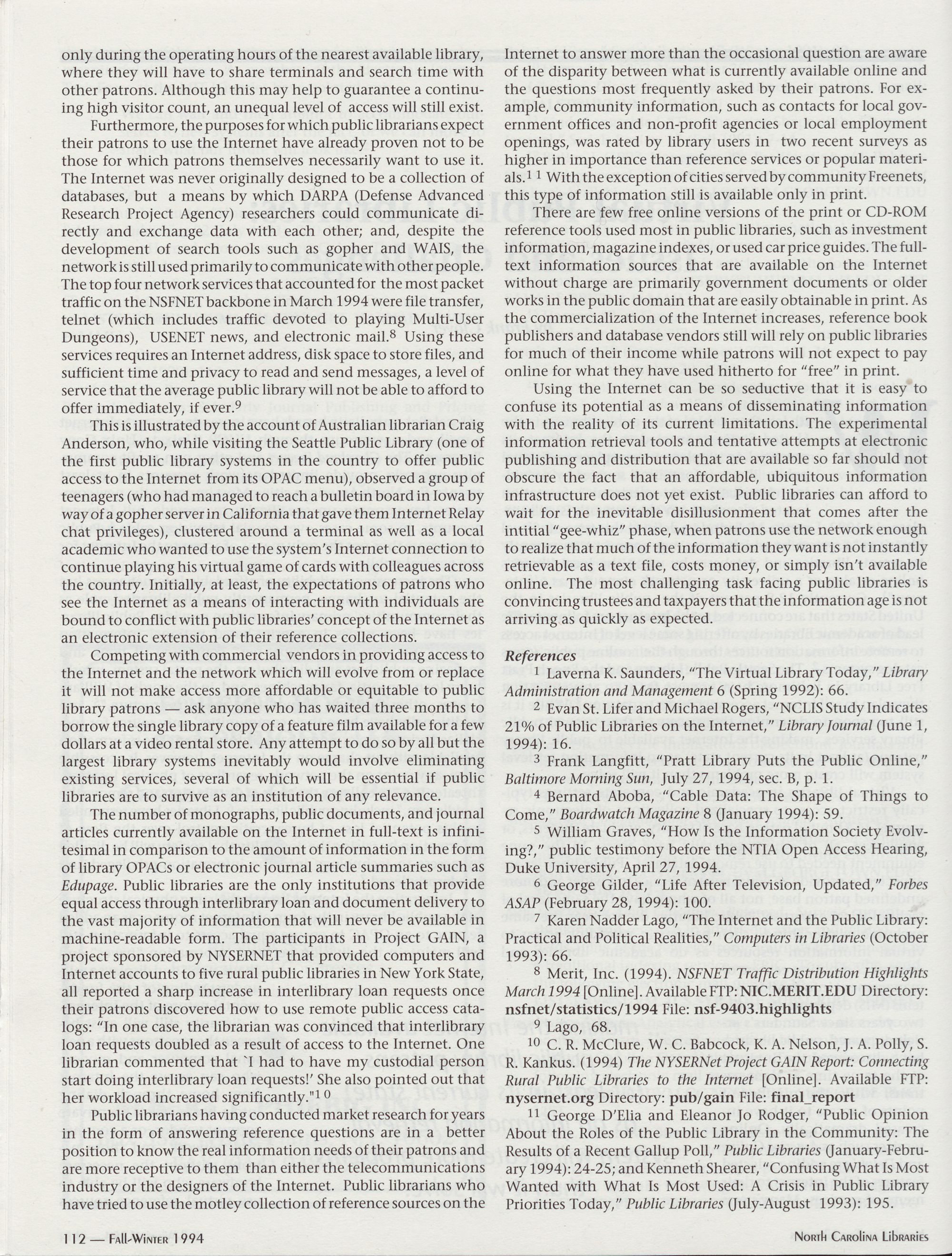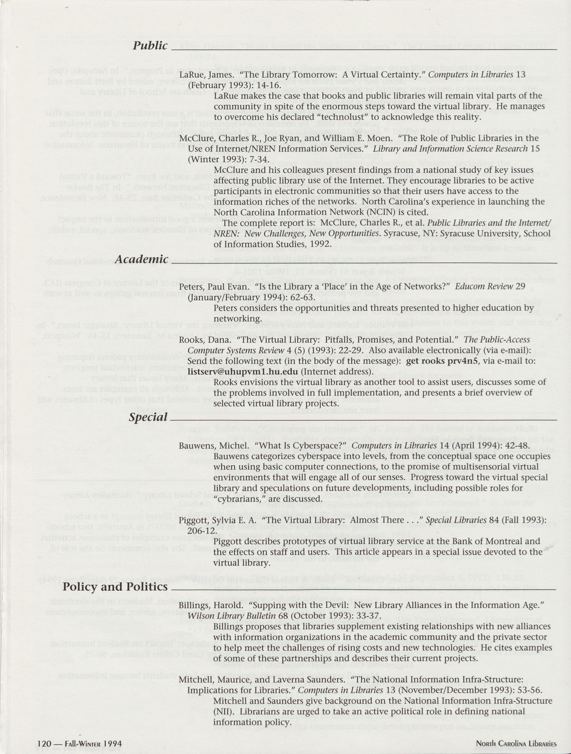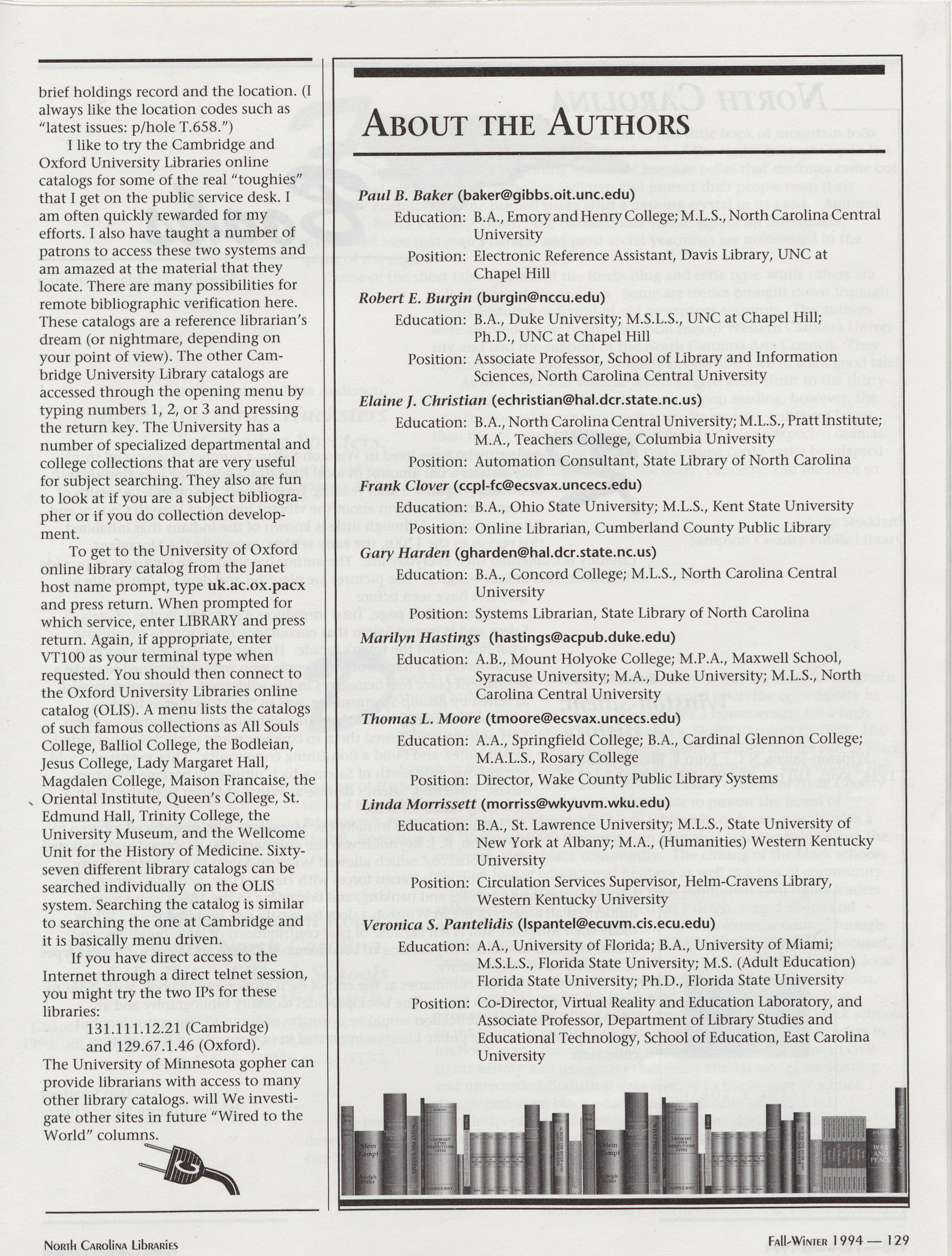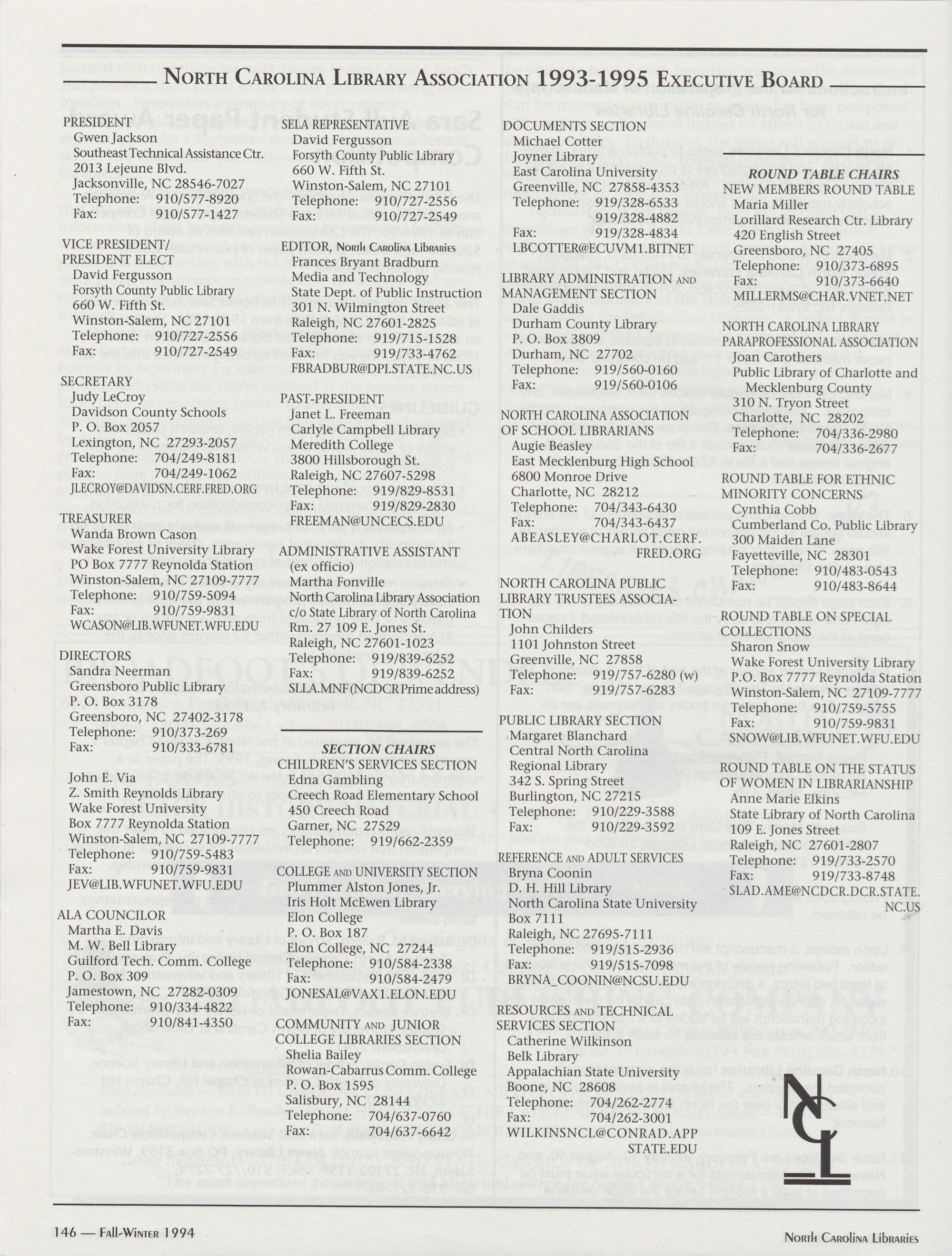 96 " Fall-Winter 1994 North Carolina Libraries