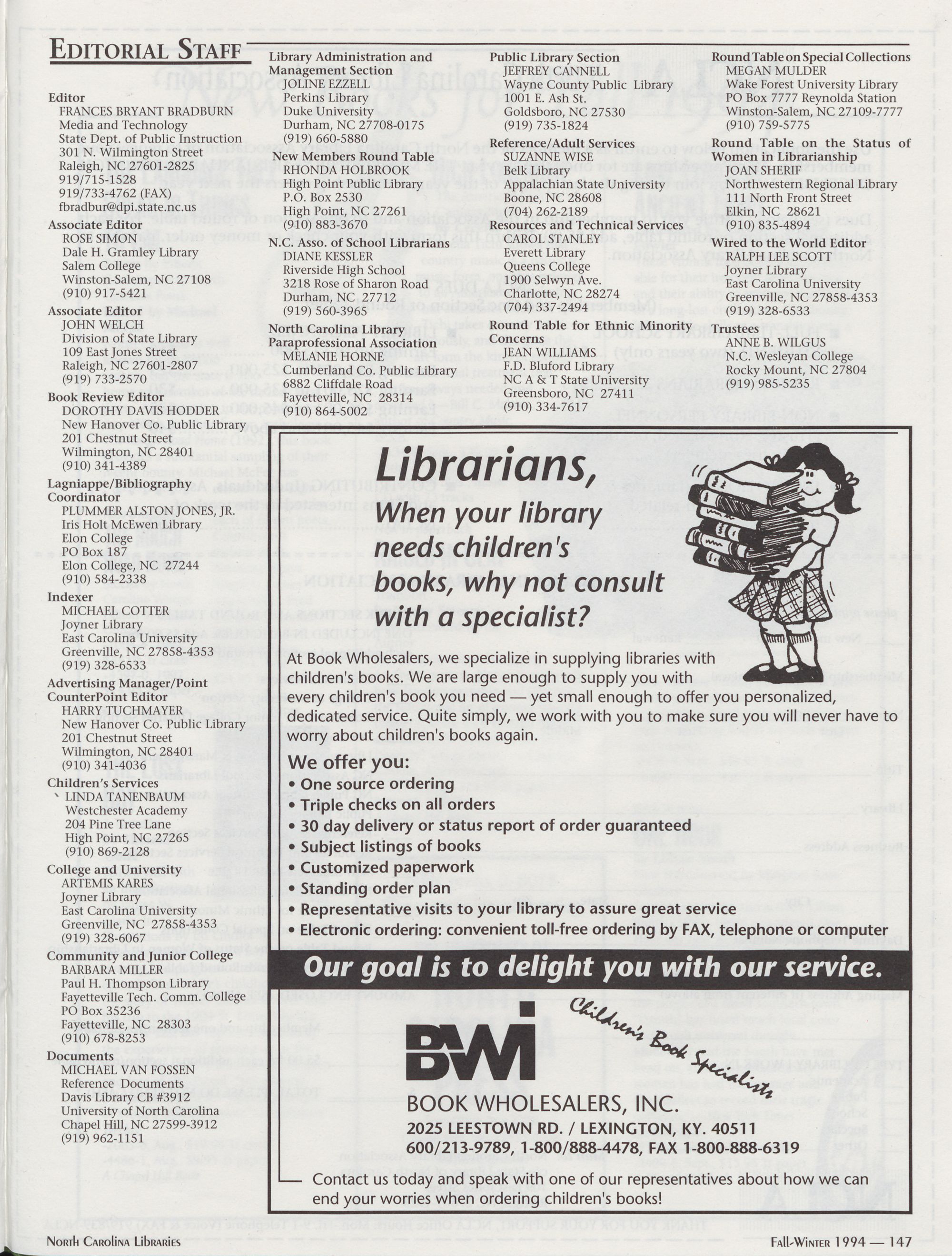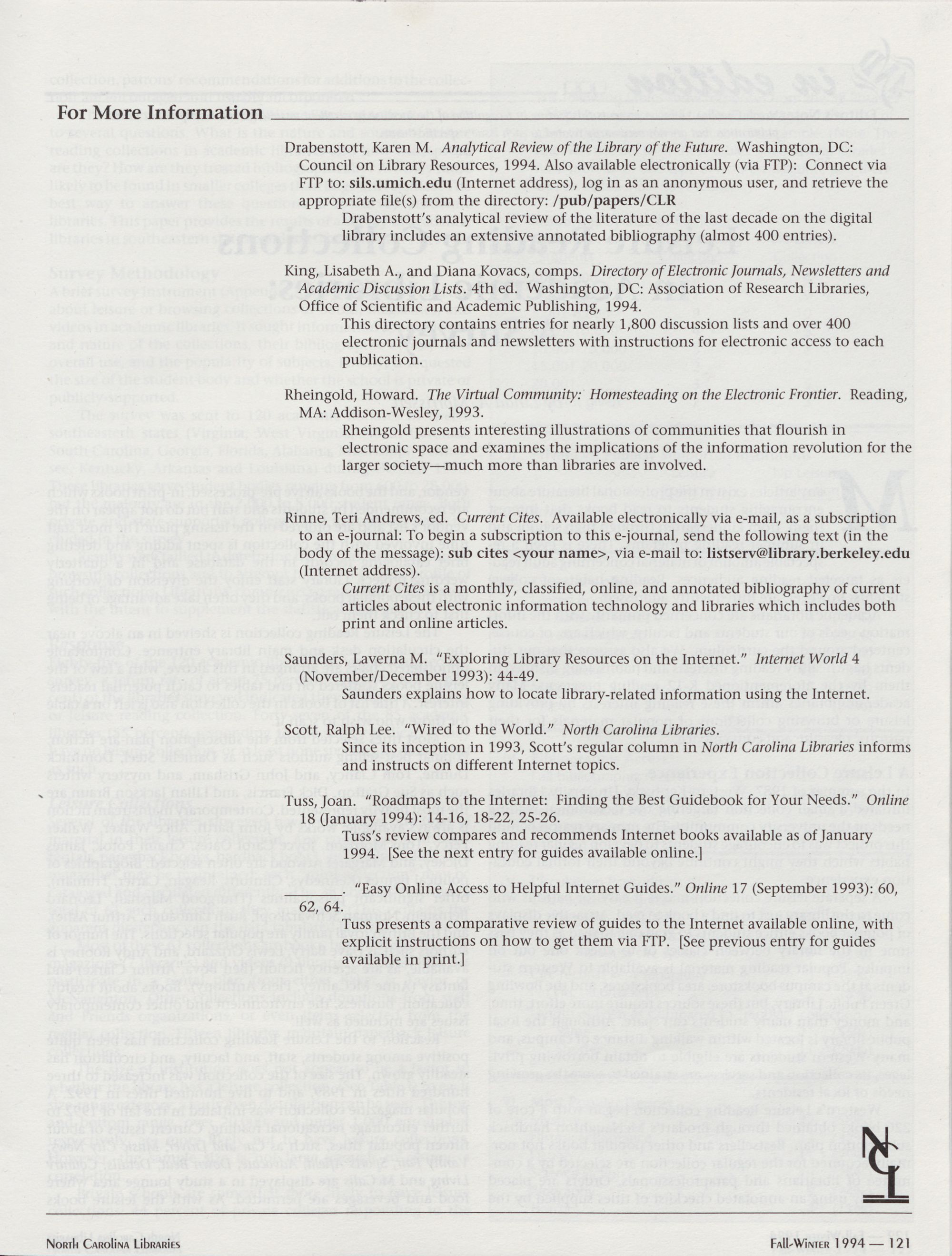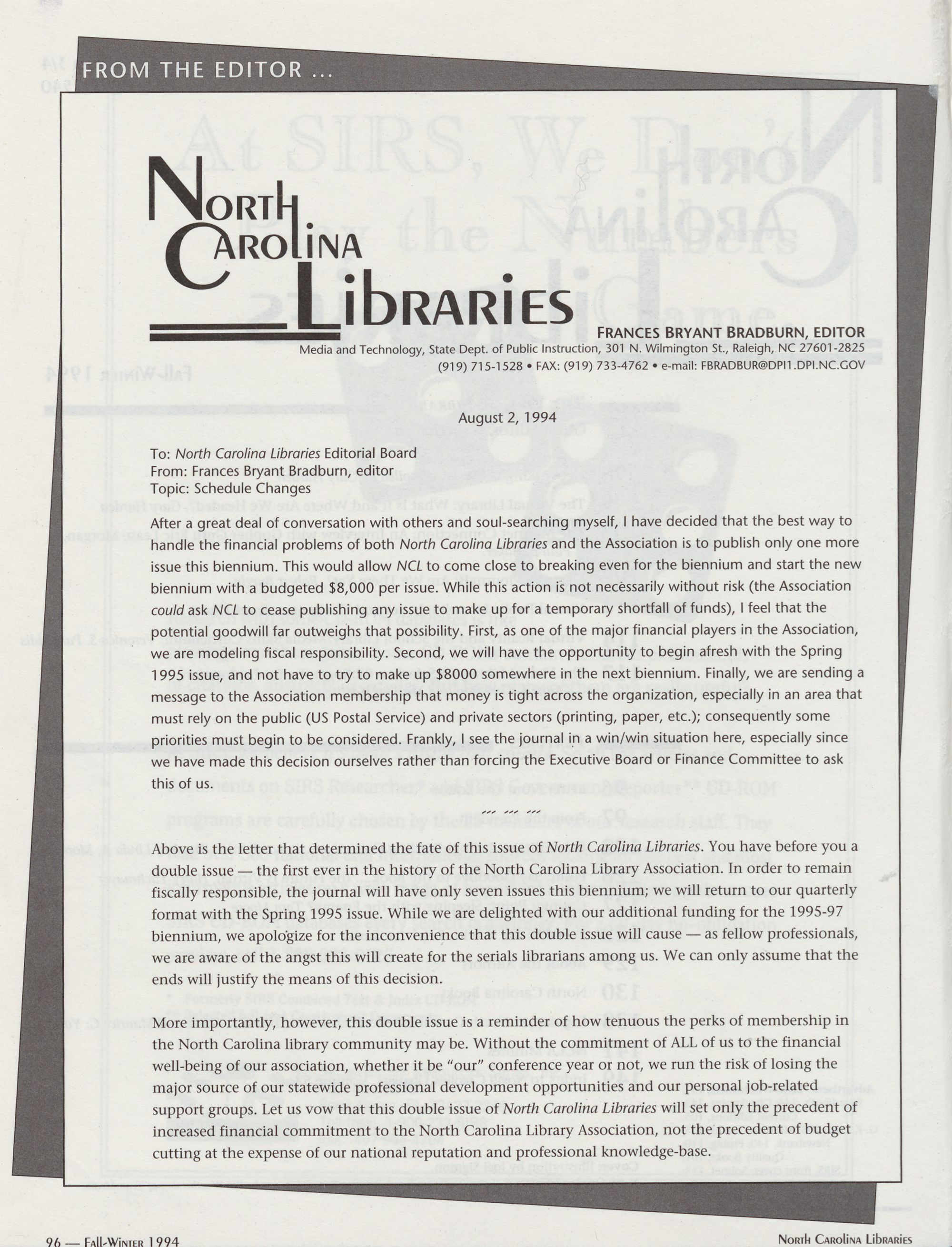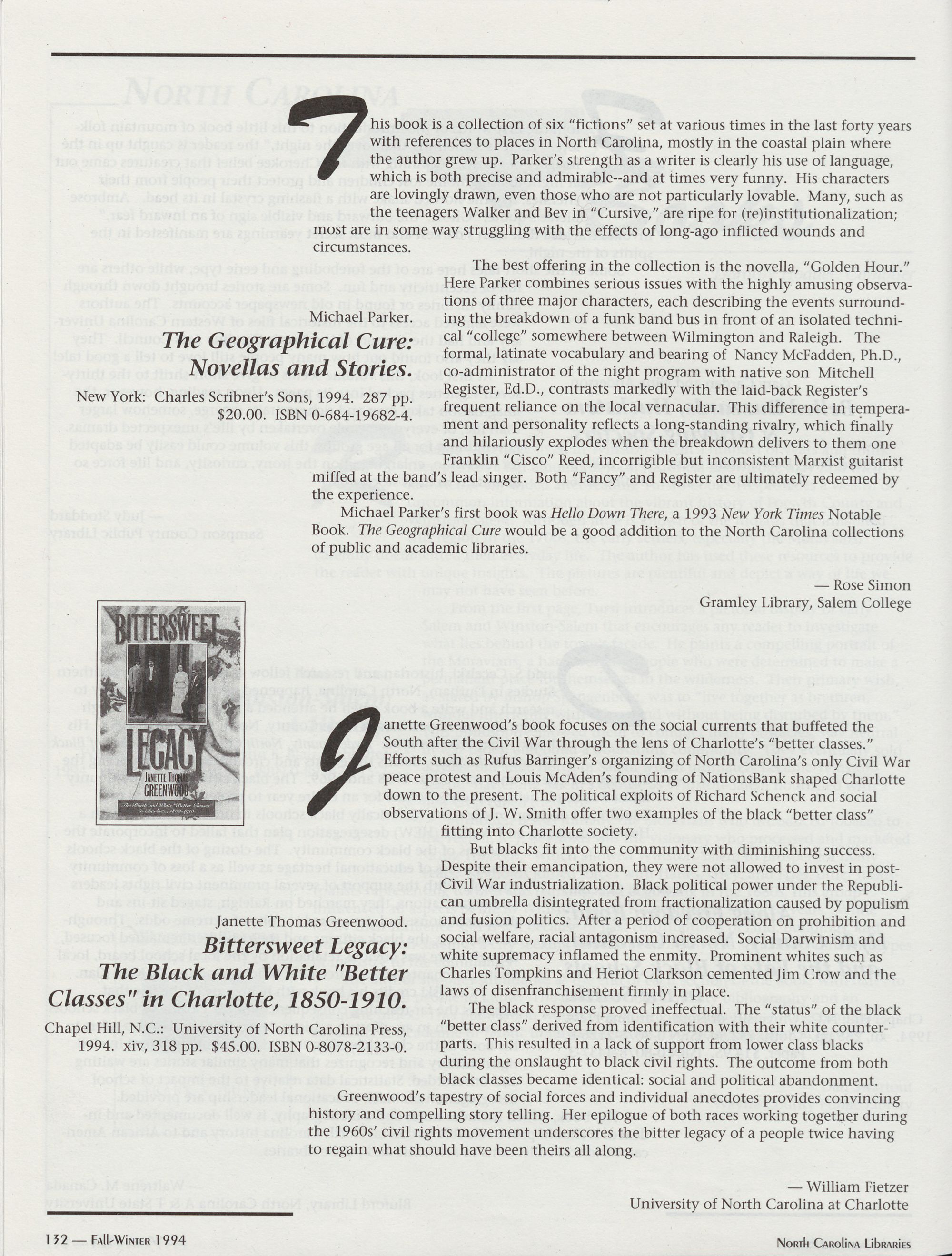 96 " Fall-Winter 1994 North Carolina Libraries