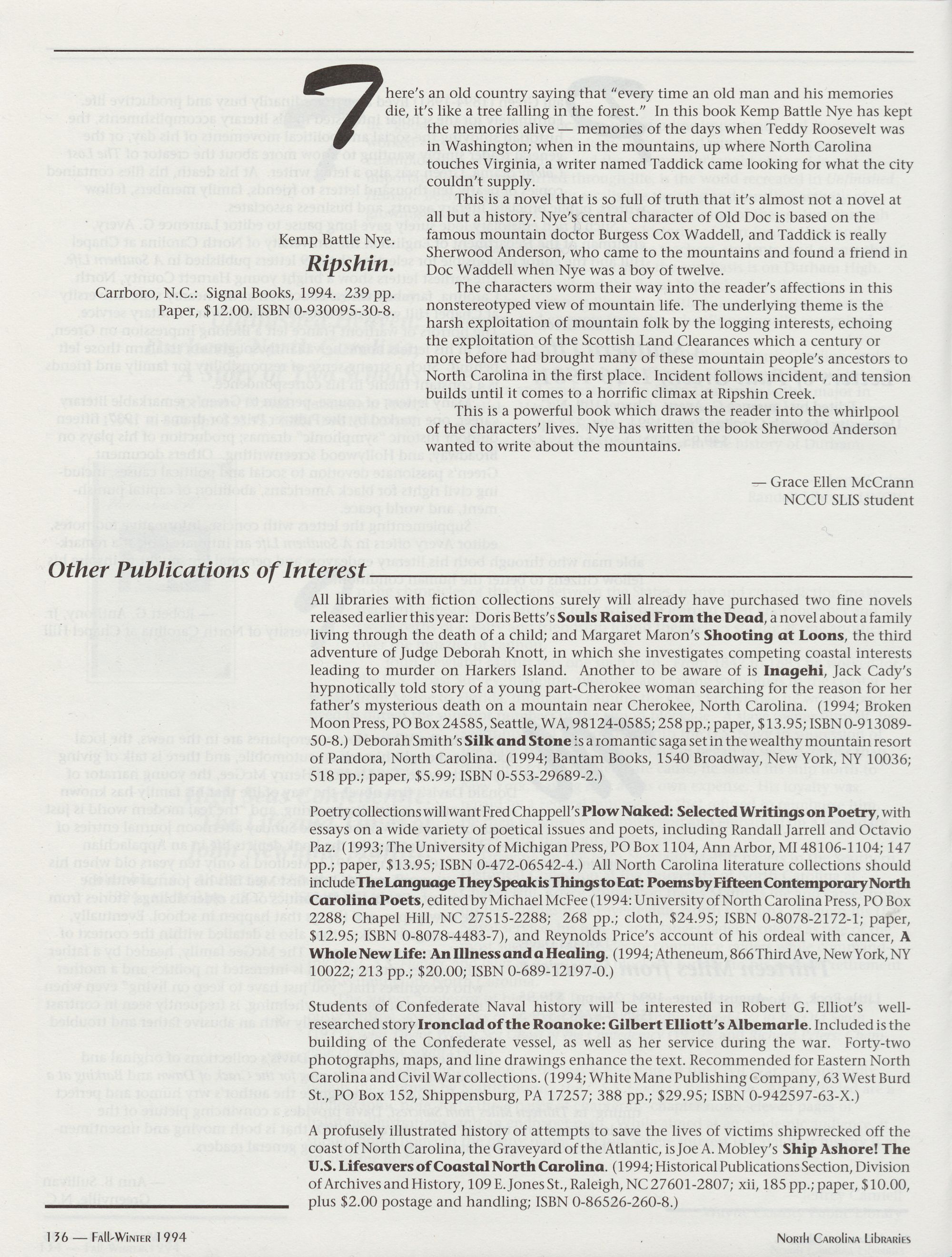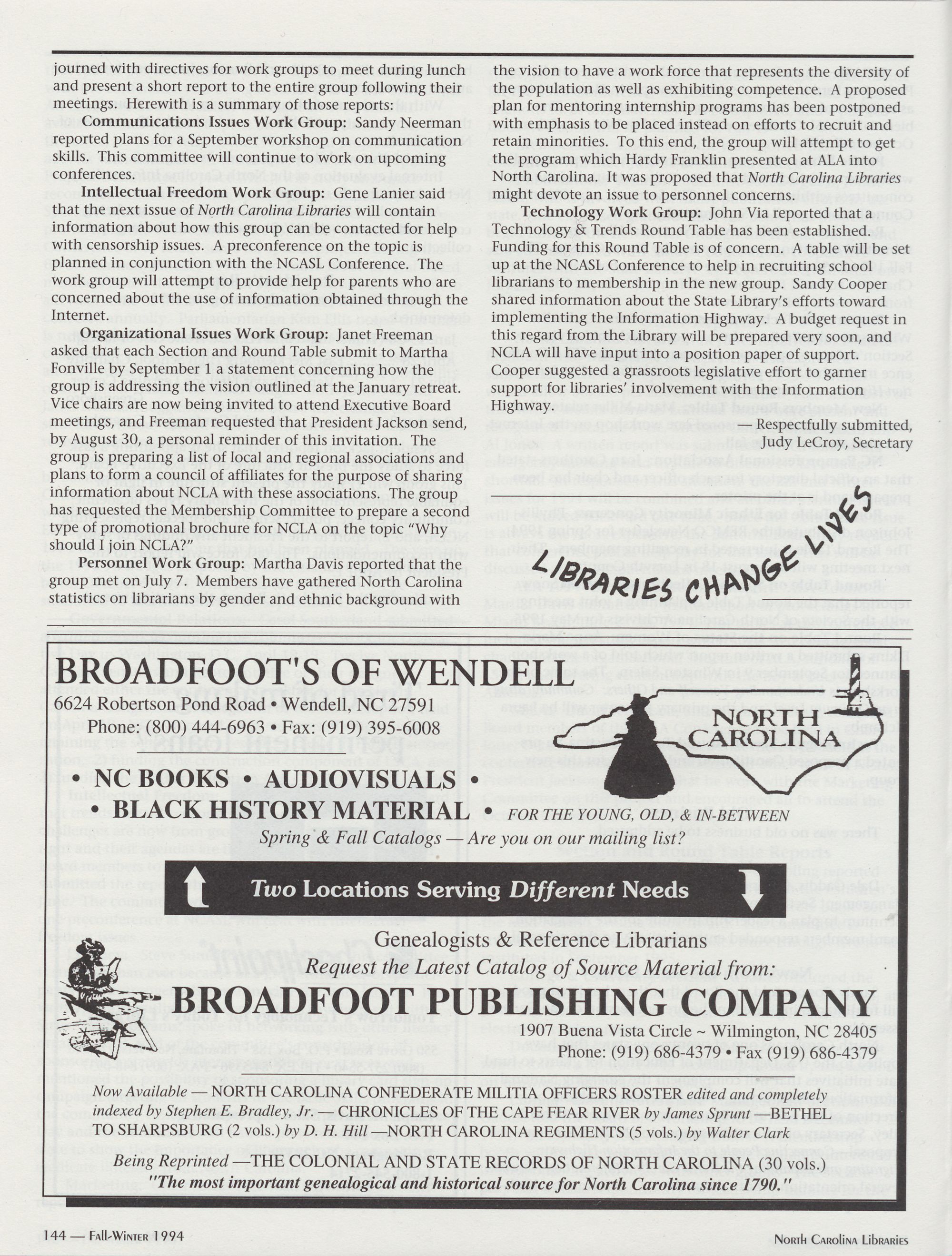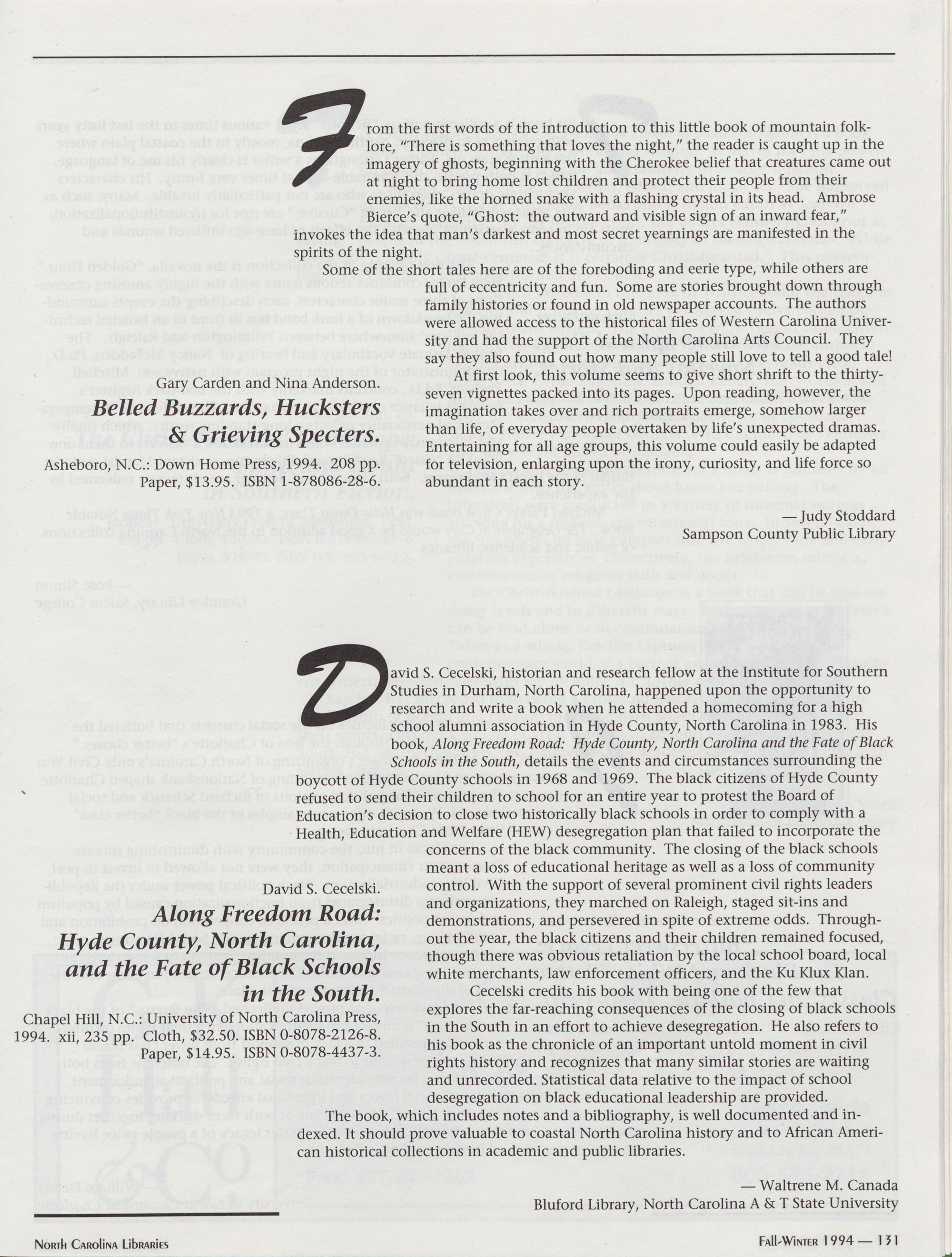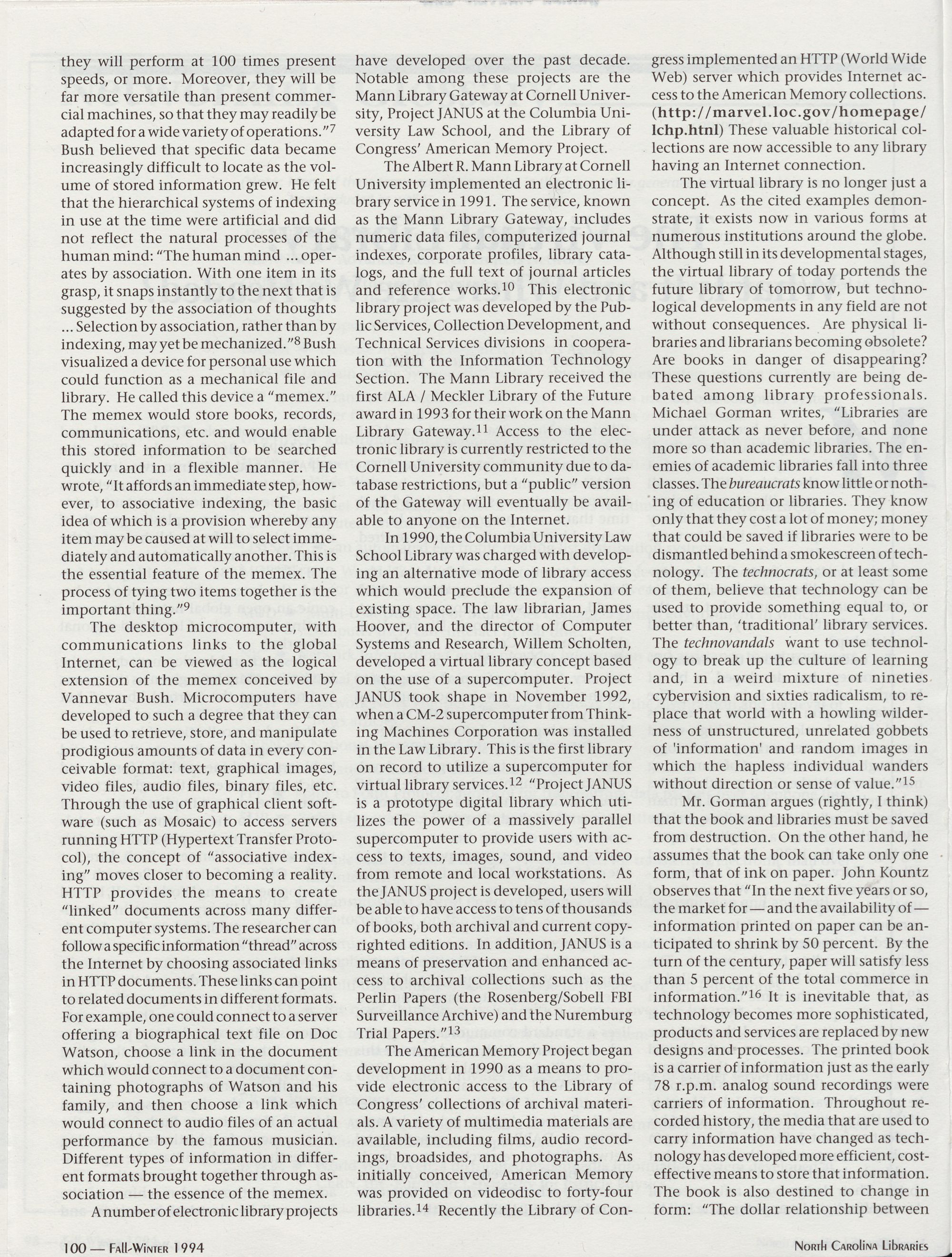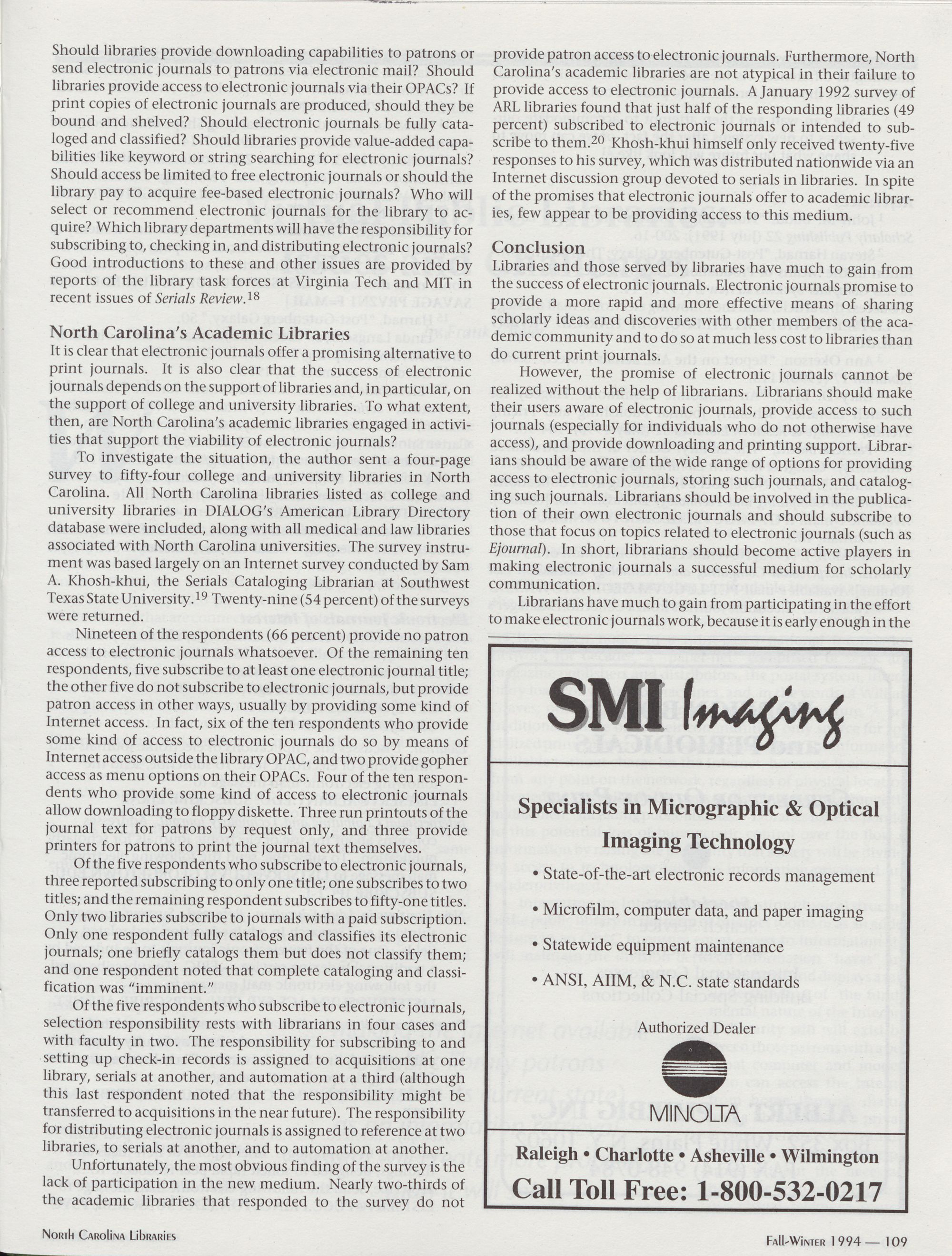 96 " Fall-Winter 1994 North Carolina Libraries