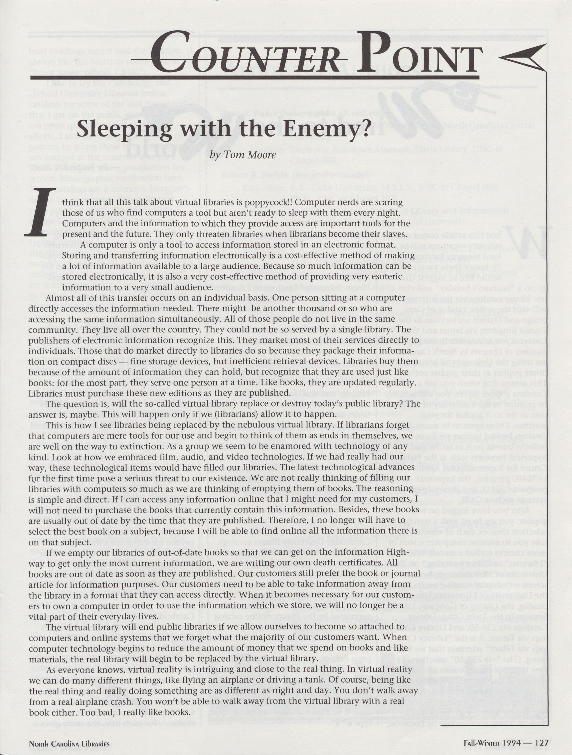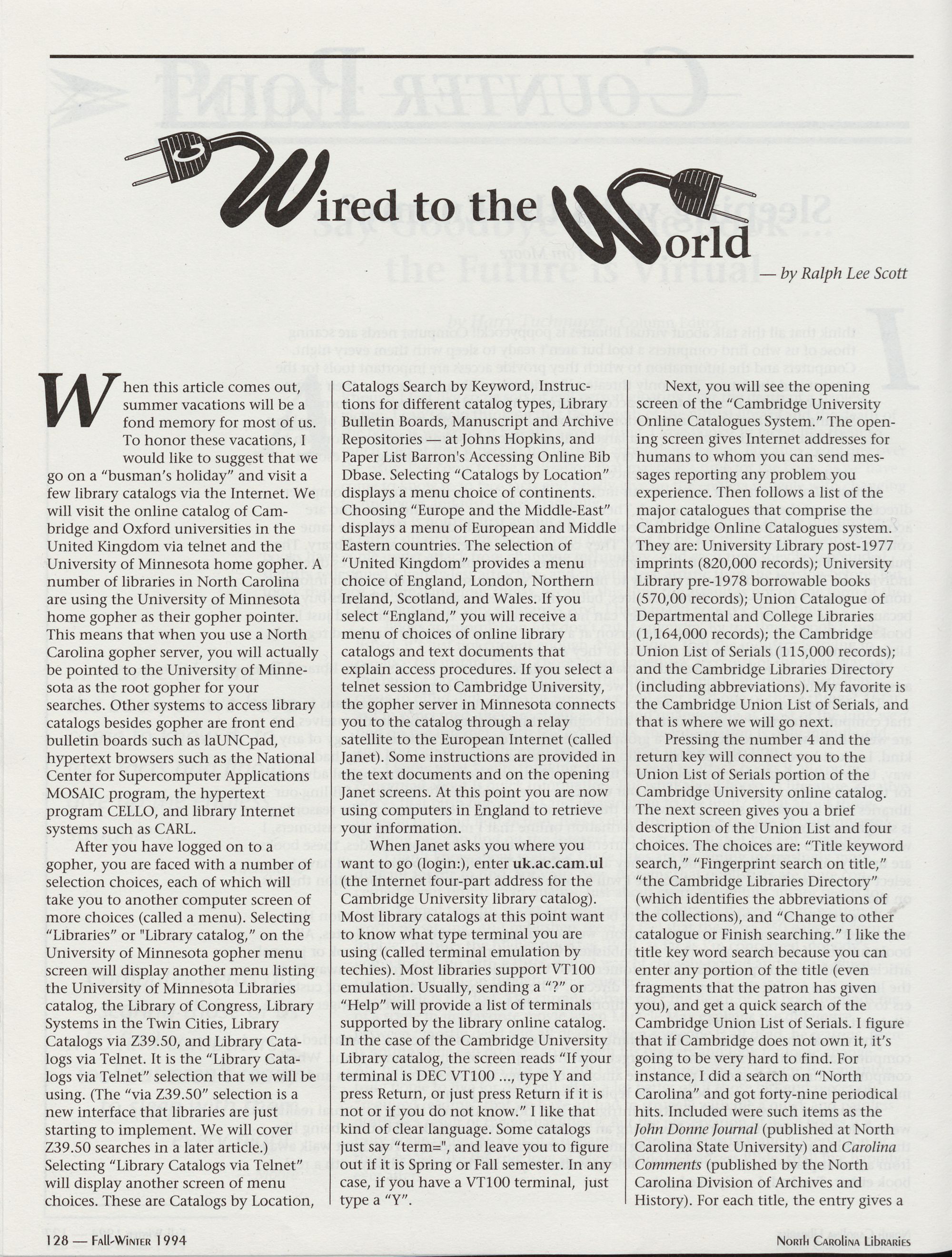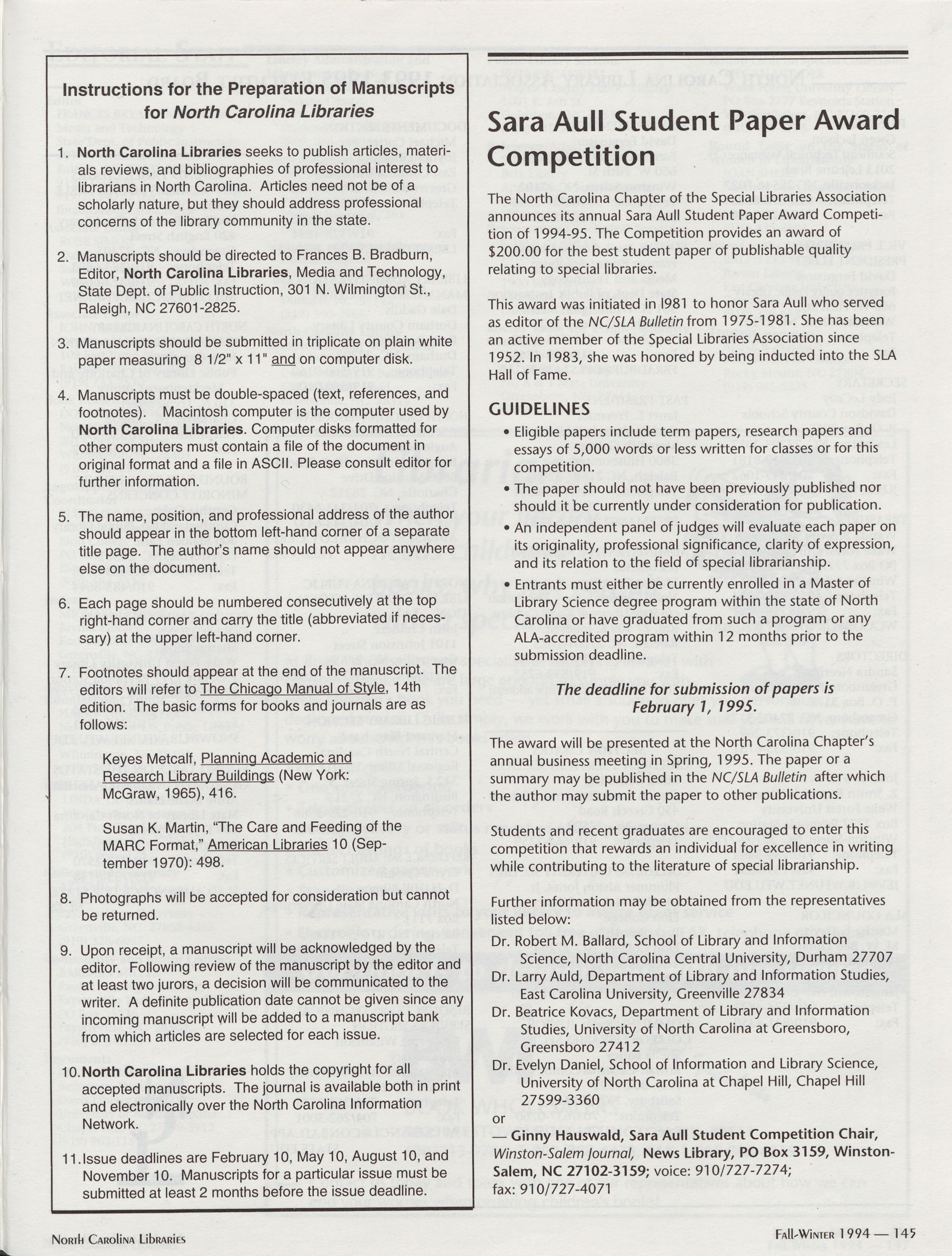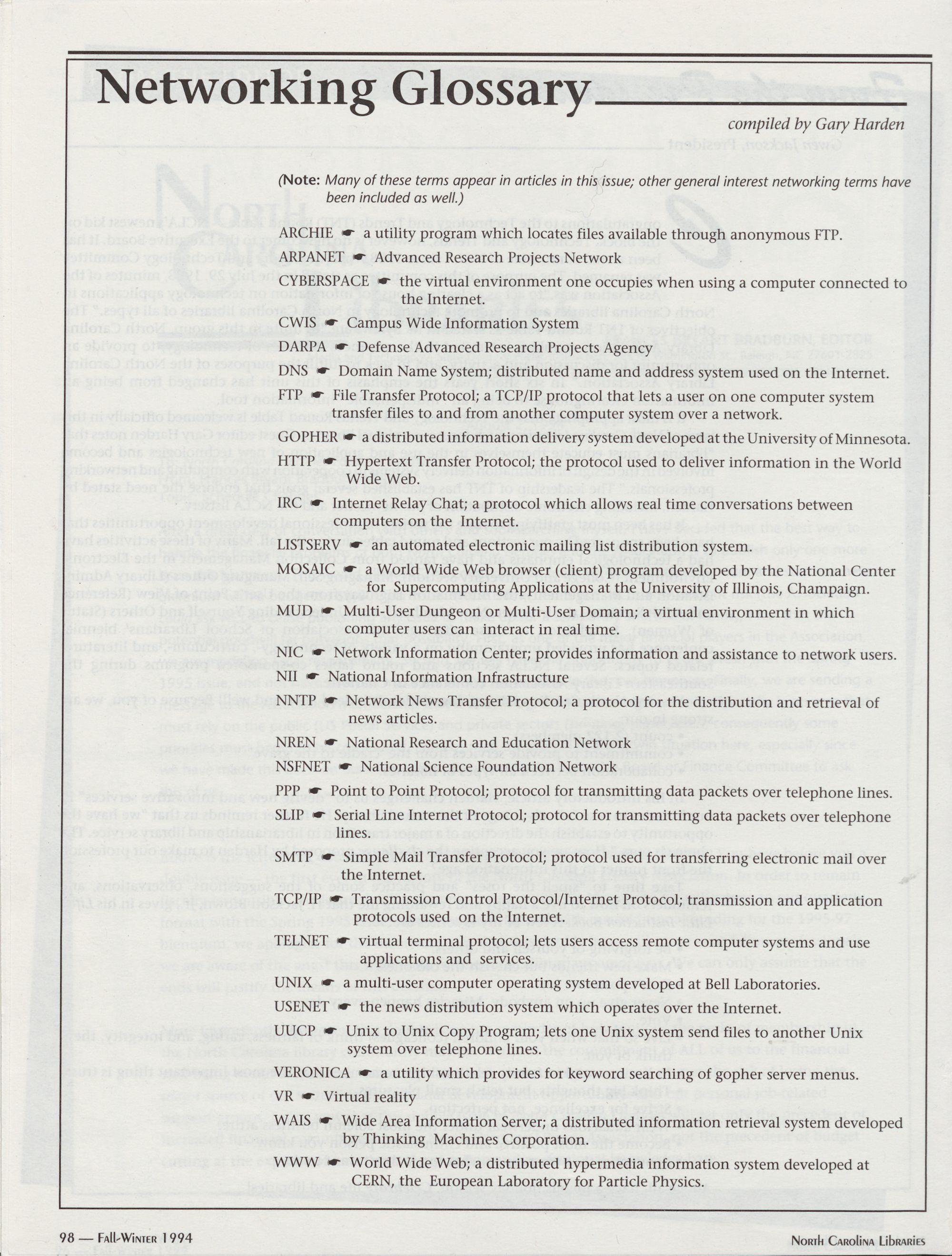 96 " Fall-Winter 1994 North Carolina Libraries