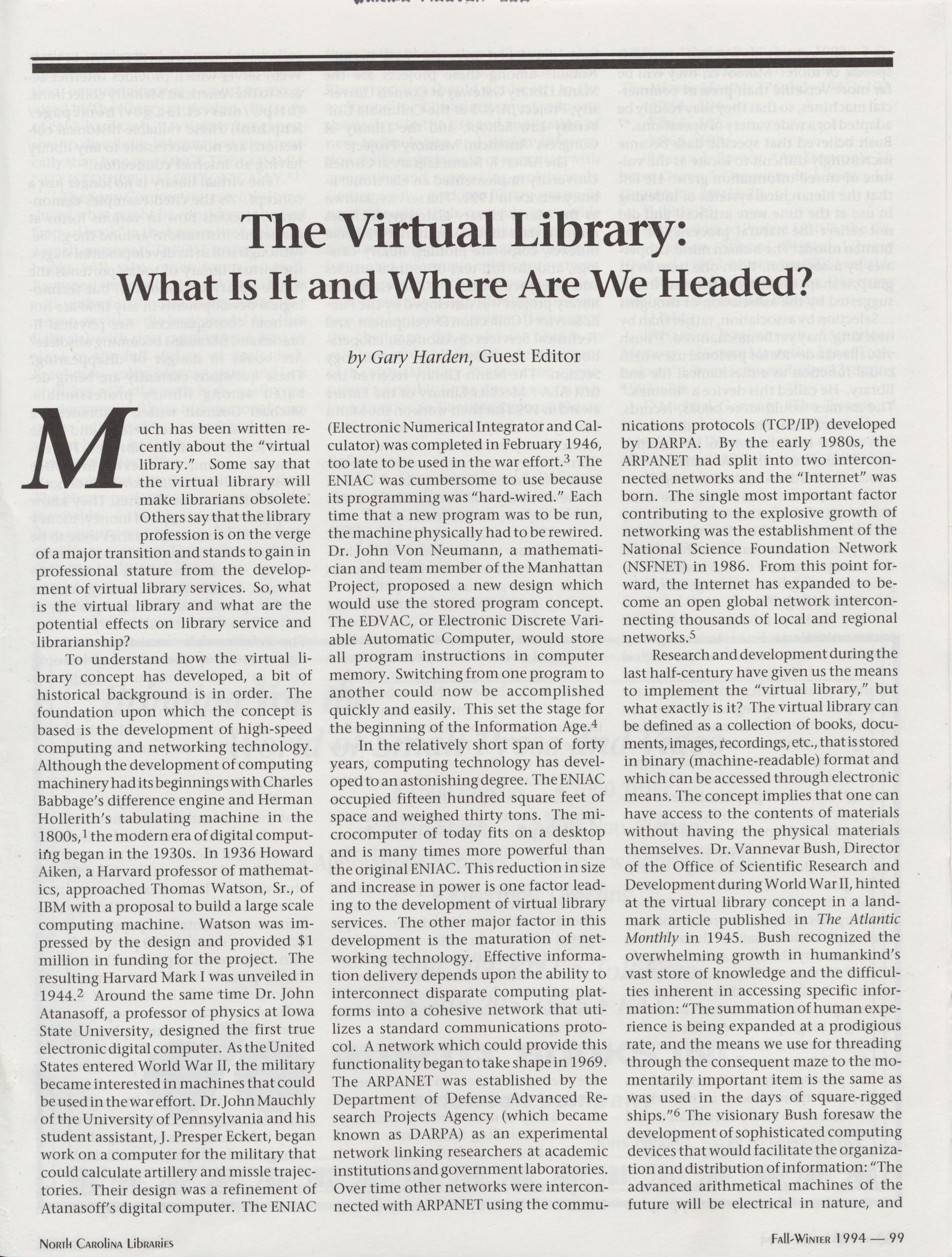 99 The Virtual Library: What Is It and Where Are We Headed?, Gary Harden