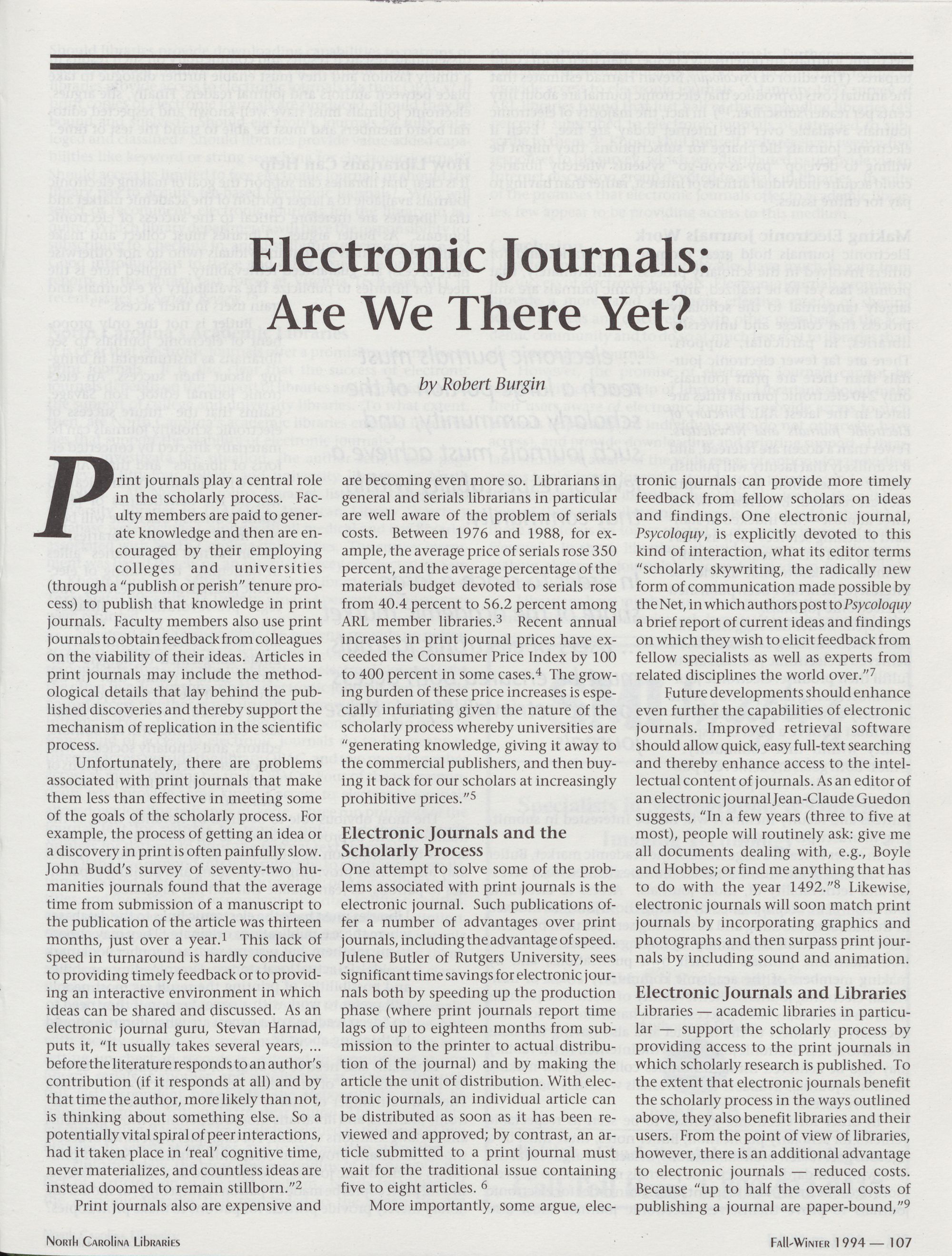 107 Electronic Journals: Are We There Yet?, Robert Burgin