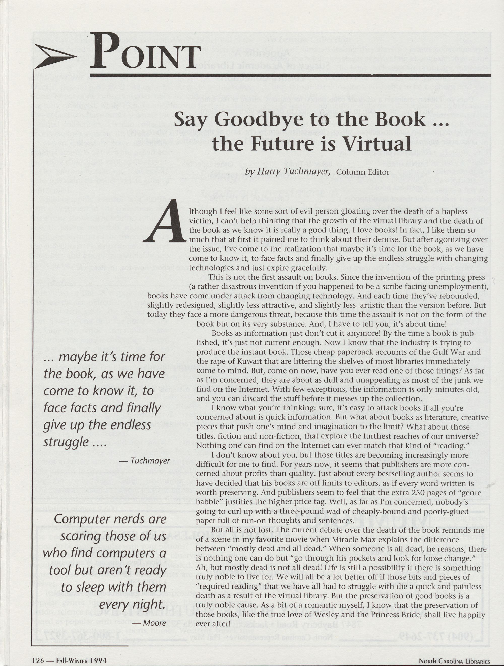 126 Point: Say Goodbye to the Book ... the Future Is Virtual, Harry Tuchmayer