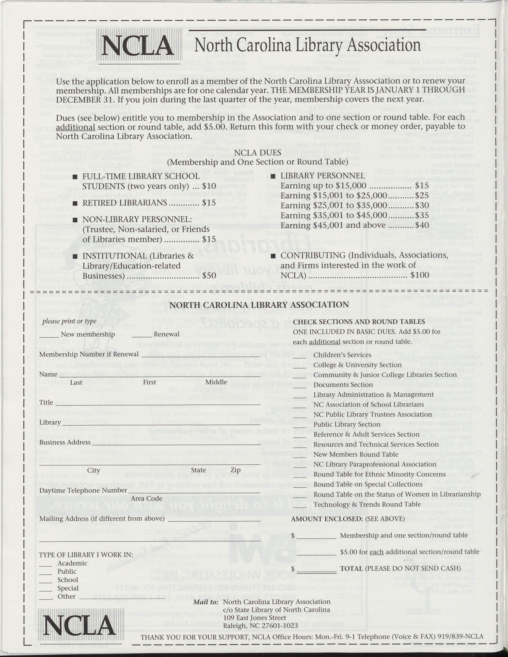 Carolina Library Association. Membership dues include a subscription to North Carolina