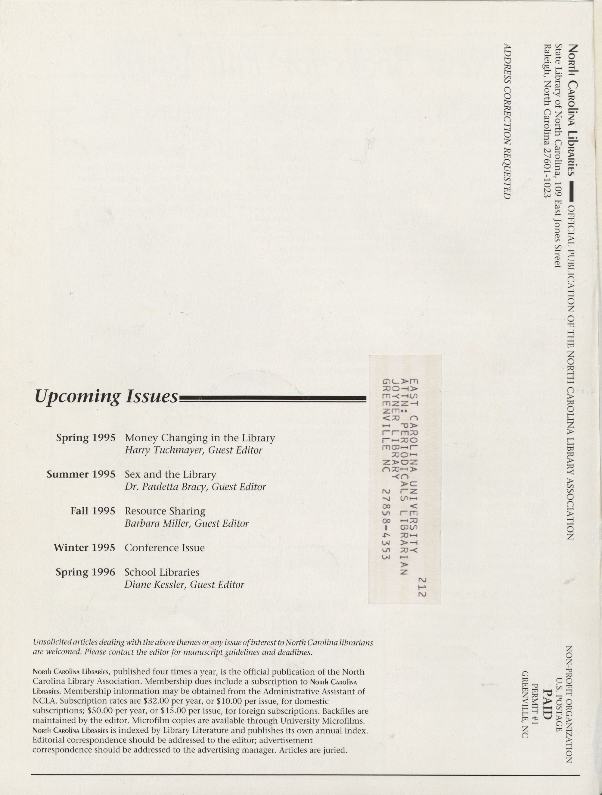 double issue " the first ever in the history of the North Carolina Library Association. In order to remain