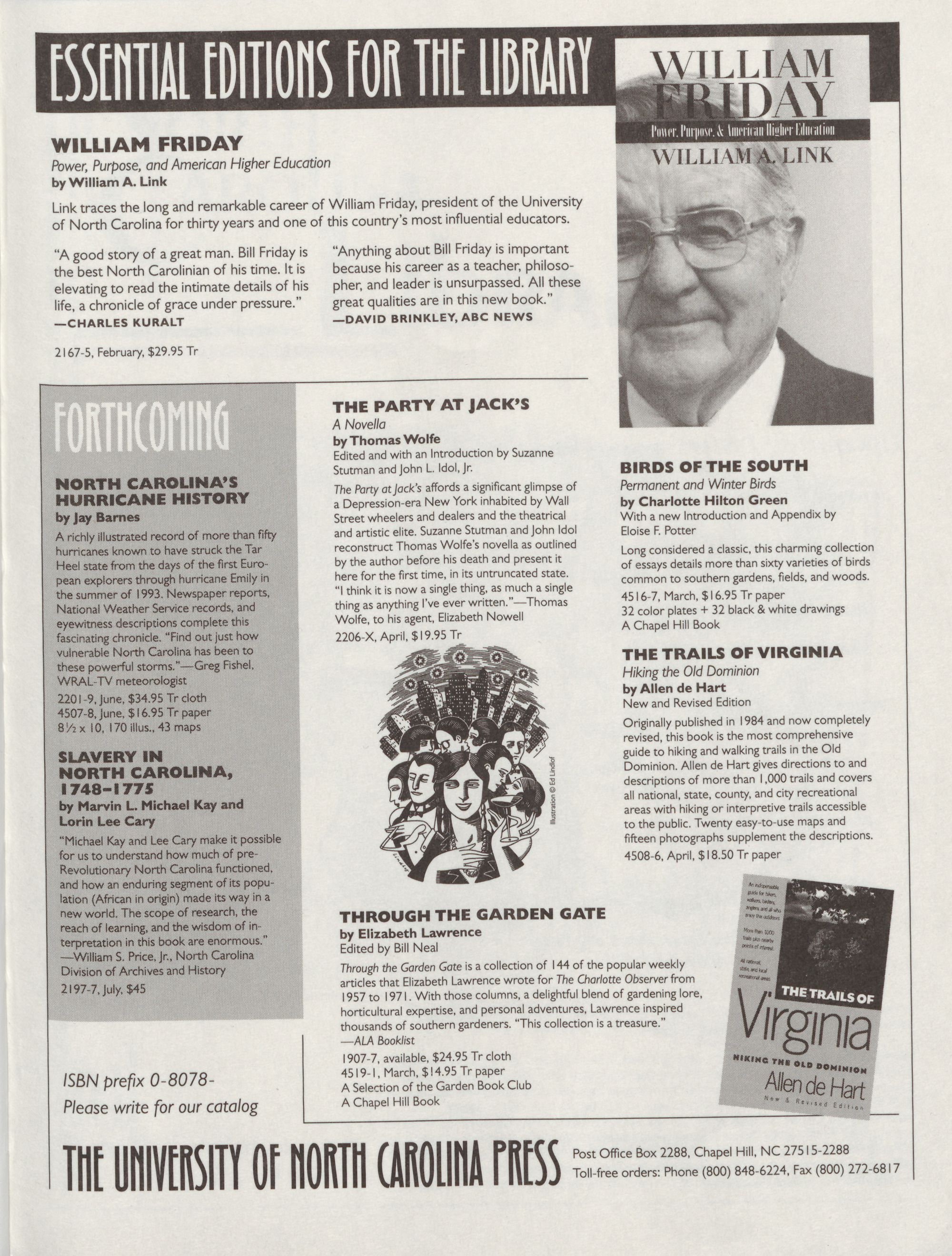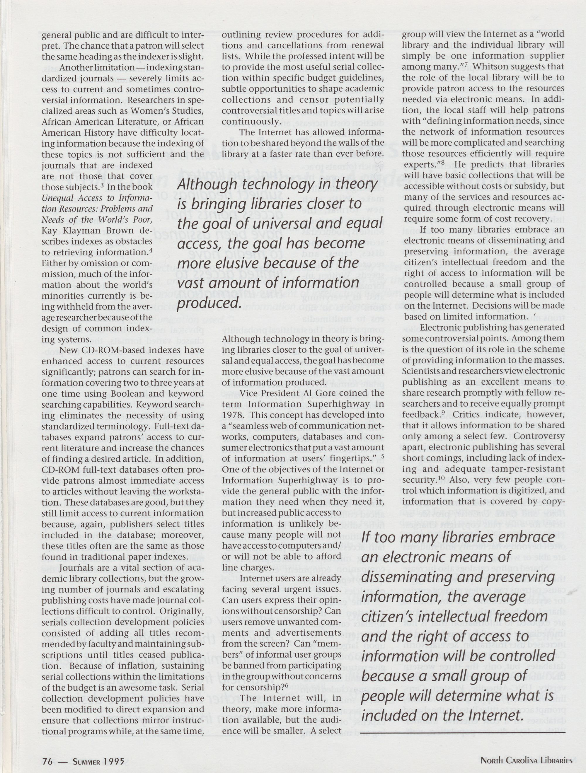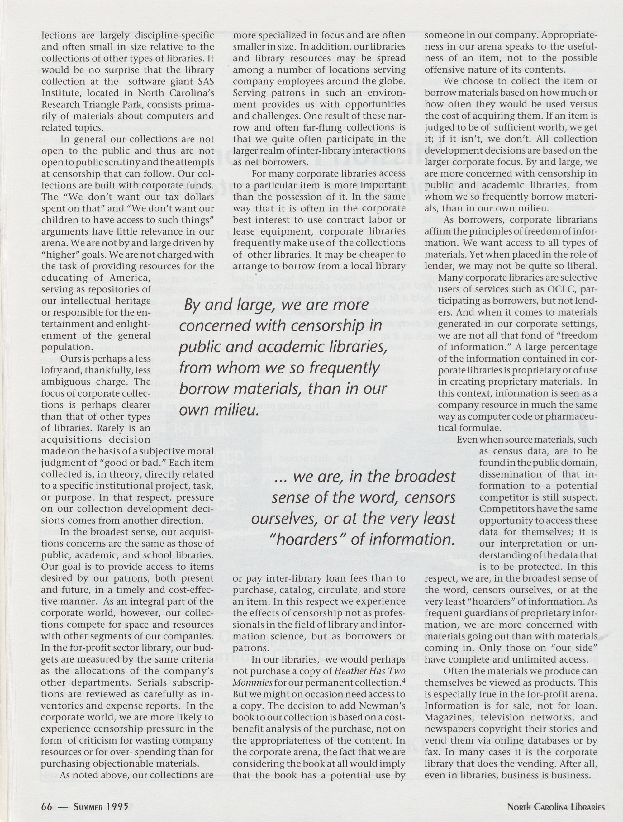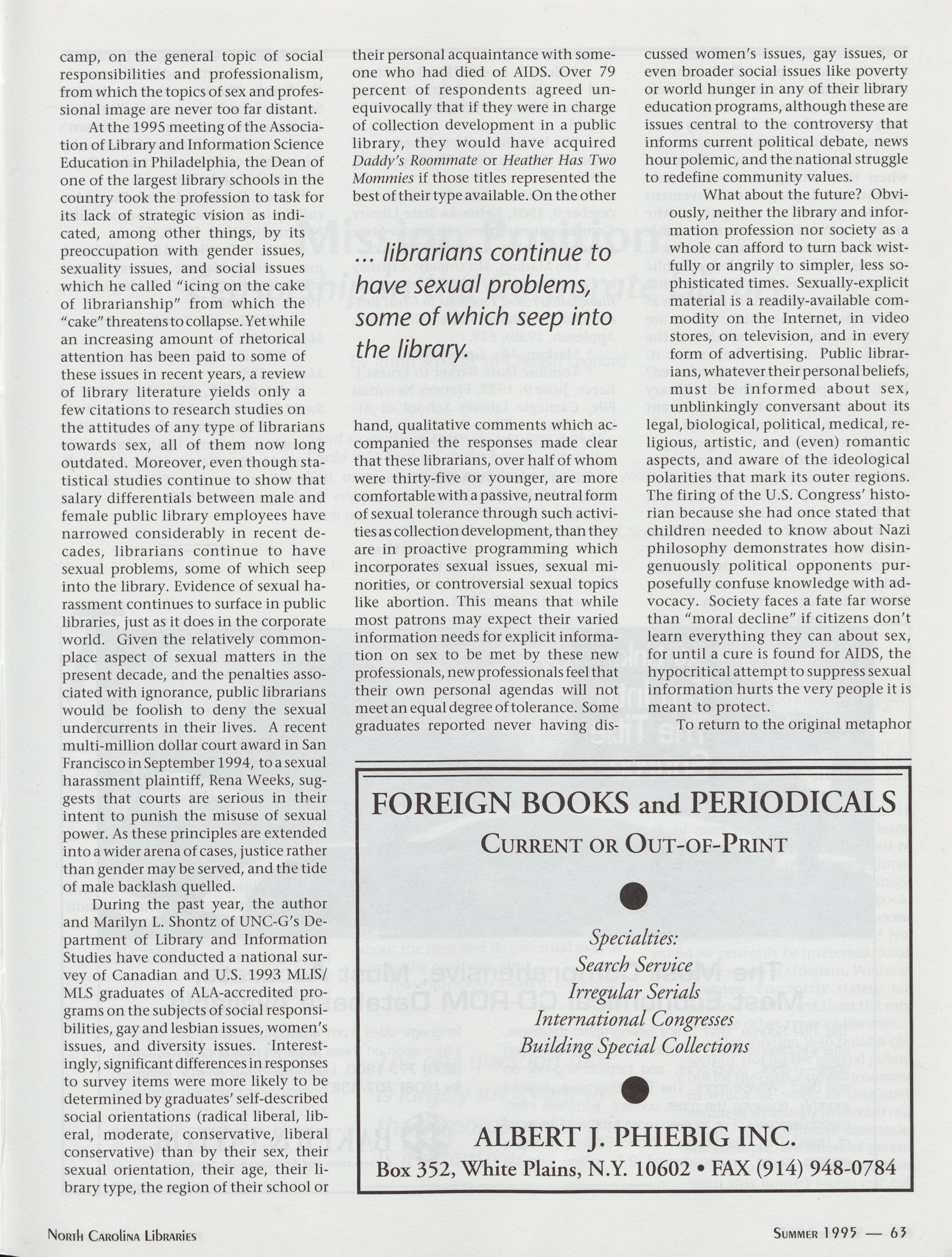 Quality Books, 67; North Carolina Libraries is electronically produced. Art direction and design by Pat Weathersbee of TeamMedia,