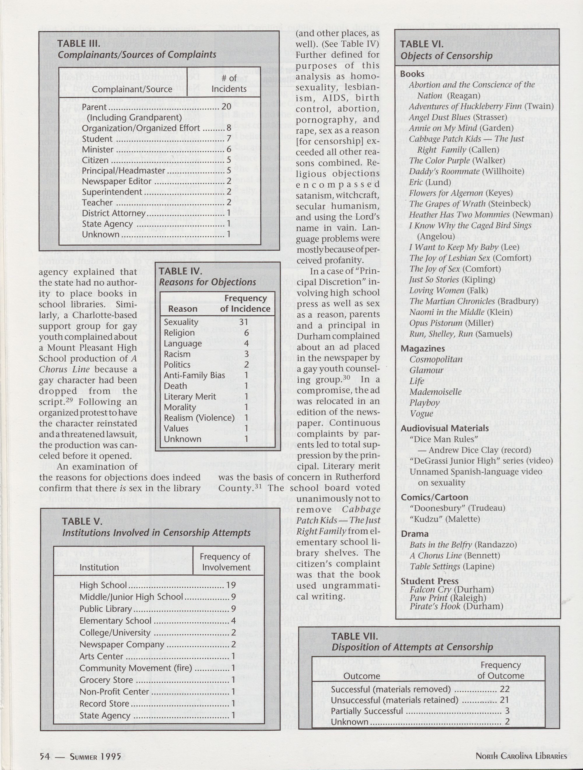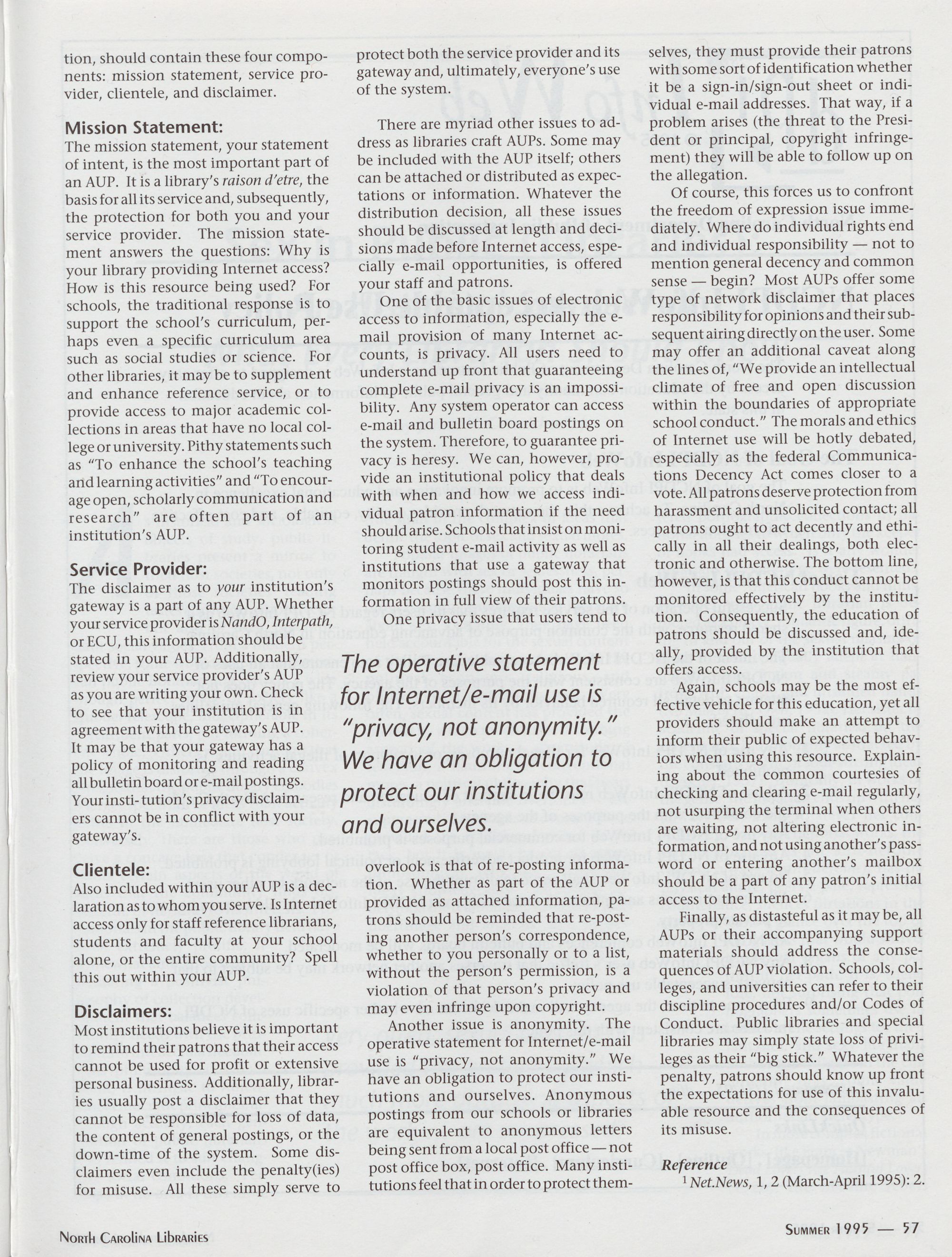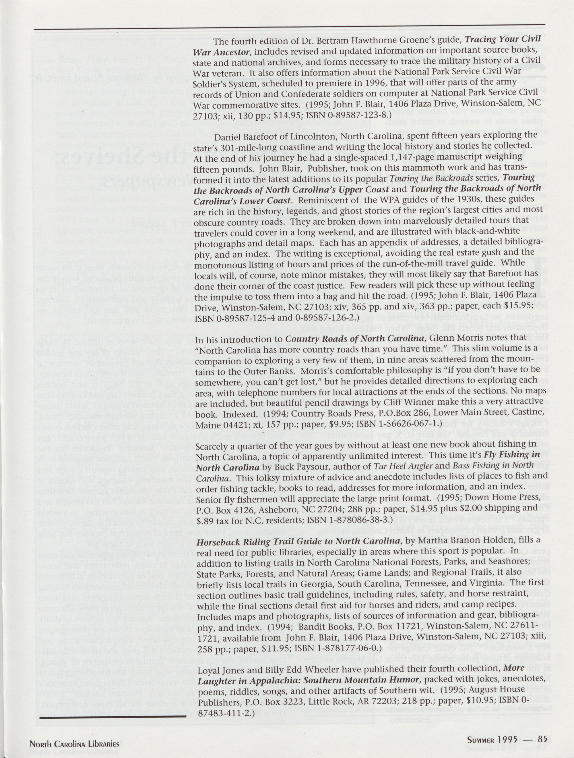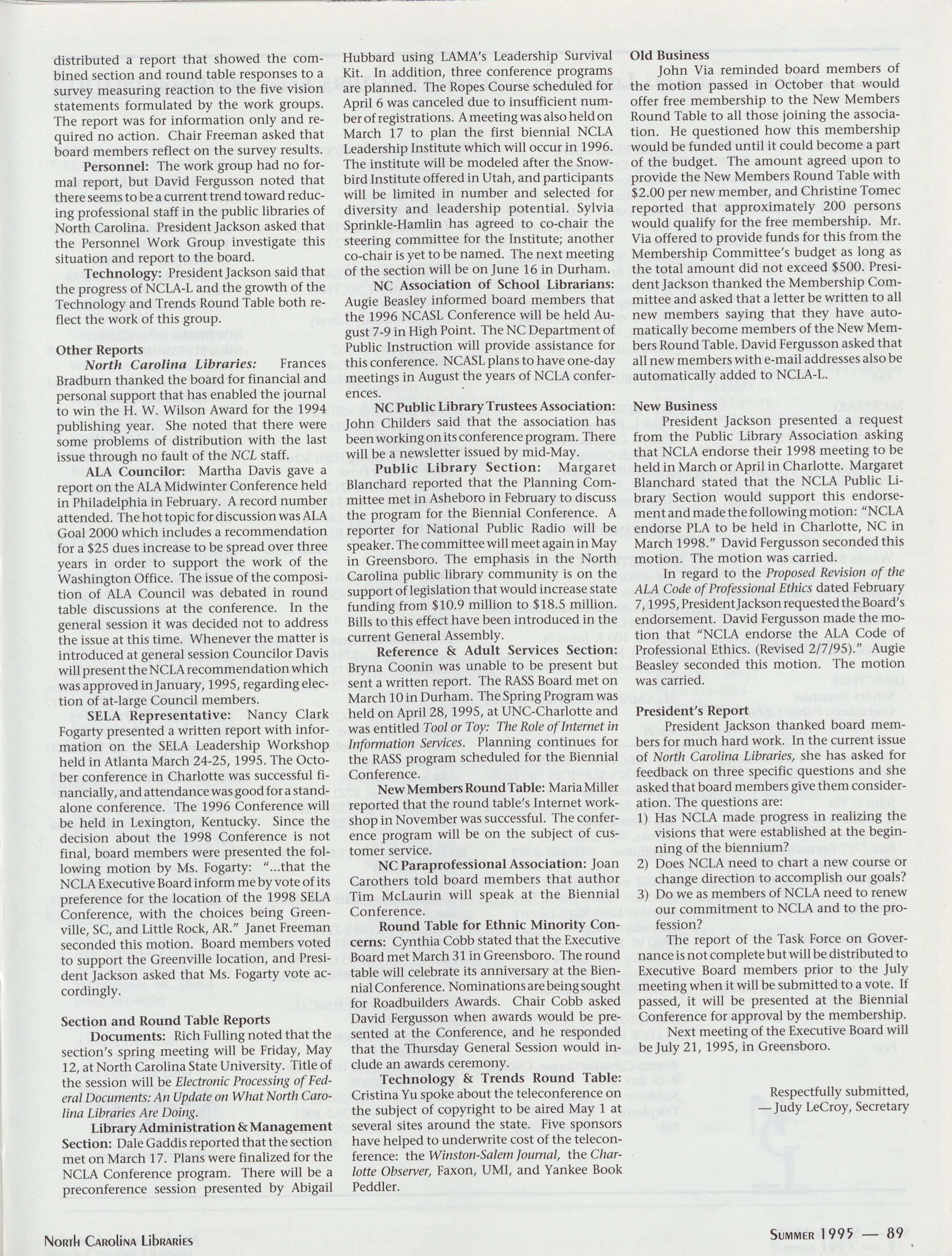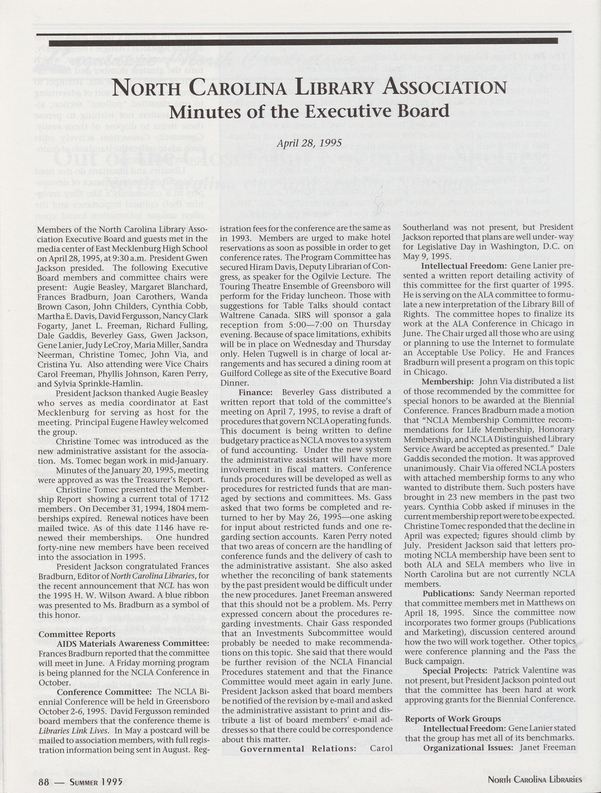 North Carolina Libraries has been awarded the 1995 H. W. Wilson Award!