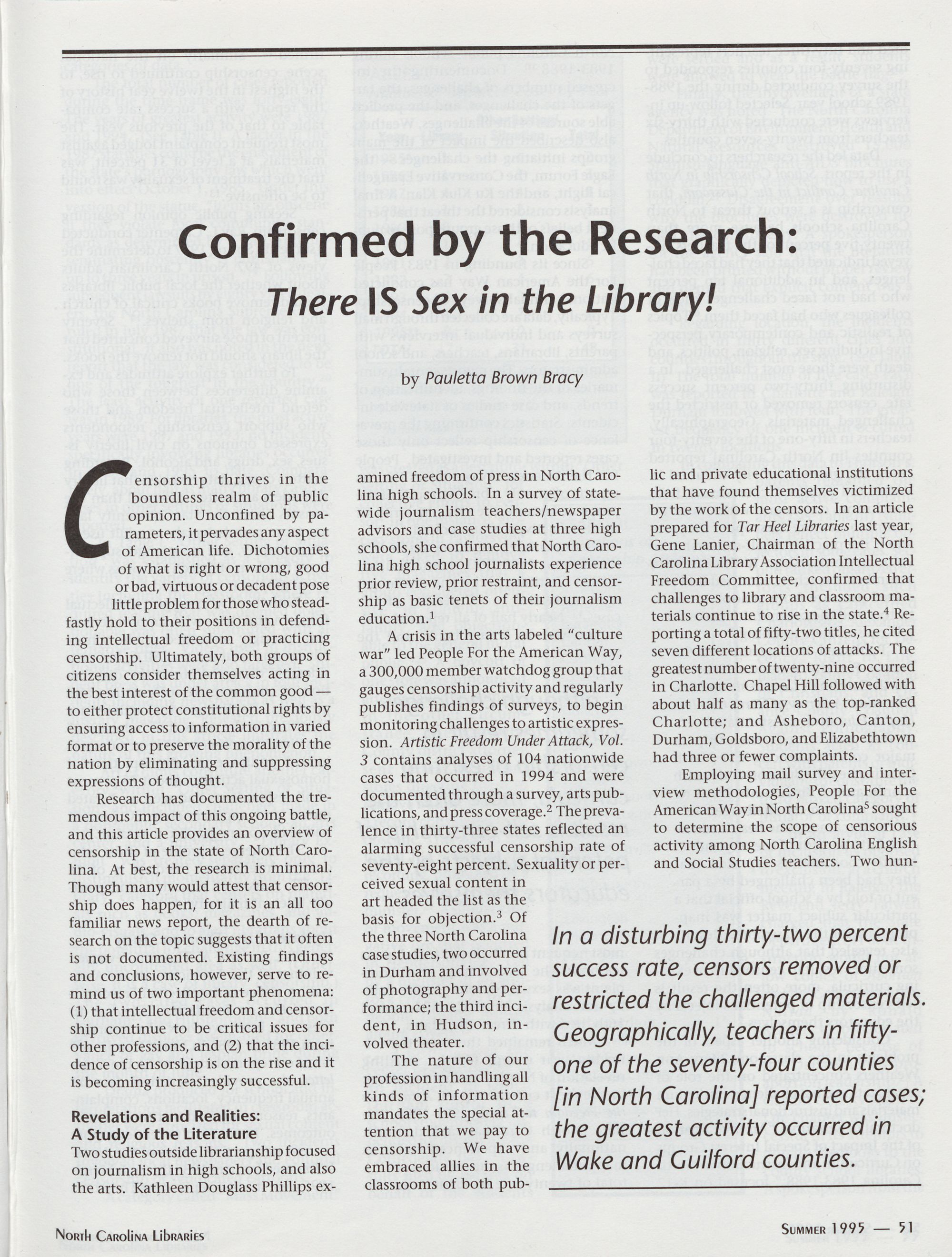Confirmed by the Research: There IS Sex in the Library!, Pauletta Brown Bracy