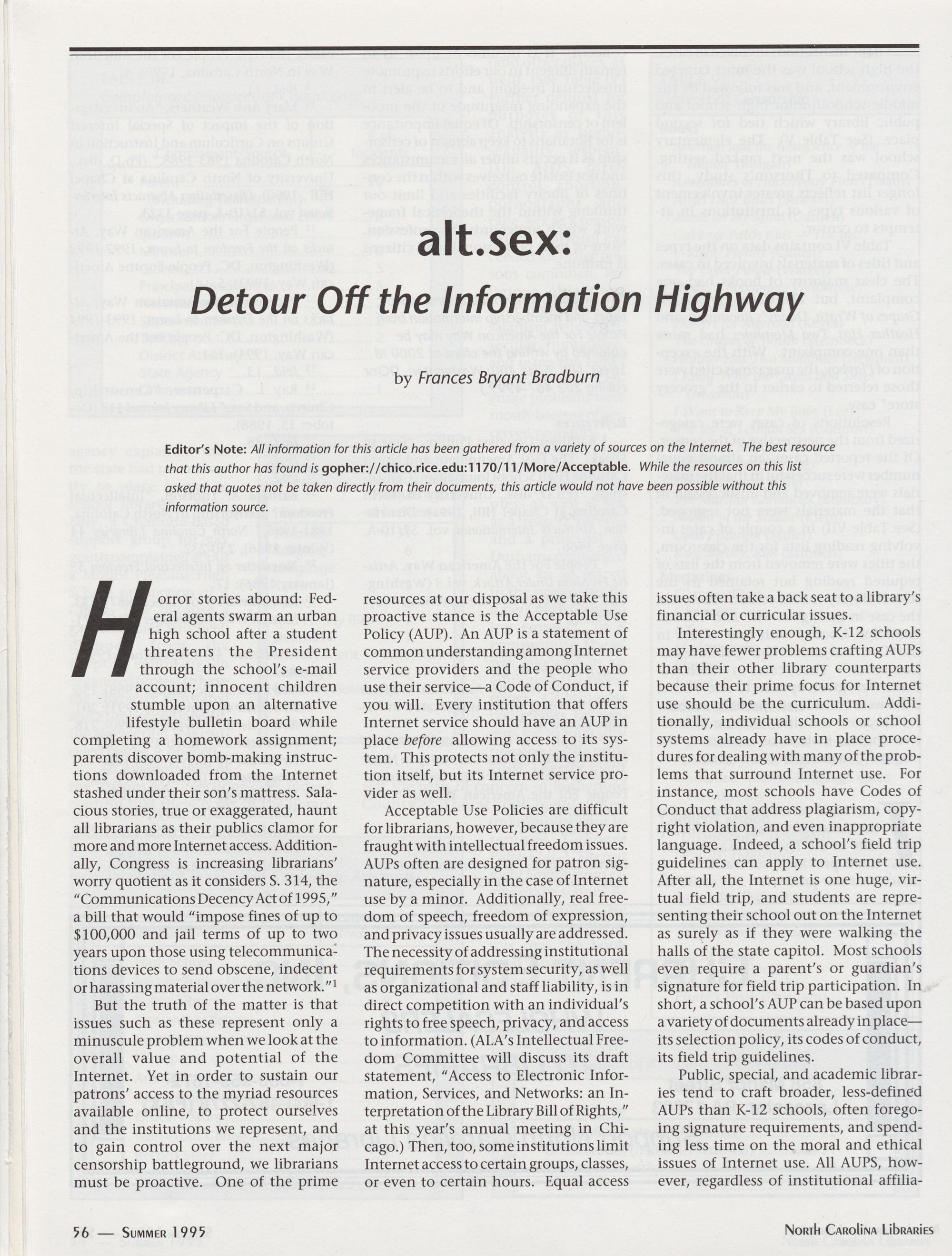 alt.sex: Detour Off the Information Highway, Frances Bryant Bradburn