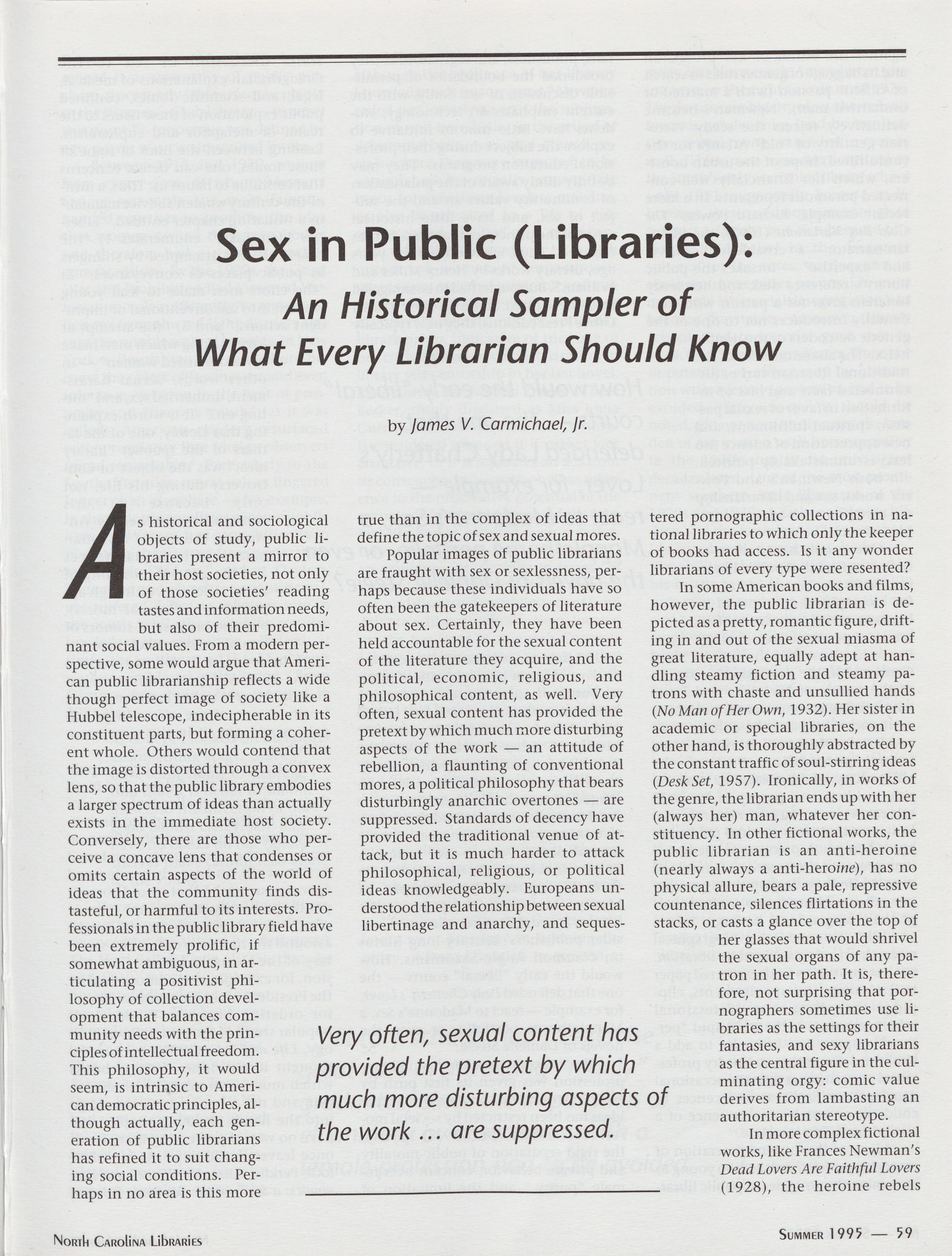 Sex in Public (Libraries): An Historic Sampler of What Every Librarian