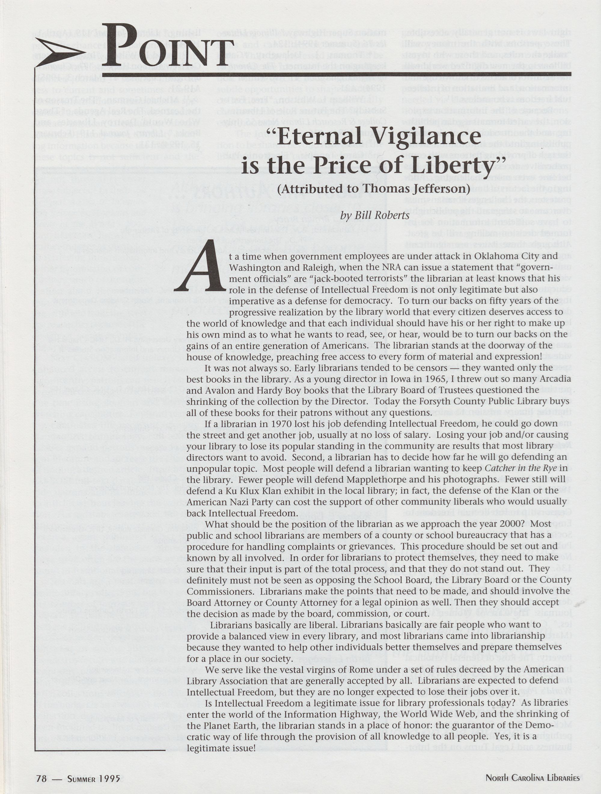 Point: Eternal Vigilance is the Price of Liberty, Bill Roberts