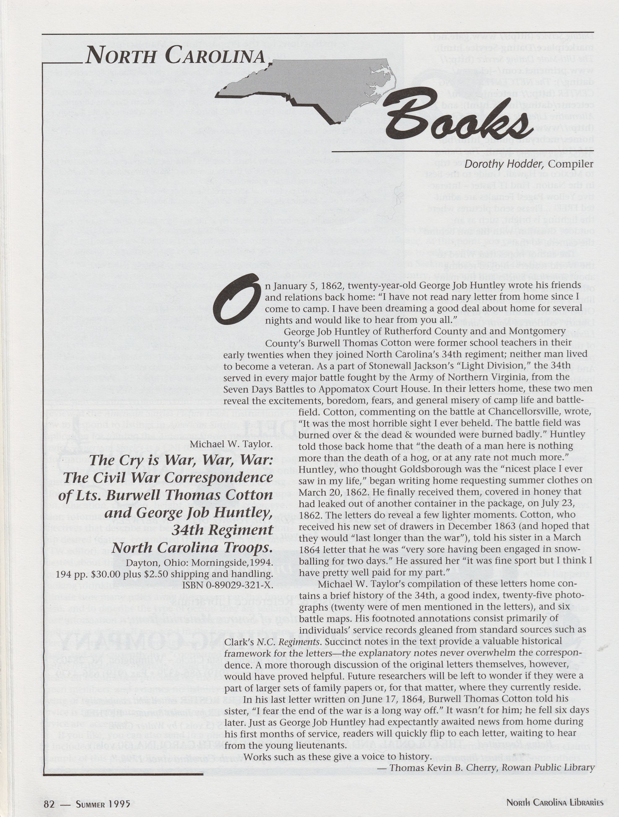 Unsolicited articles dealing with the above themes or any issue of interest to North Carolina librarians