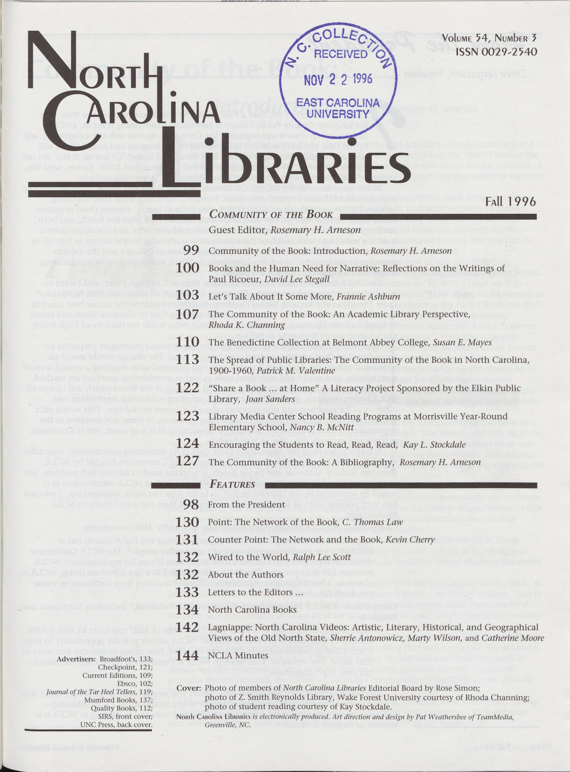 North Carolina Libraries is electronically produced. Art direction and design by Pat Weathersbee of TeamMedia,