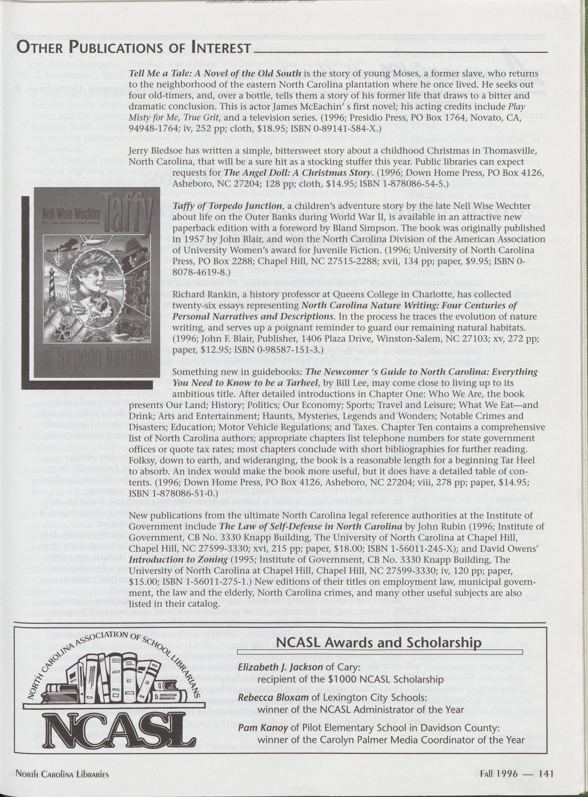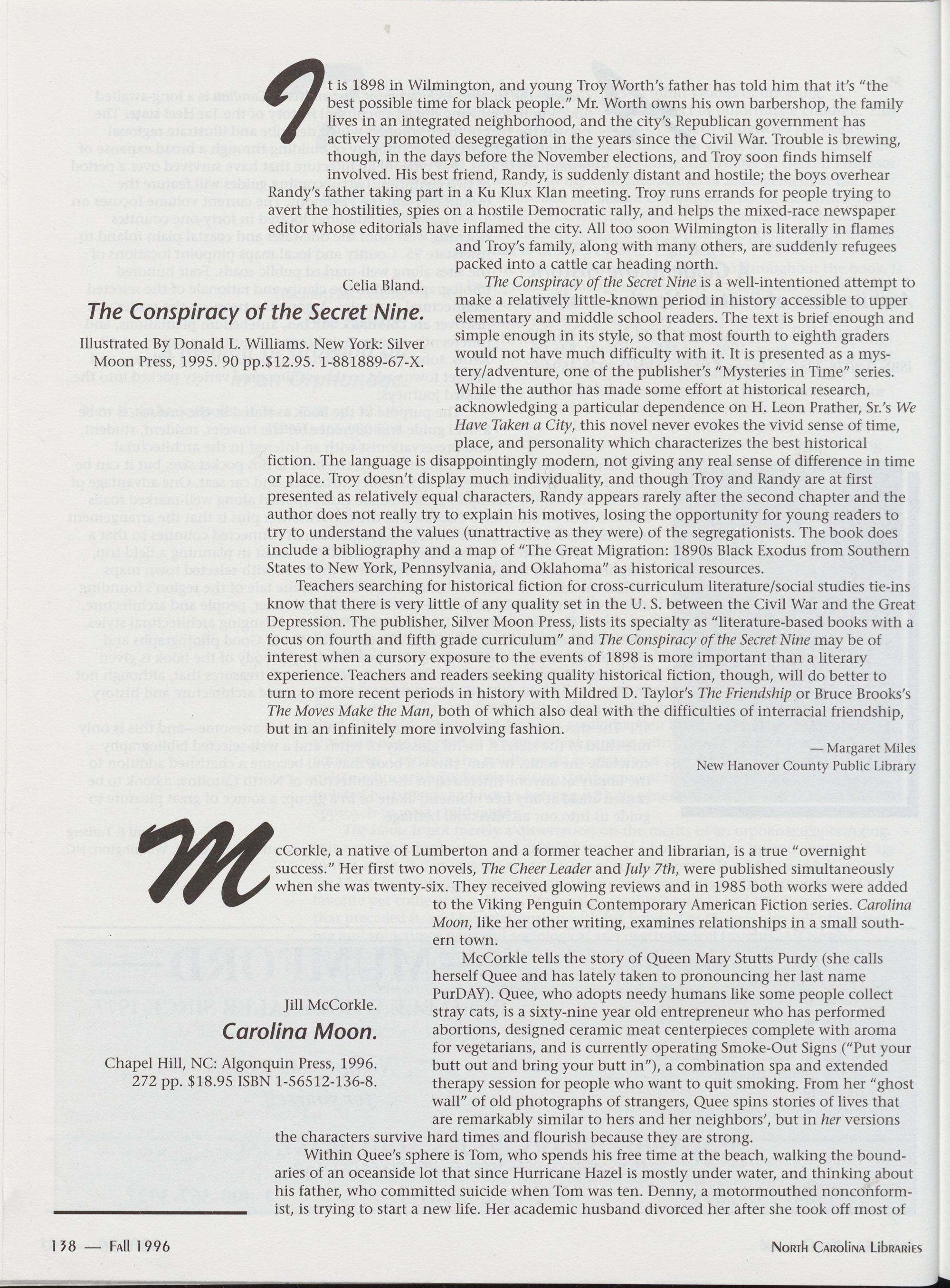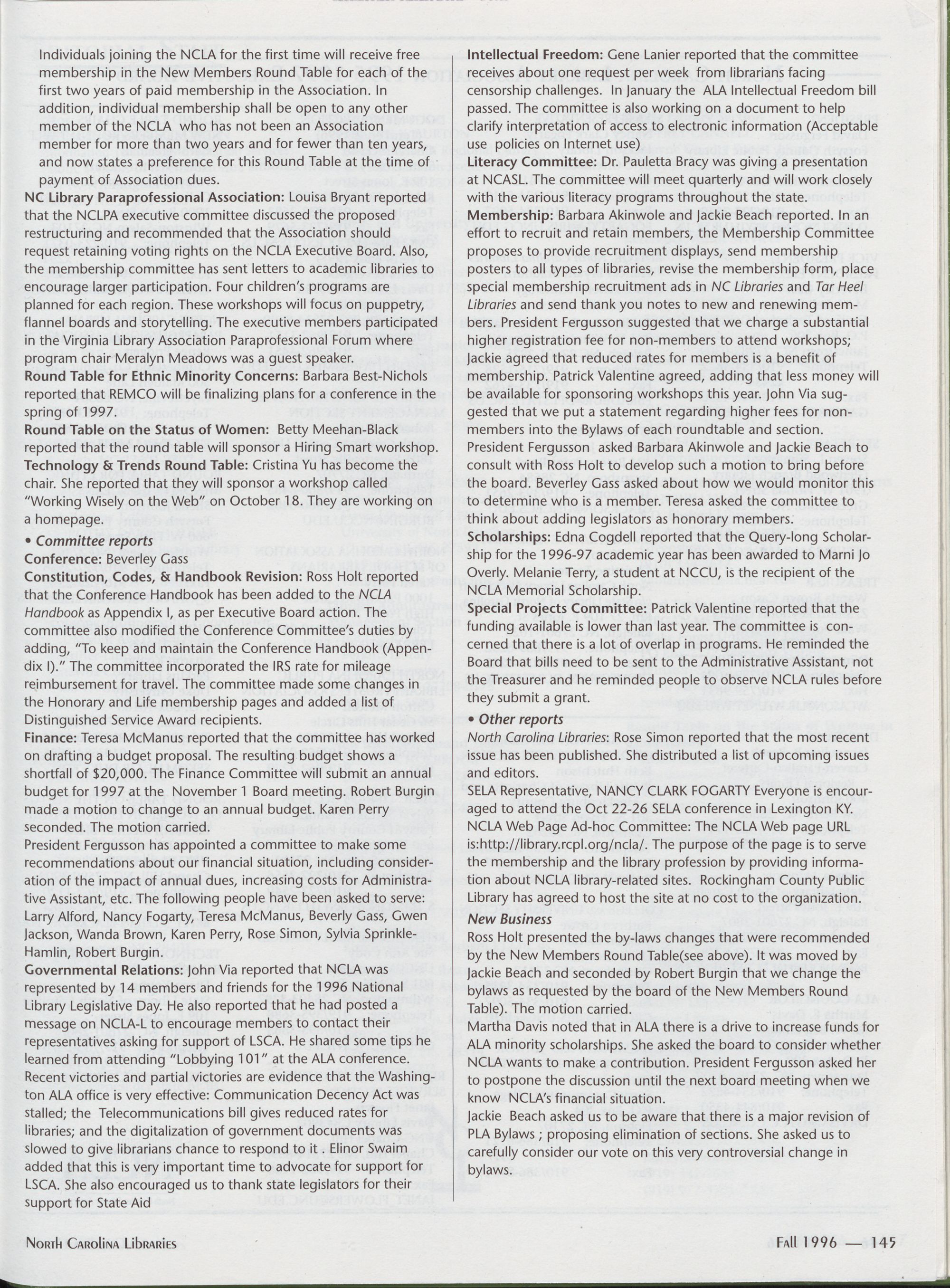 Carolina Library Association. Membership dues include a subscription to North Carolina