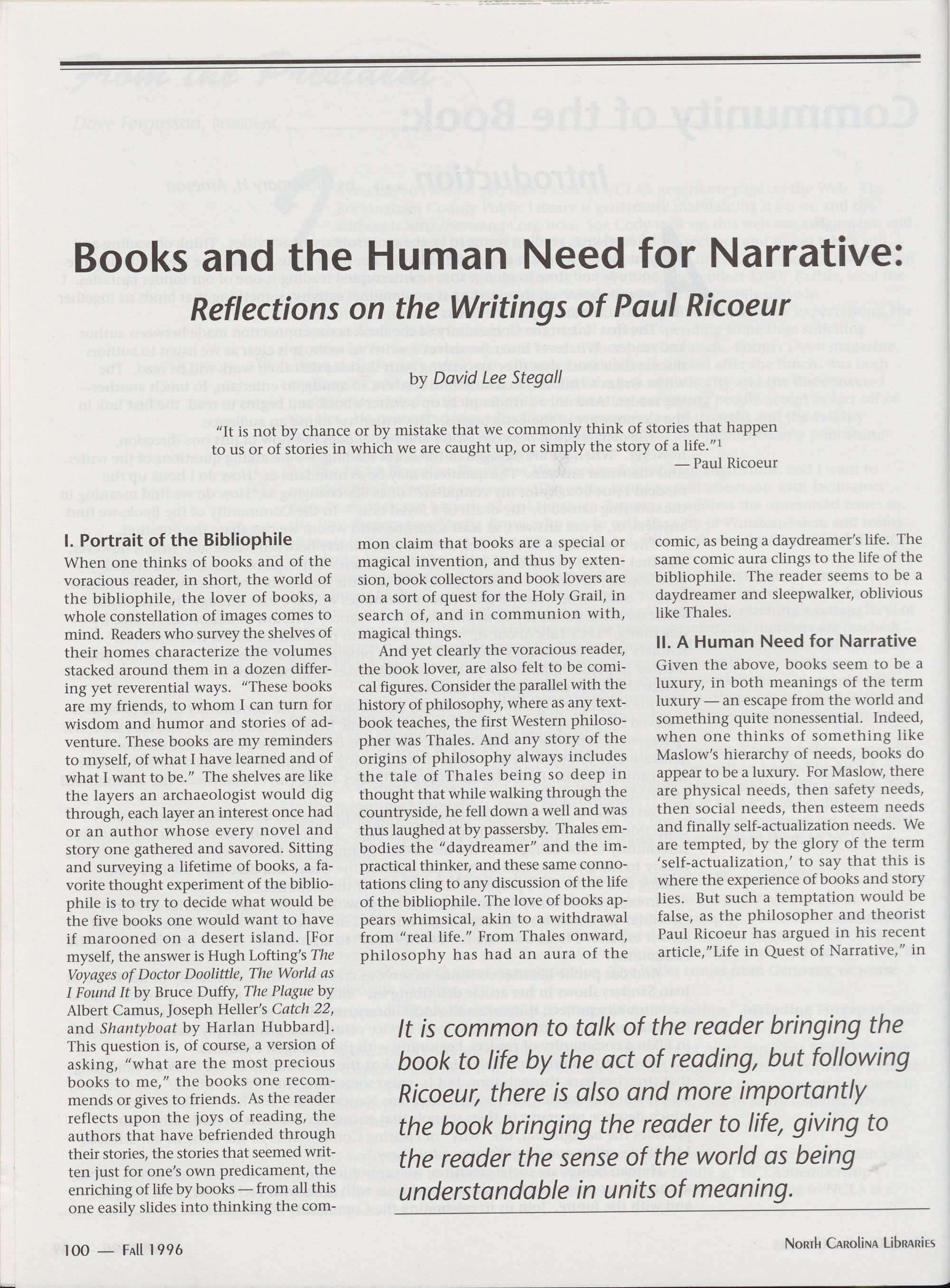 Paul Ricoeur, David Lee Stegall