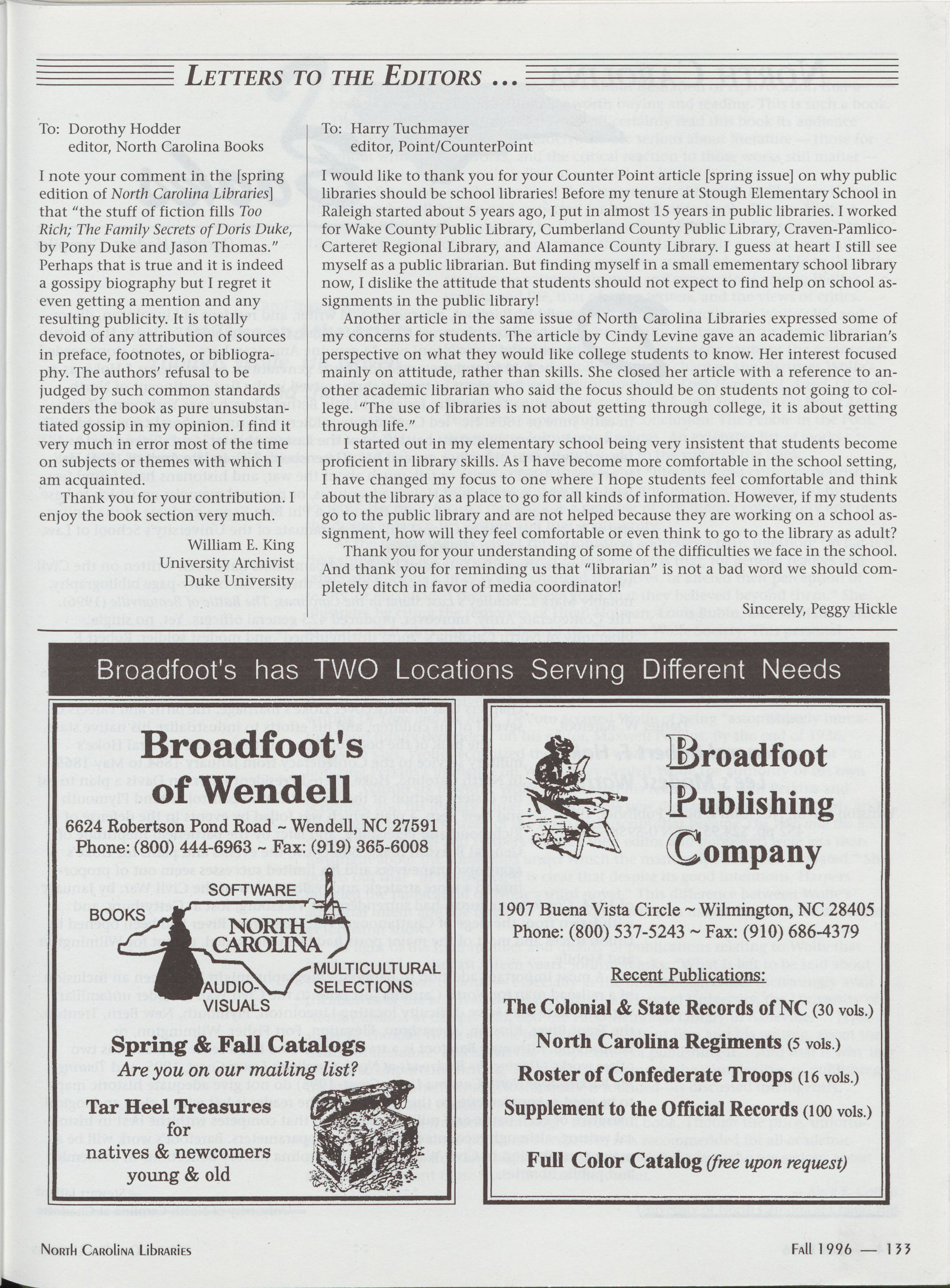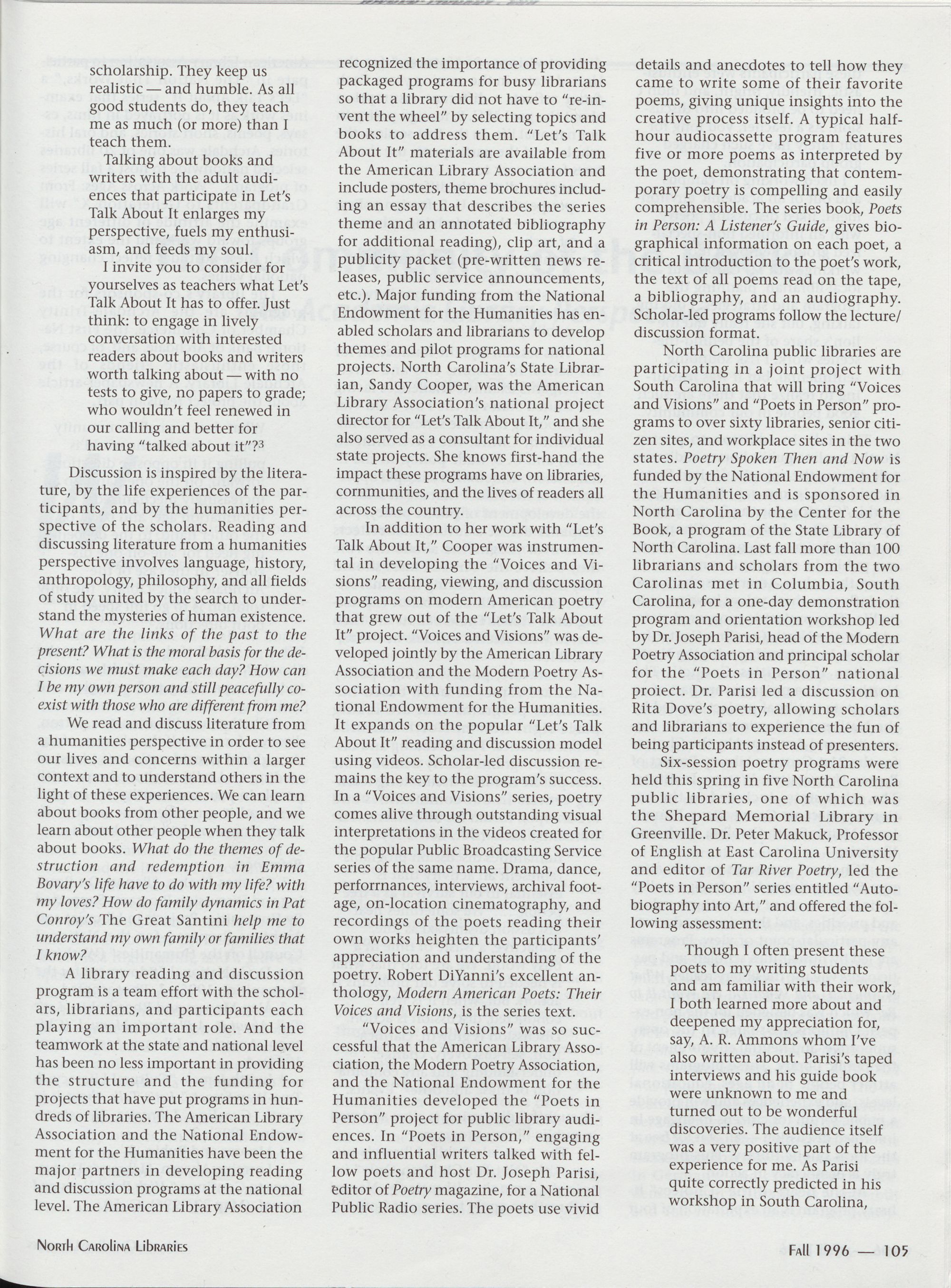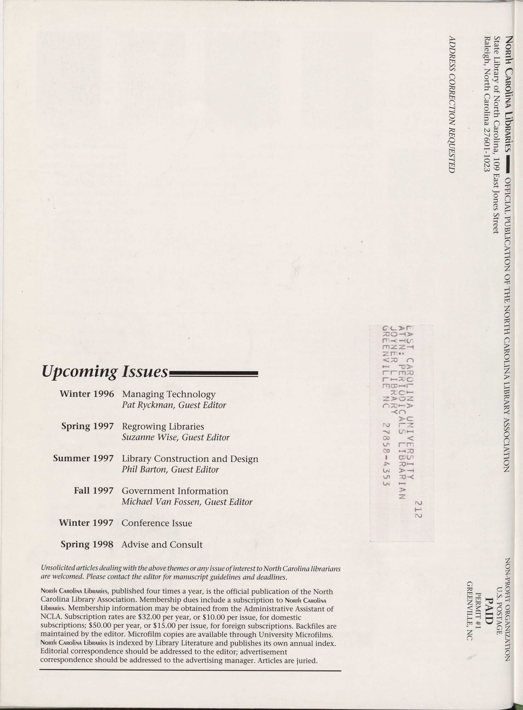 North Carolina Libraries, published four times a year, is the official publication of the North
