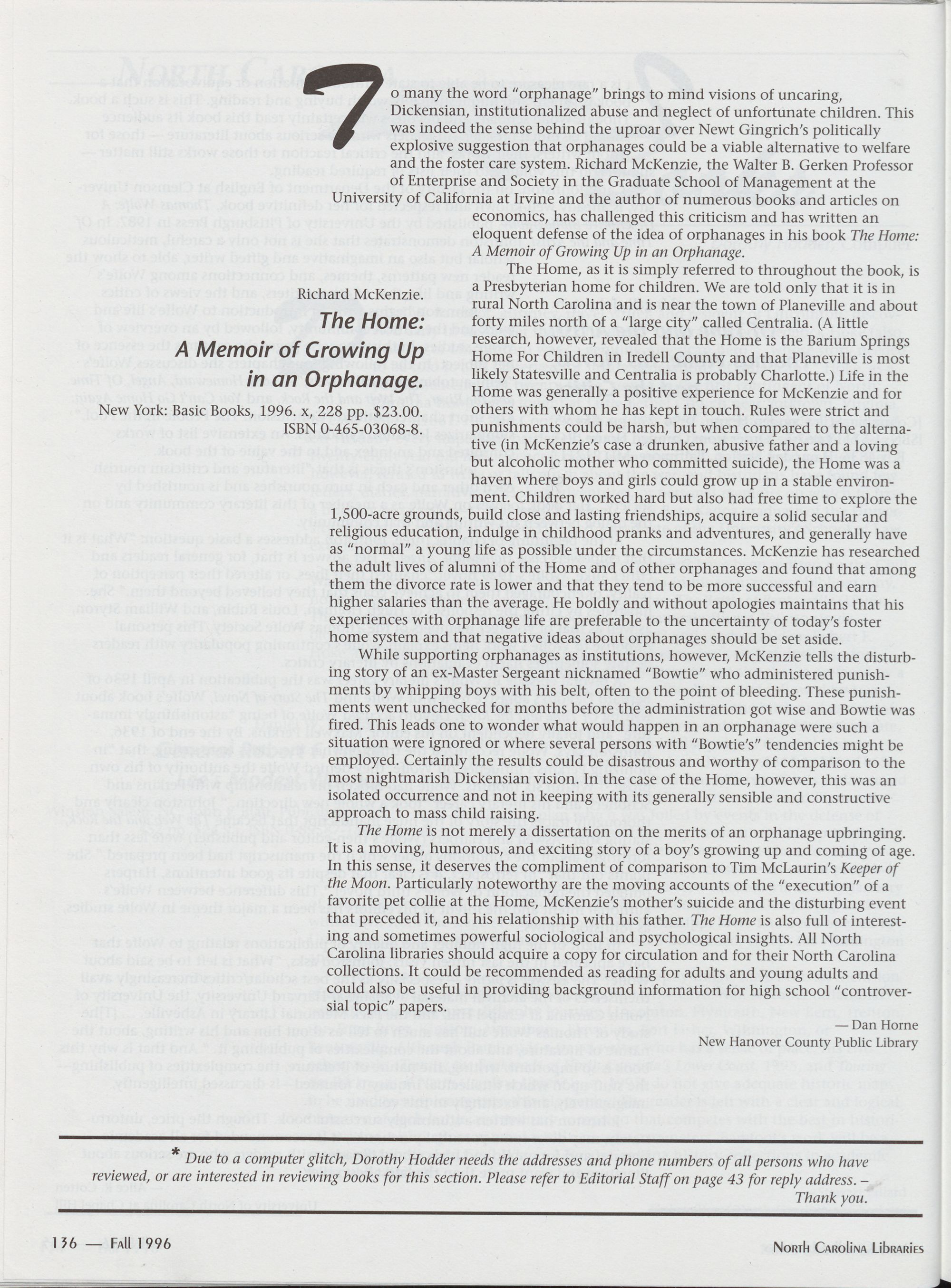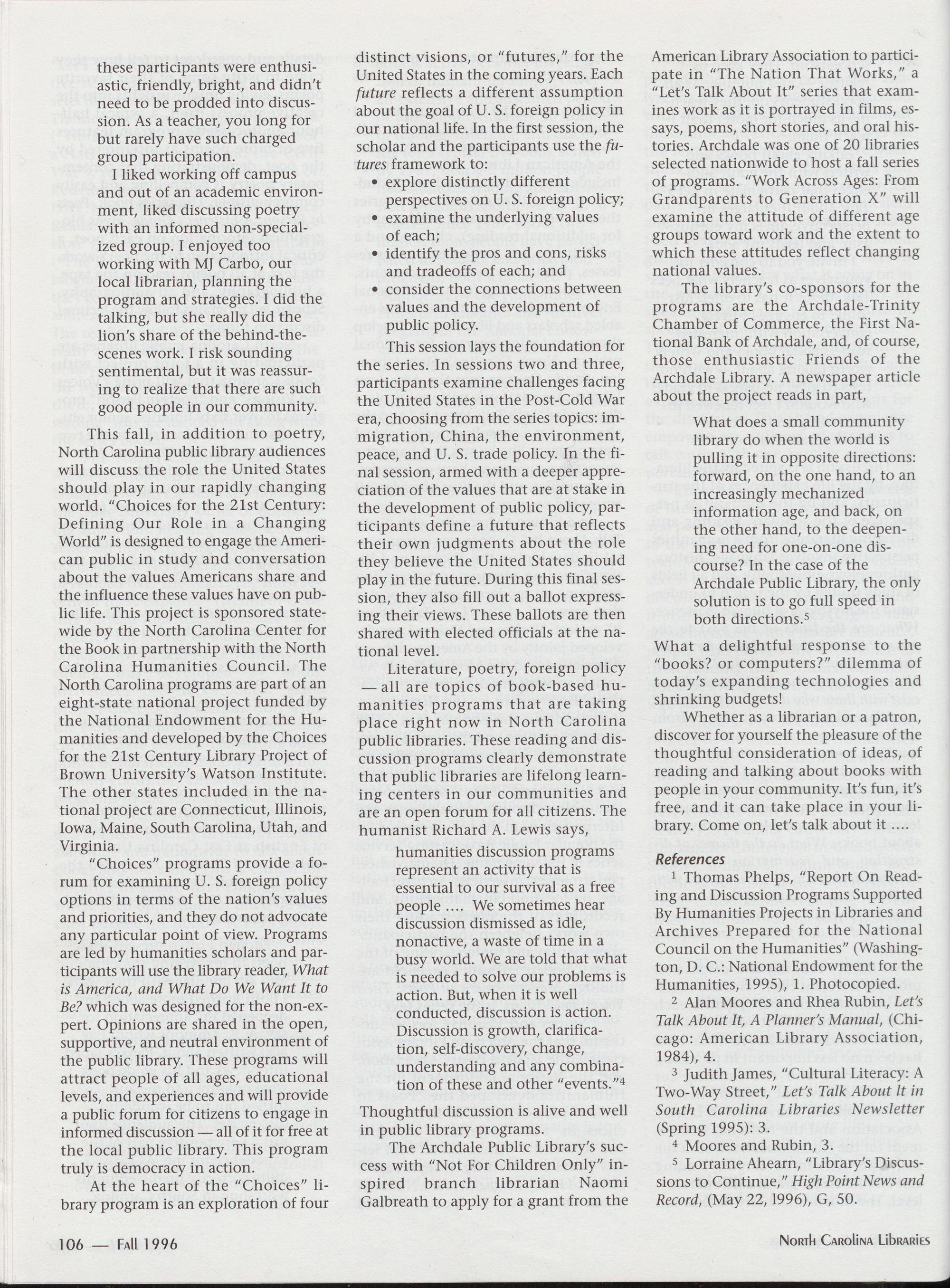 Unsolicited articles dealing with the above themes or any issue of interest to North Carolina librarians