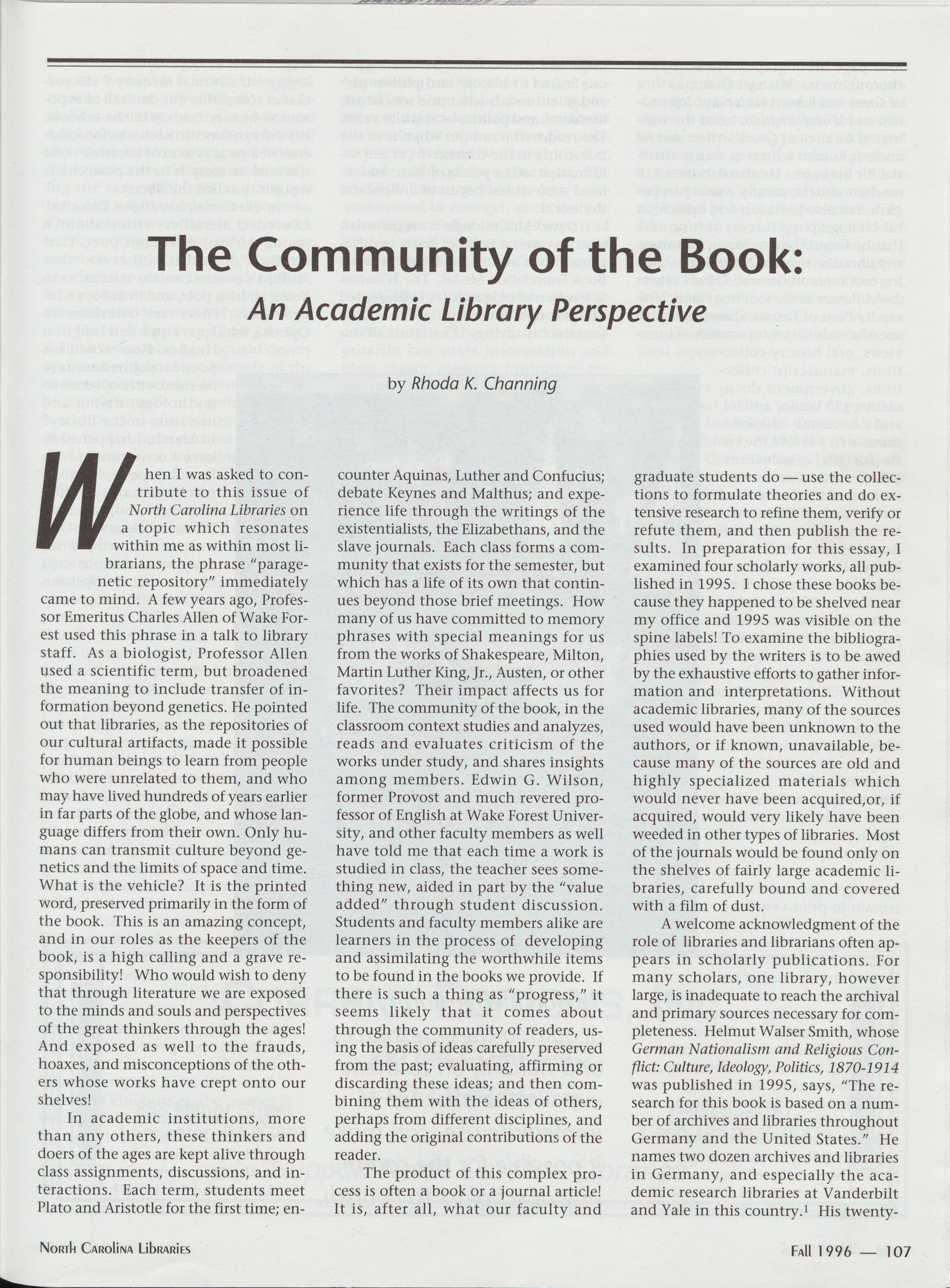 107 The Community of the Book: An Academic Library Perspective,