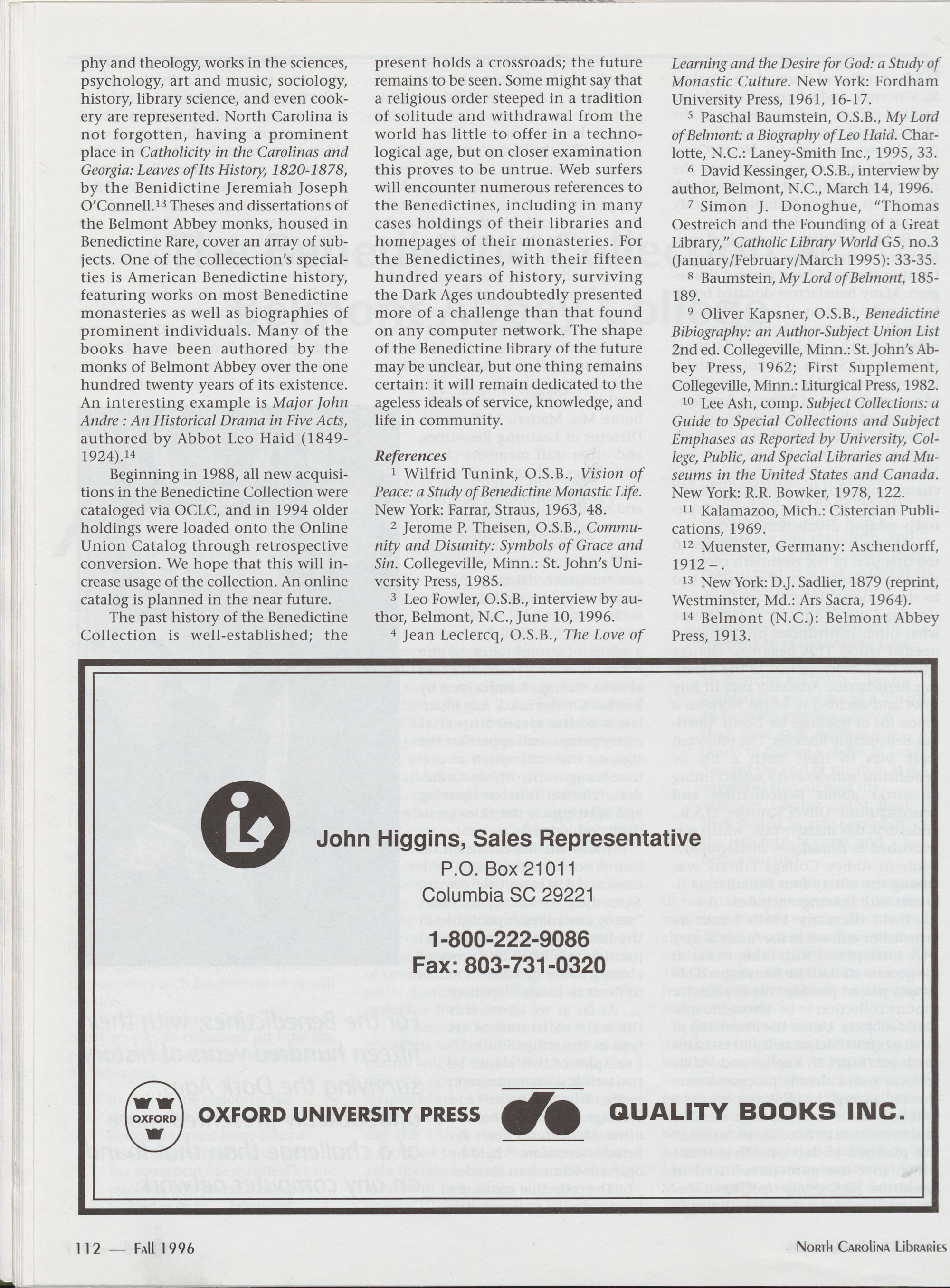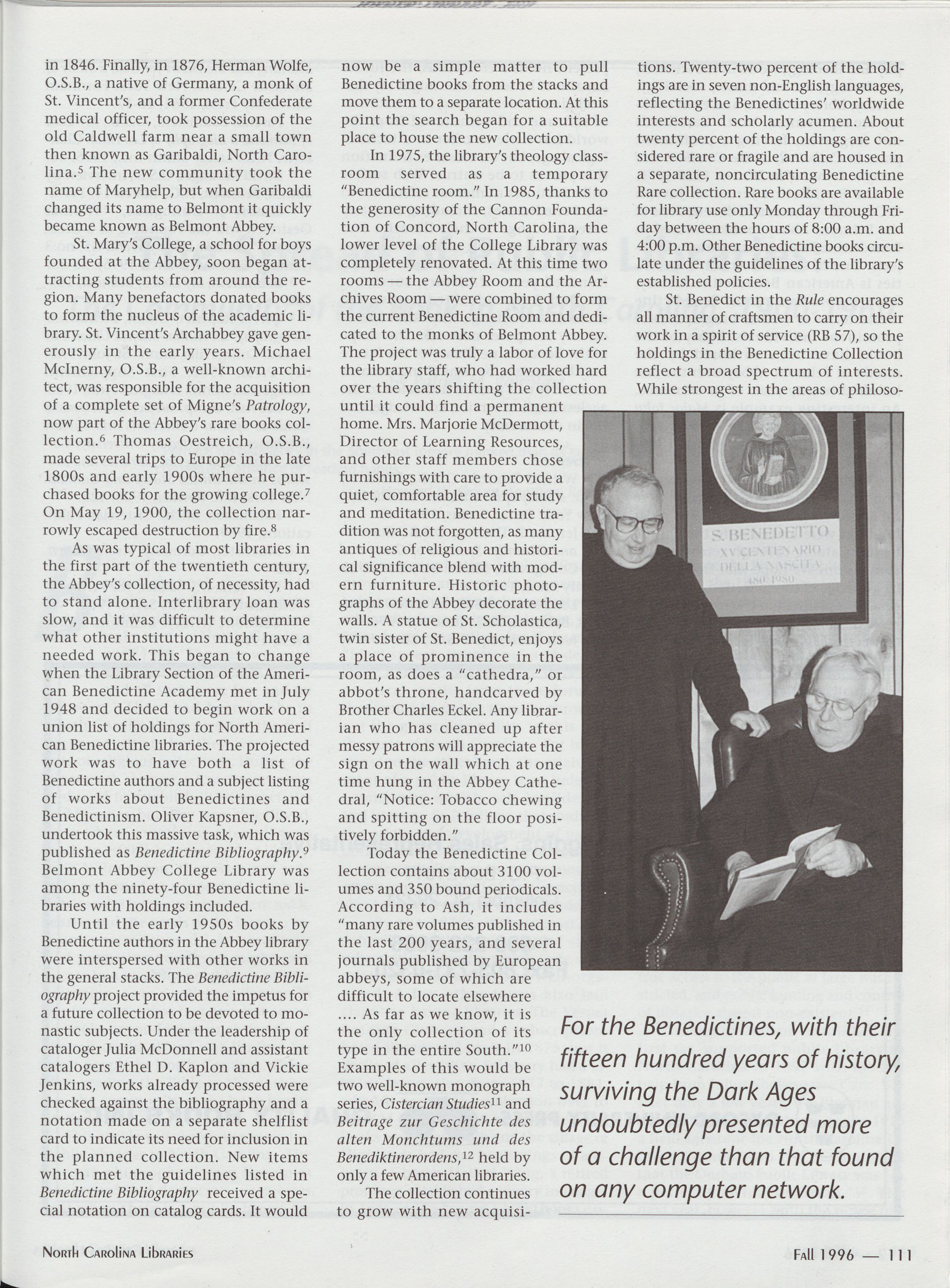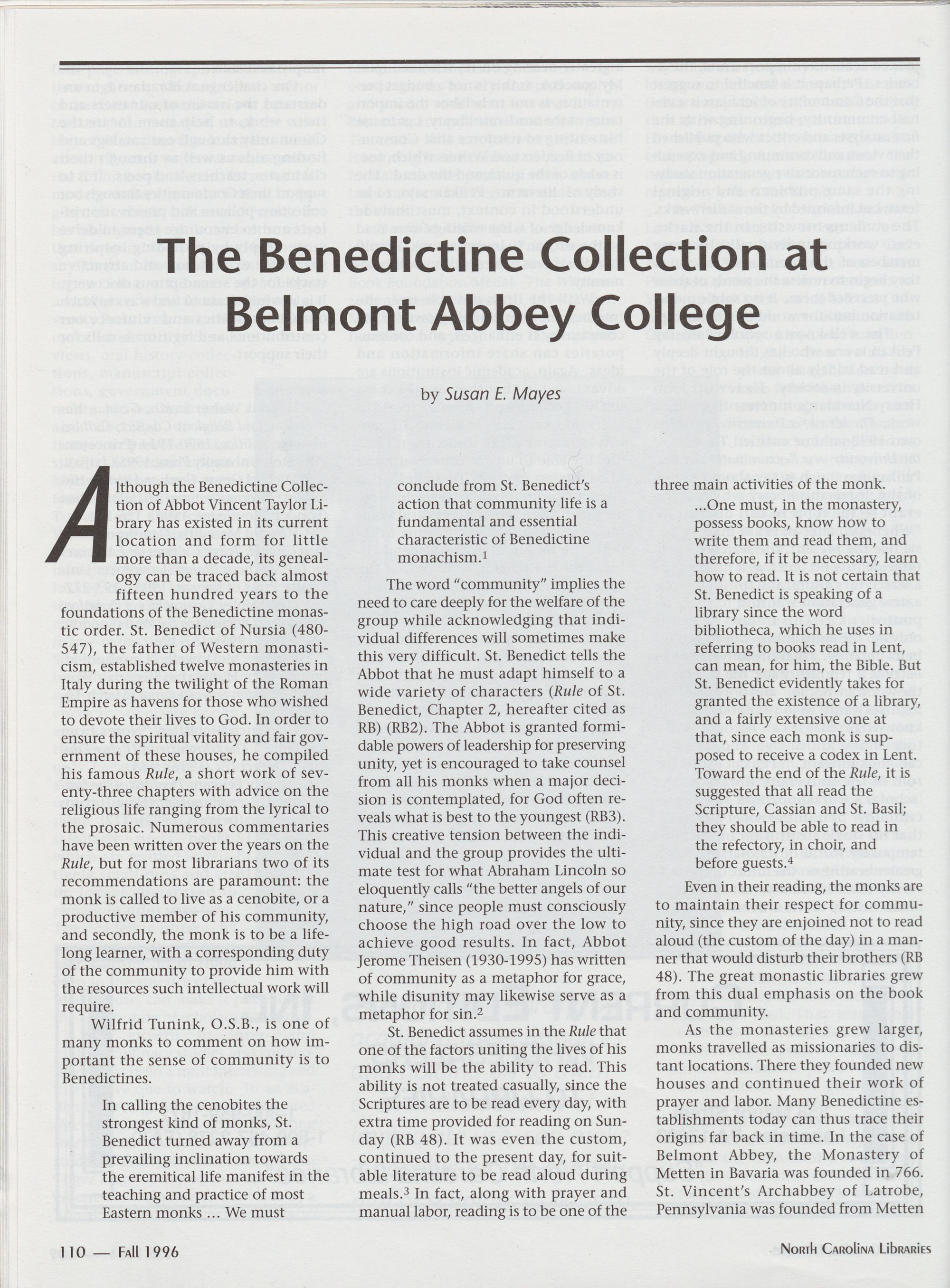 110 The Benedictine Collection at Belmont Abbey College, Susan E. Mayes