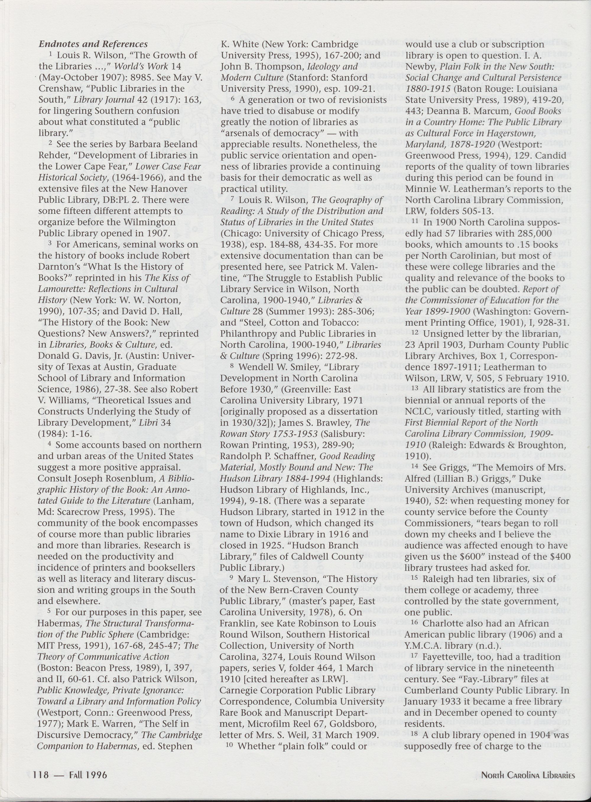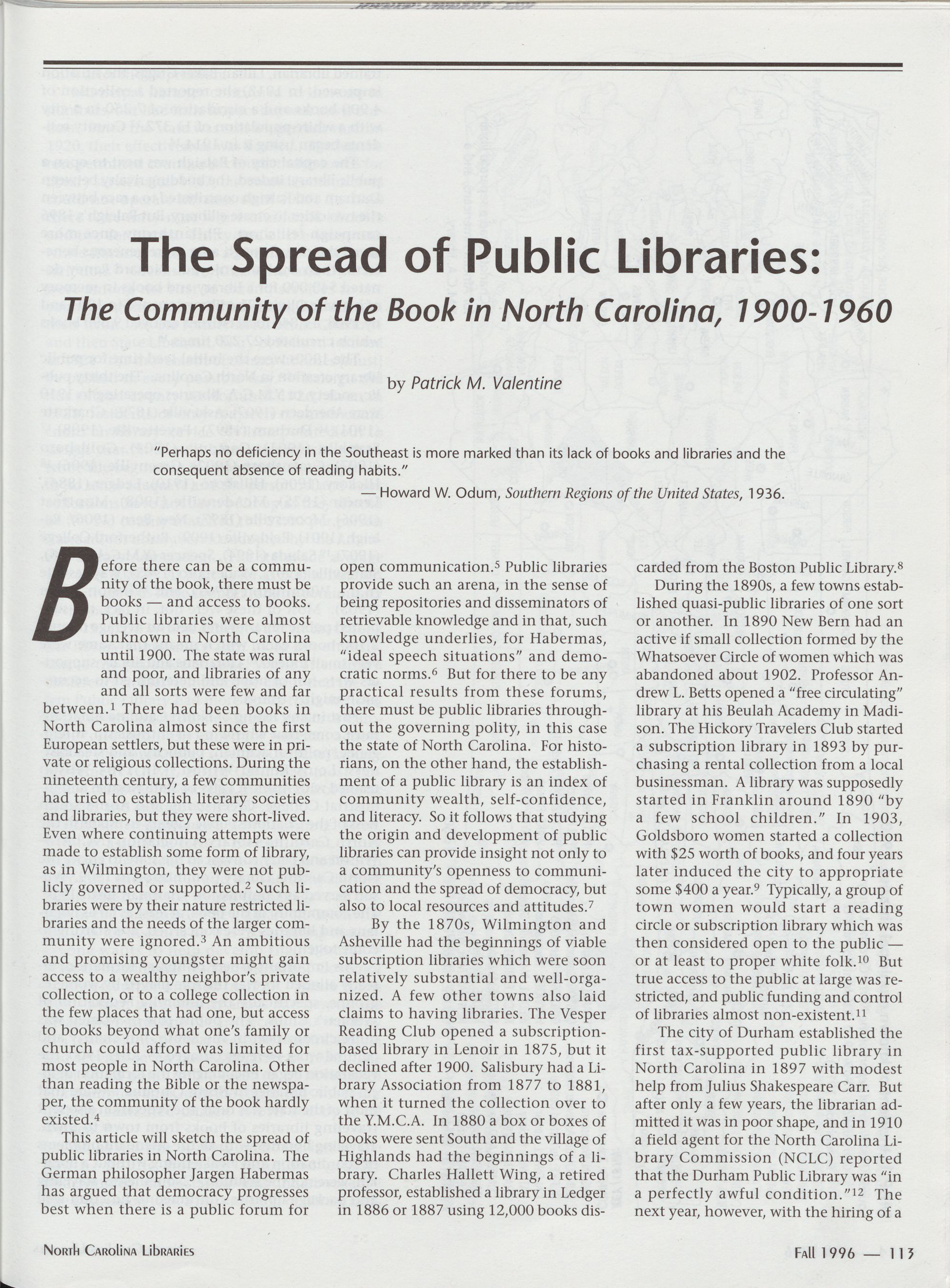113 The Spread of Public Libraries: The Community of the Book in North Carolina,