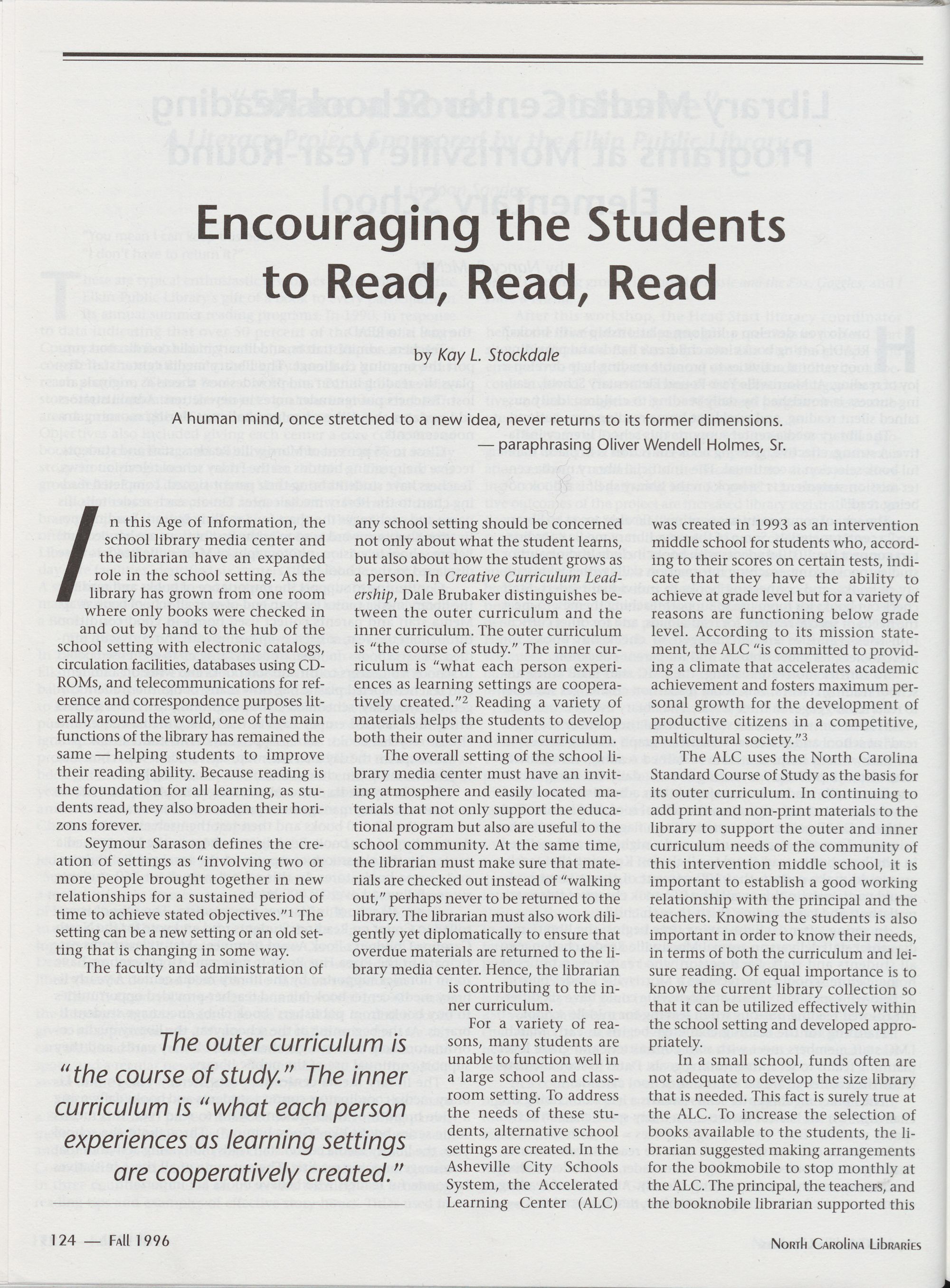 124 Encouraging the Students to Read, Read, Read, Kay L. Stockdale